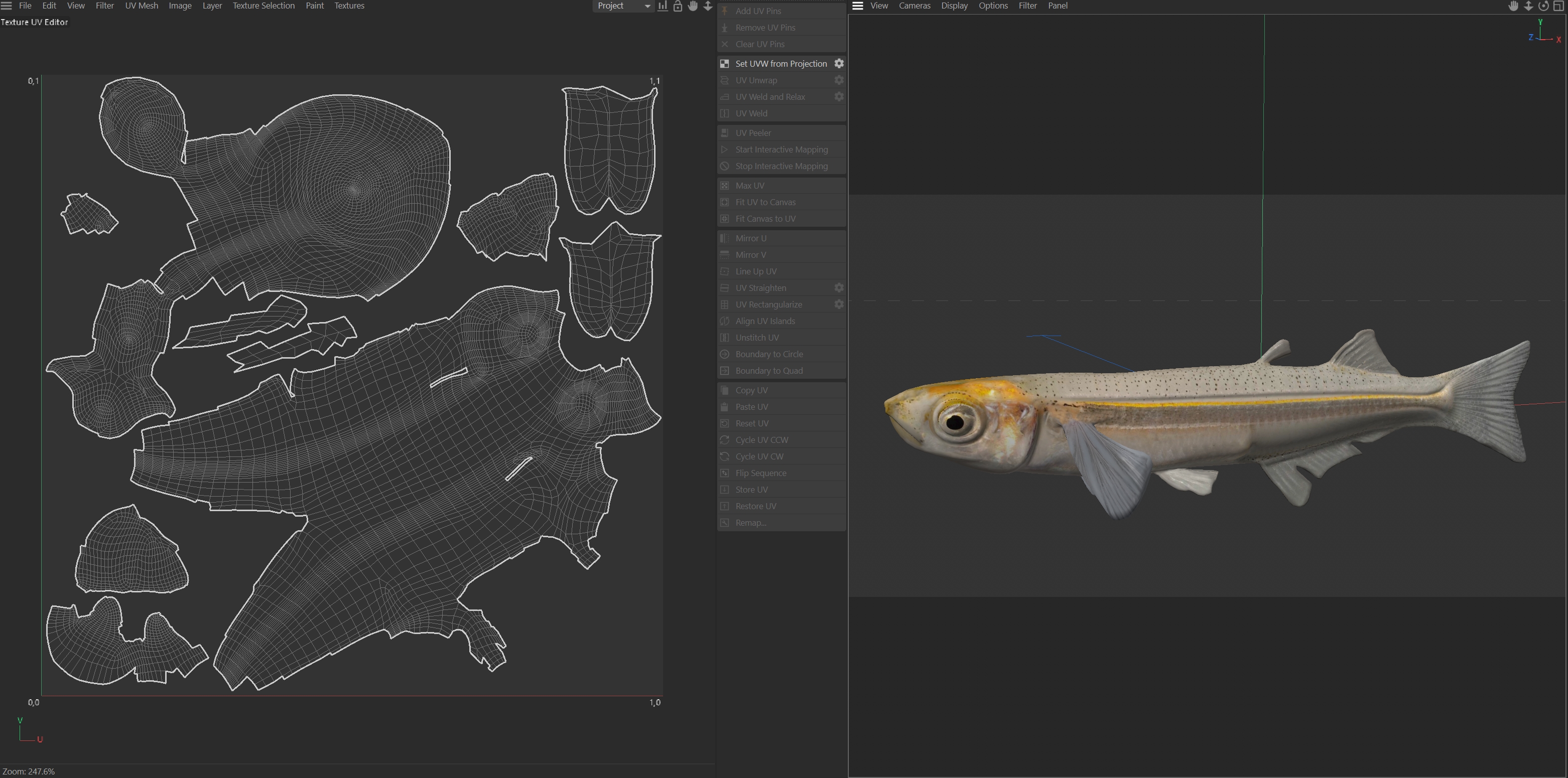 INFO: - Asymmetrical fish 3d model - Textures embedded in blender too - Ready to render in Blender with Cycles/EEVEE - Made in Cinema 4d - Auto UV and Auto topolgy done in cinema 4d - Cinema 4d and blender 3d files are textured linked - 4k Textures, Only Diffuse map - Bump and SSS also used in blender - UV mapped - Best for publication, visualition etc.
