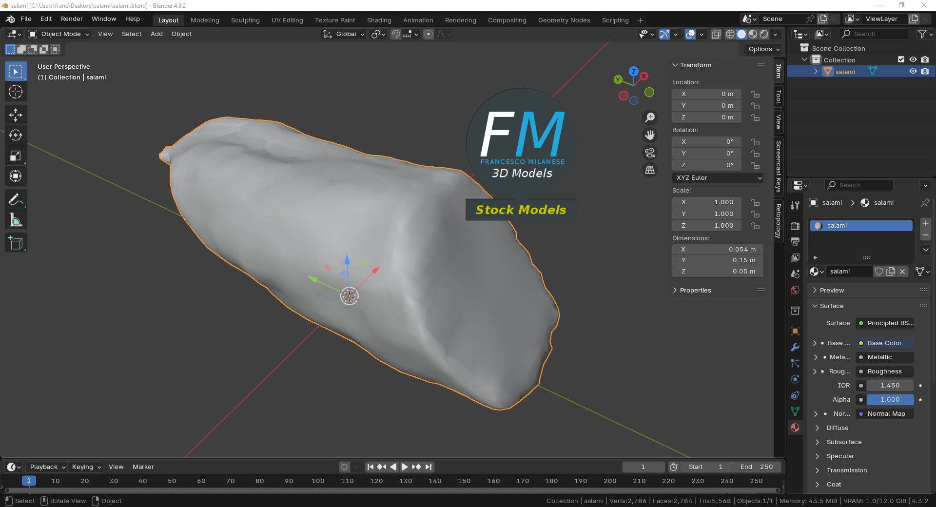 Salami 3D Model. Production-ready 3D Model, with PBR materials, textures, non overlapping UV Layout map provided in the package.