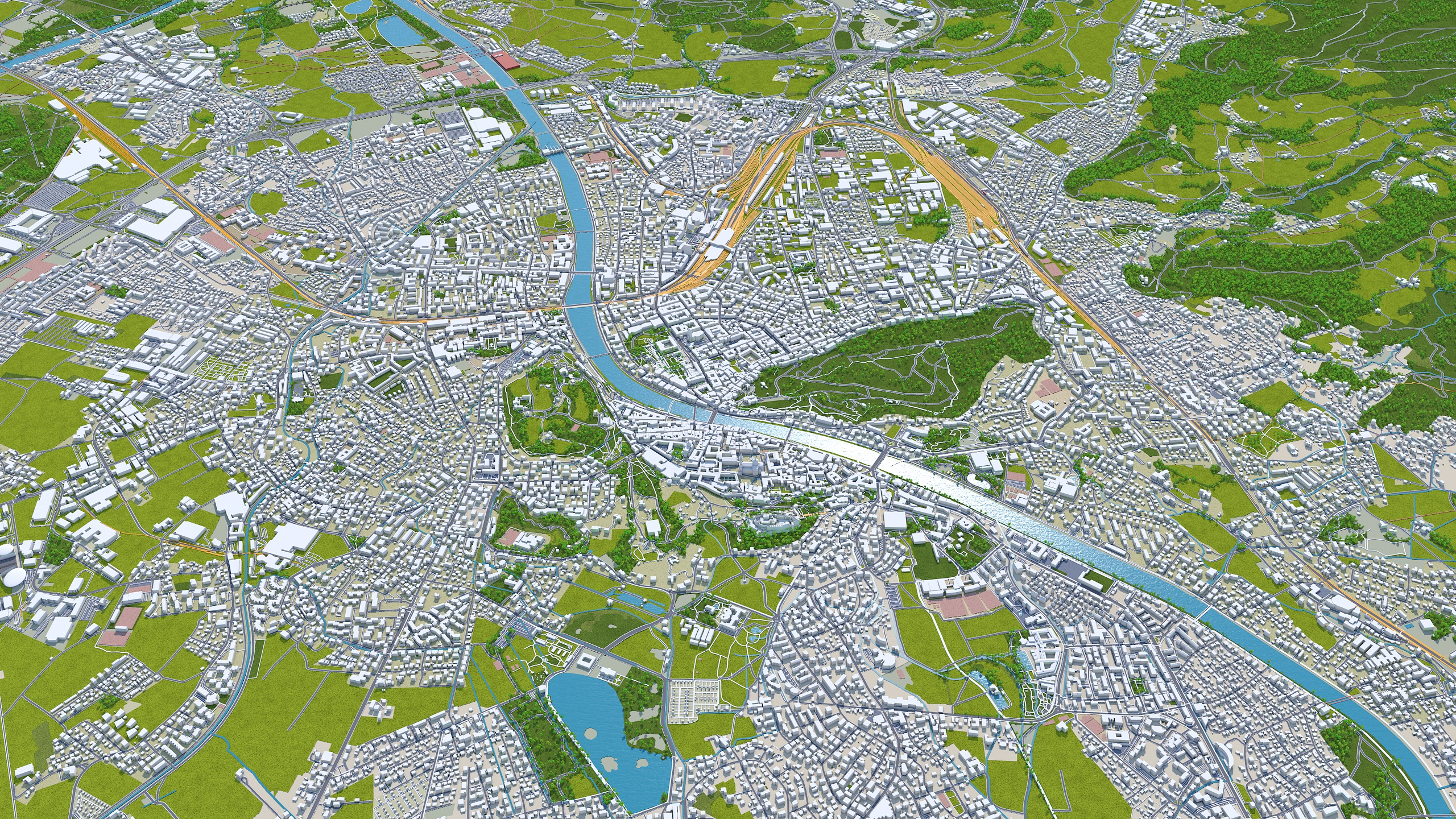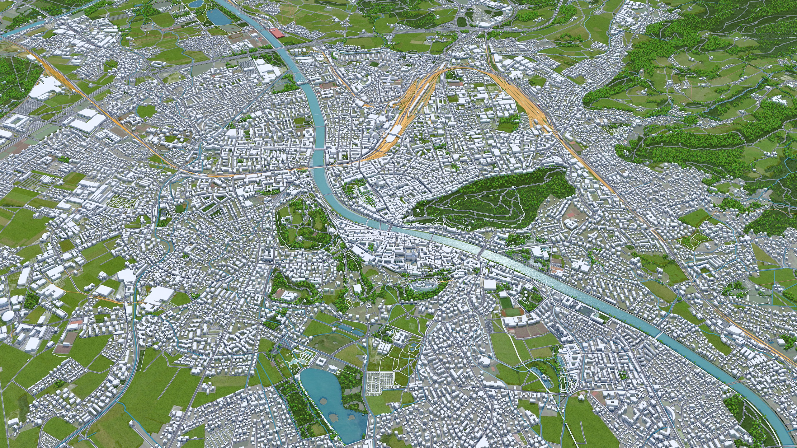 Accurate 3D city model and its surrounding area based on GIS data Year 2023