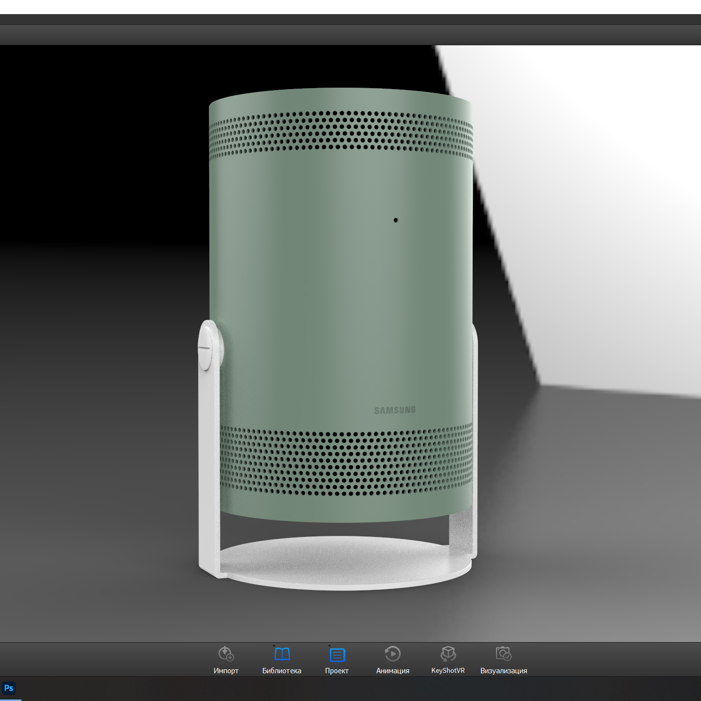 - Highly detailed projector model Samsung the Freestyle. - The model is made in Fusion 360. - Two versions of the model. One model has real holes, and the other has holes made by texture. - Highly polygonal model polygons have – 547121. - Lightweight model polygons have – 143823. - Materials in 4 colors are configured in 3ds max Vray. White, Pink, Green, Biege. - Materials in 4 colors are configured in KeyShot, in two positions. White, Pink, Green, Biege. - In Blender and e3d, one color is configured, White. - Formats: Aep, Bip, Blender, E3d, F3d, Fbx, iges, Ksp, Max 2014, Max 2017, Obj, Step, Stl.