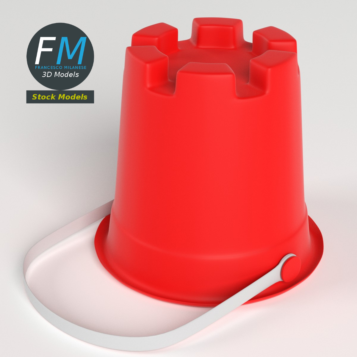 Sand tower bucket 3D Model. 2 objects (bucket, handle), parented, each one with its own non overlapping UV Layout map, Material and PBR Textures set. Production-ready 3D Model, with PBR materials, textures, non overlapping UV Layout map provided in the package.