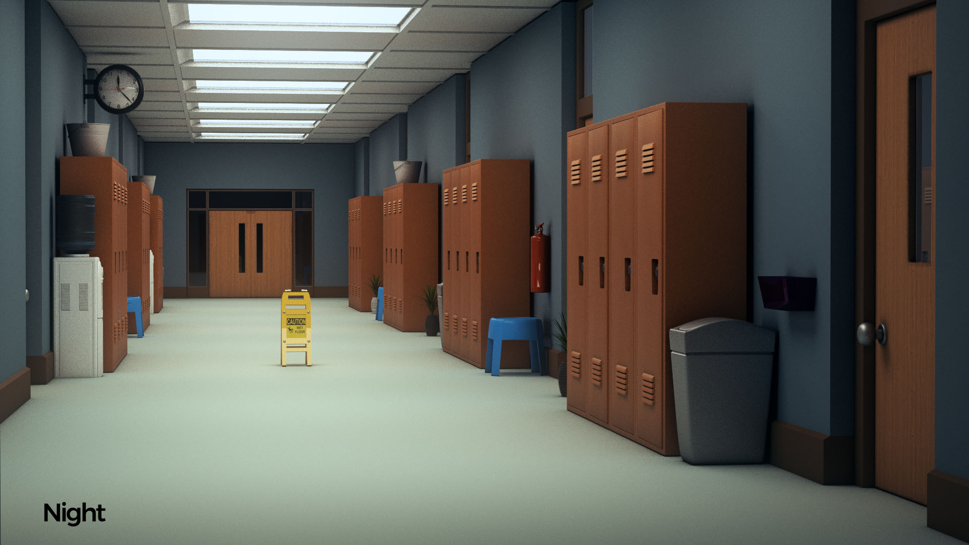 - 4K Textures for doors and lockers. - High-end materials. - Redshift and default maya material versions. - 3 lighting mode that is easily customizable with one control object. - Simple and smart naming on models and textures. - Clean outliner (scene arrangement)