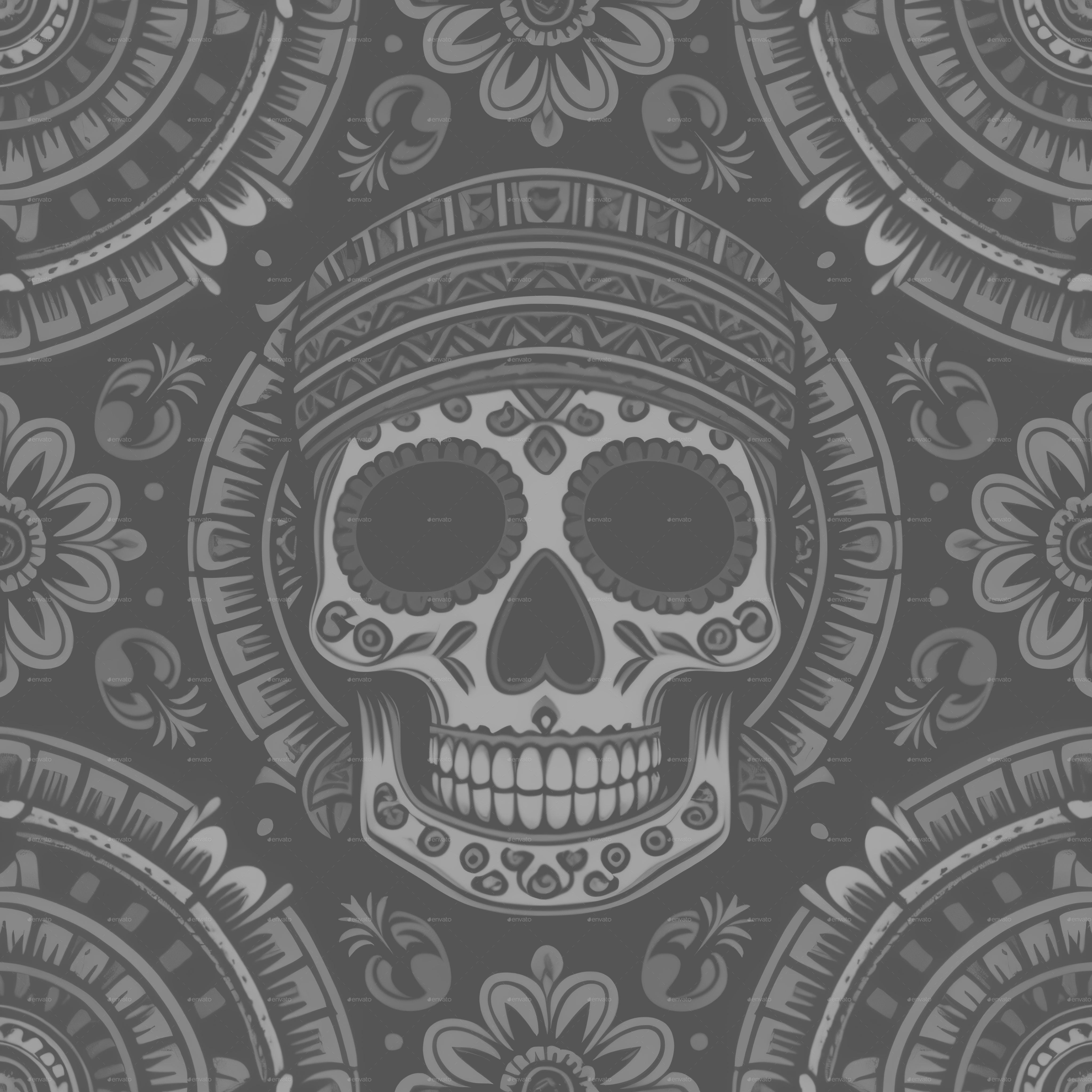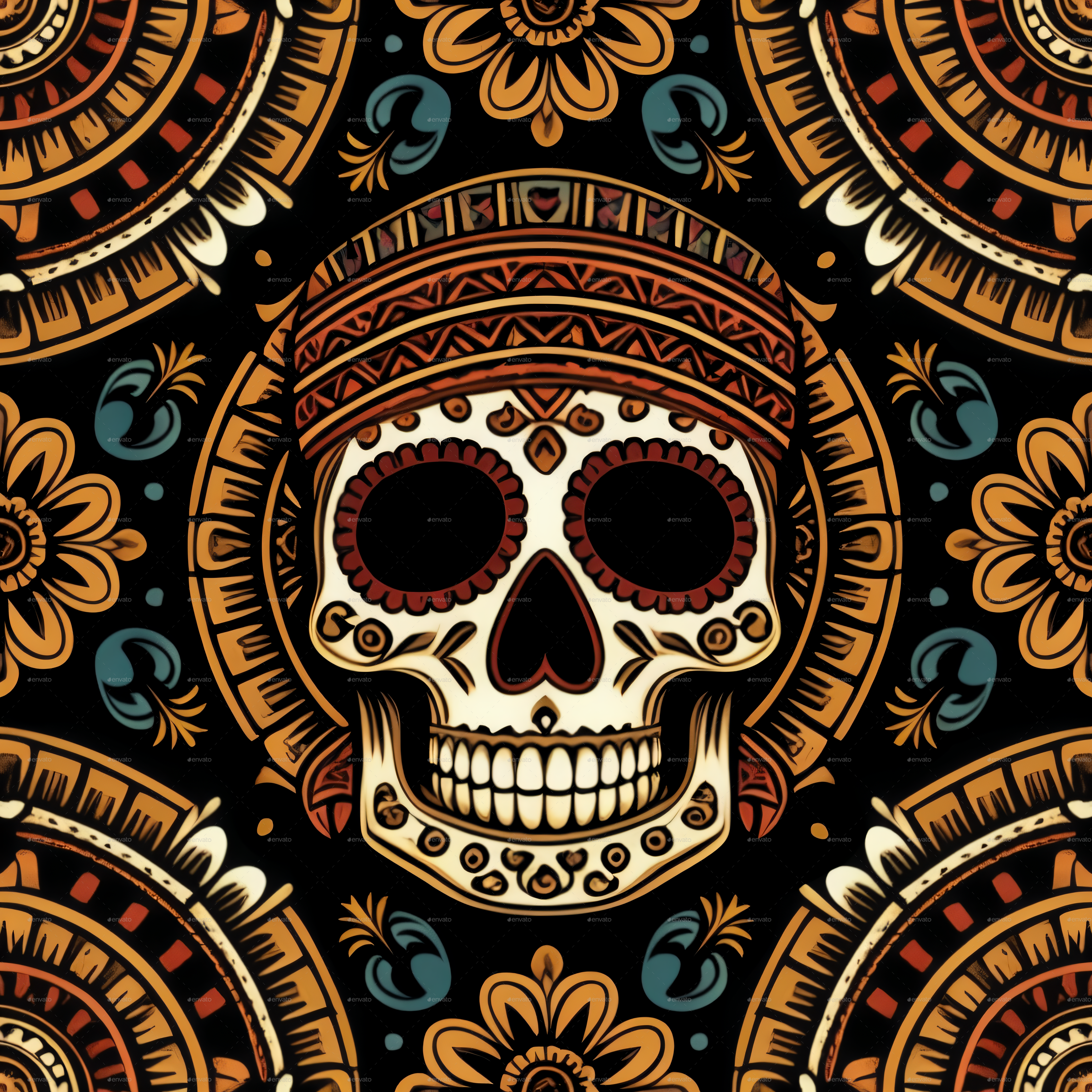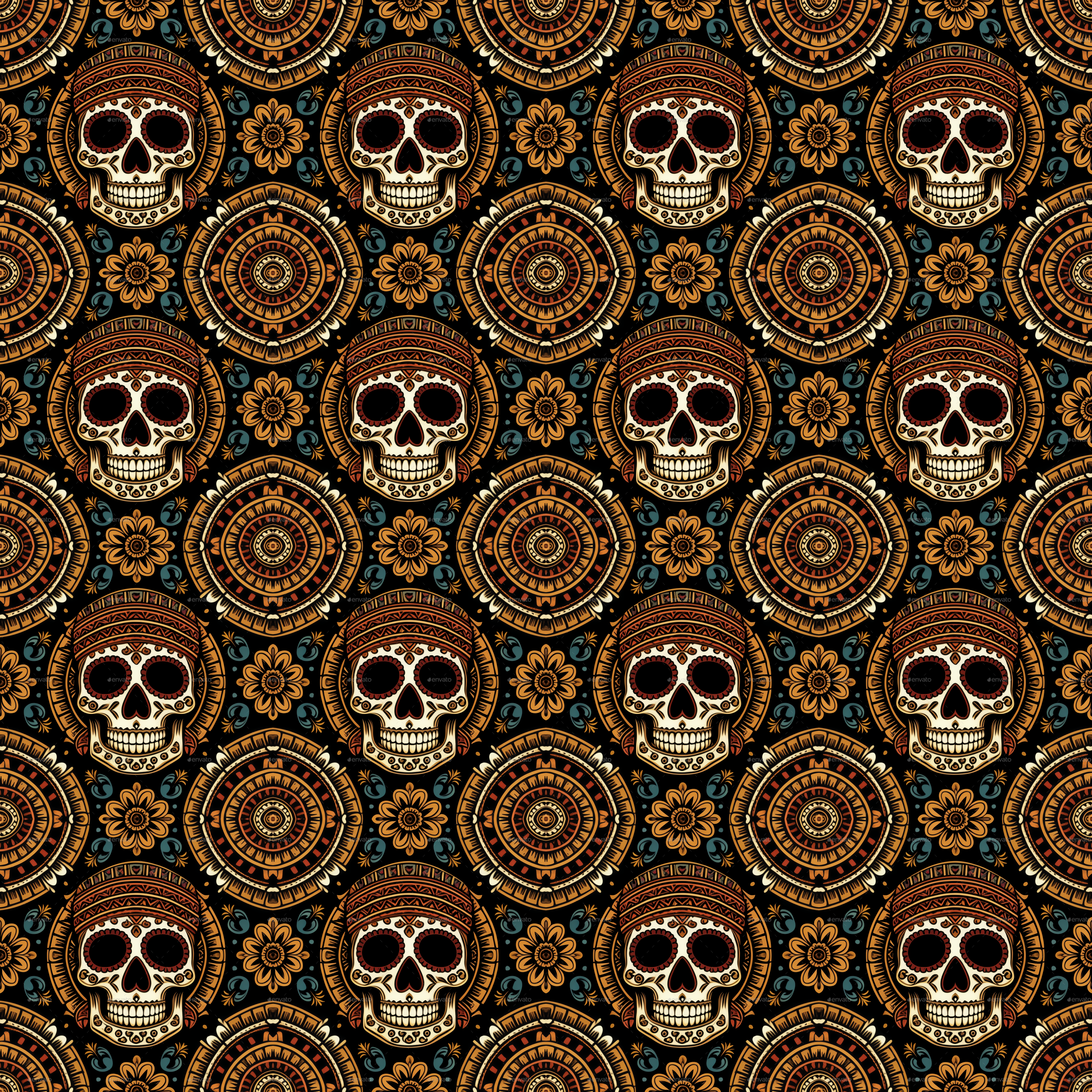 Seamless Aztec Skull Pattern 3
