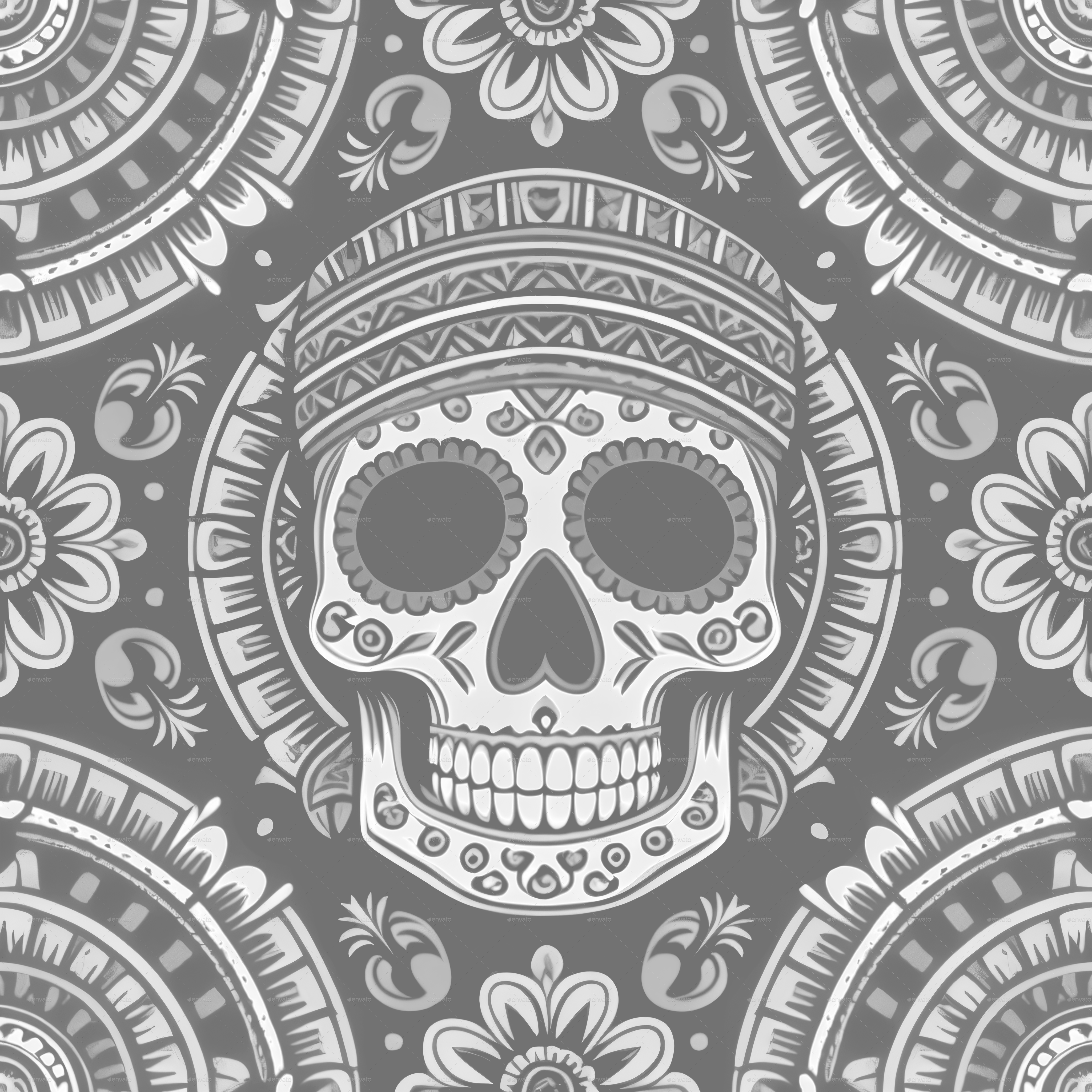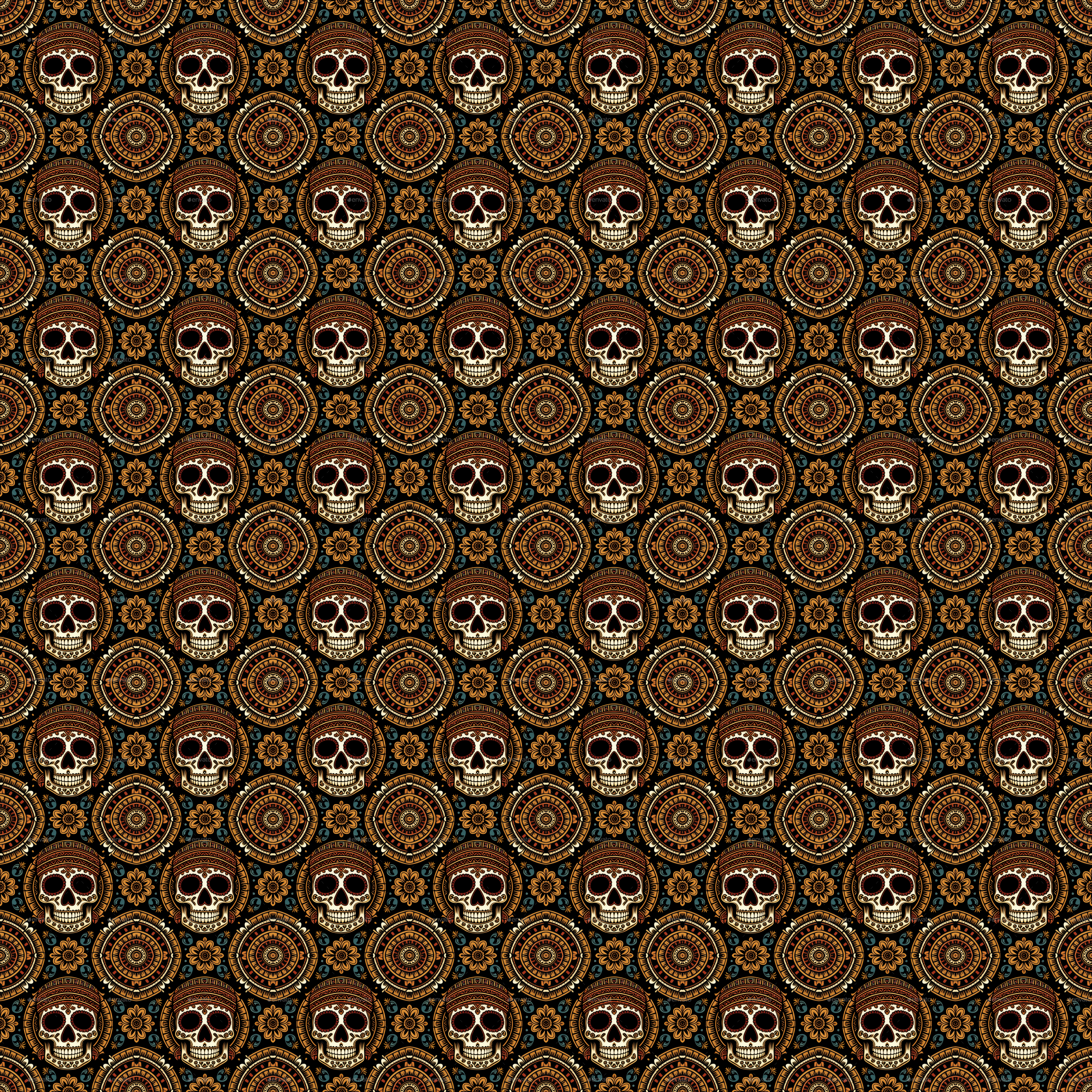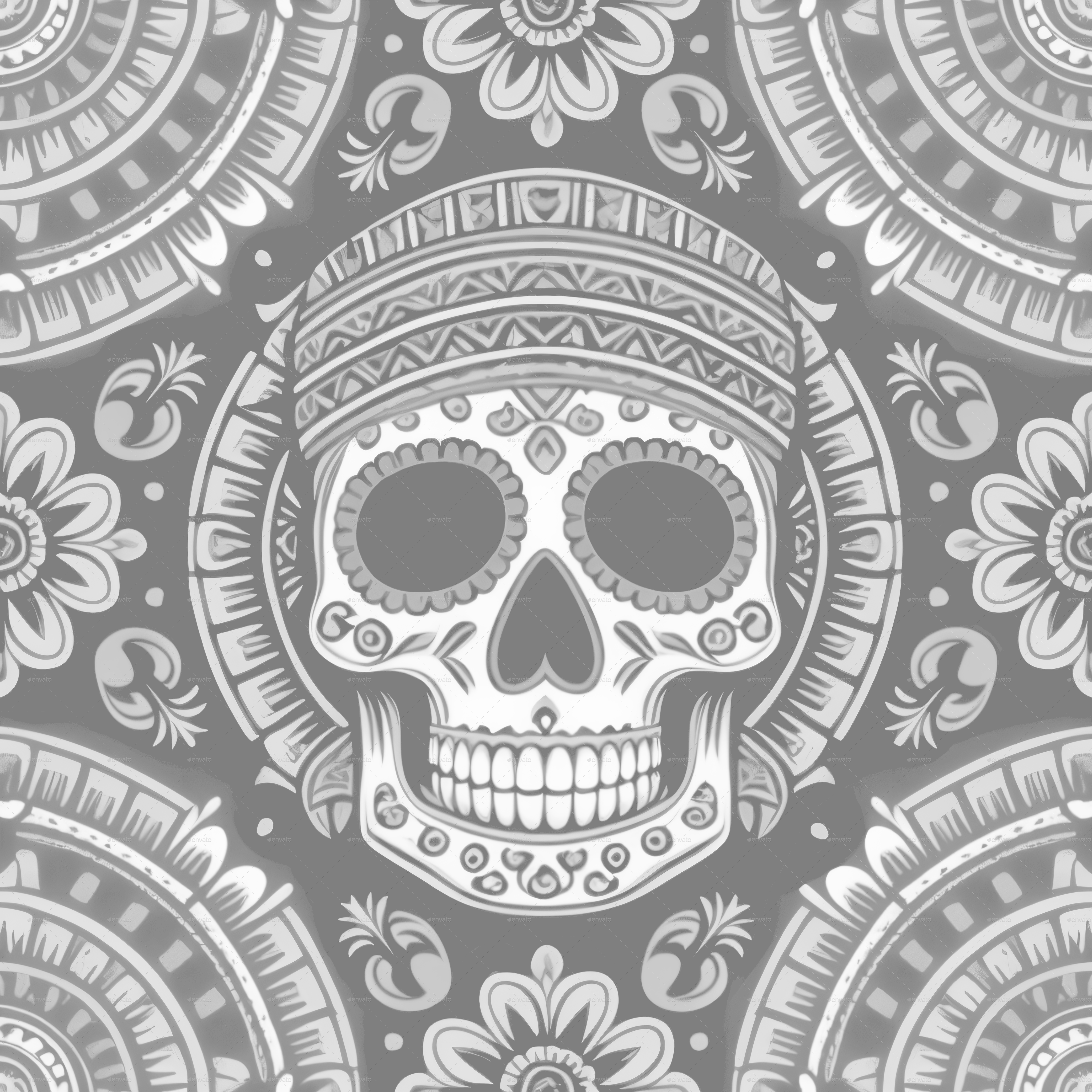 Seamless Aztec Skull Pattern 3