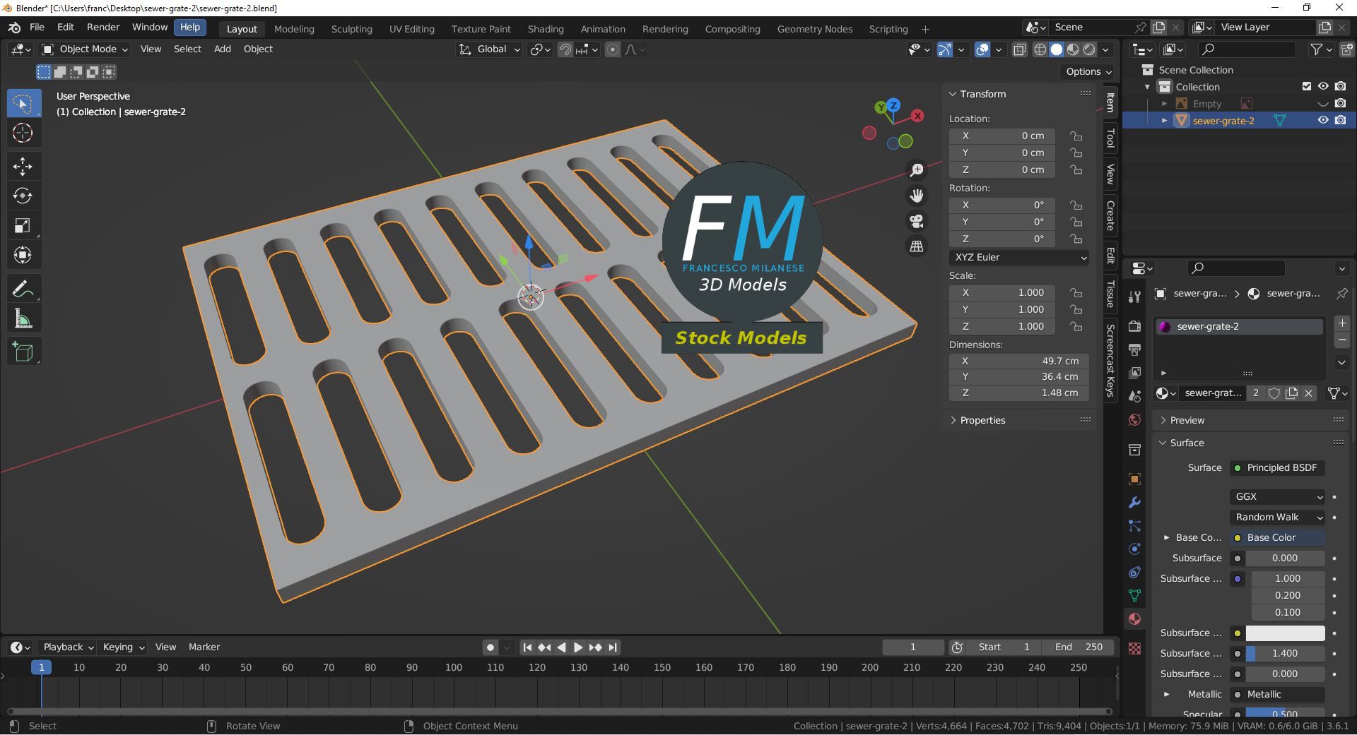 Sewer grate 3D Model, nr. 2 in my collection. Production-ready 3D Model, with PBR materials, textures, non overlapping UV Layout map provided in the package.