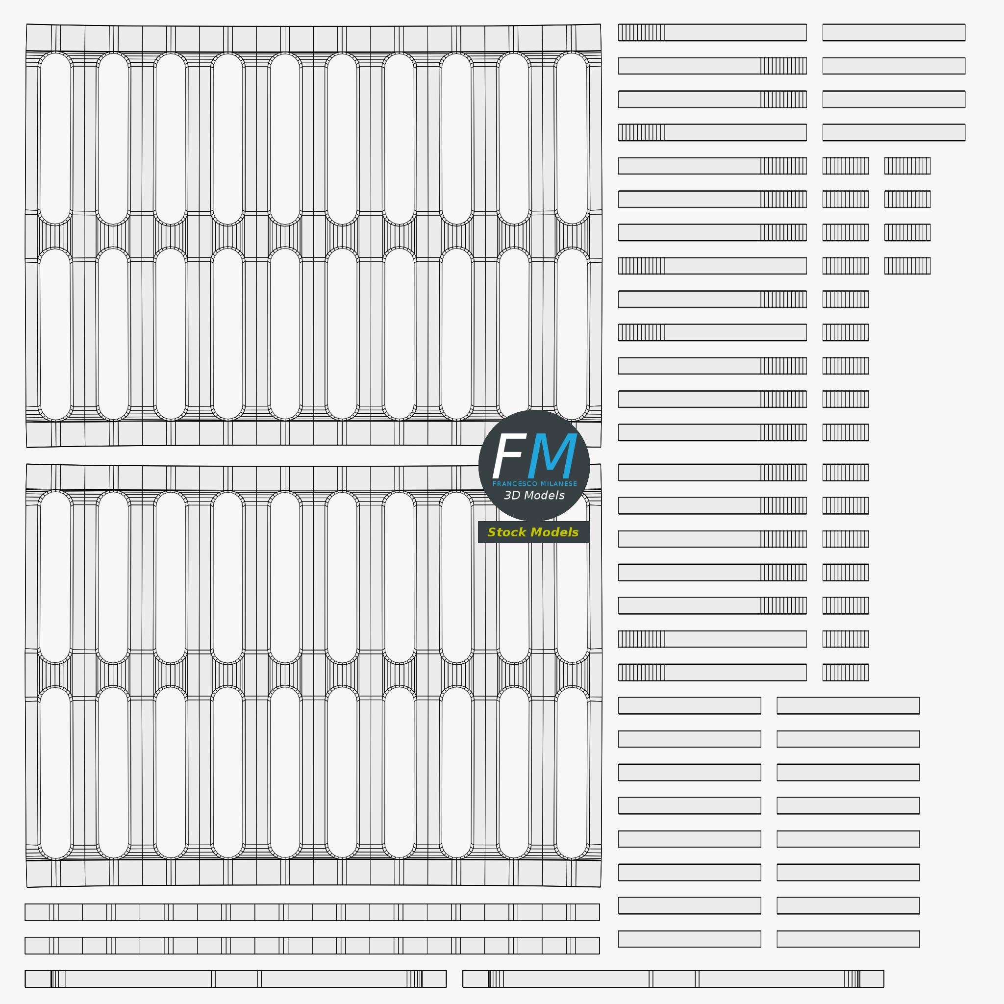 Easily customizable: UV unwrapped geometries; UV Layout maps provided in the package as png with alpha images.