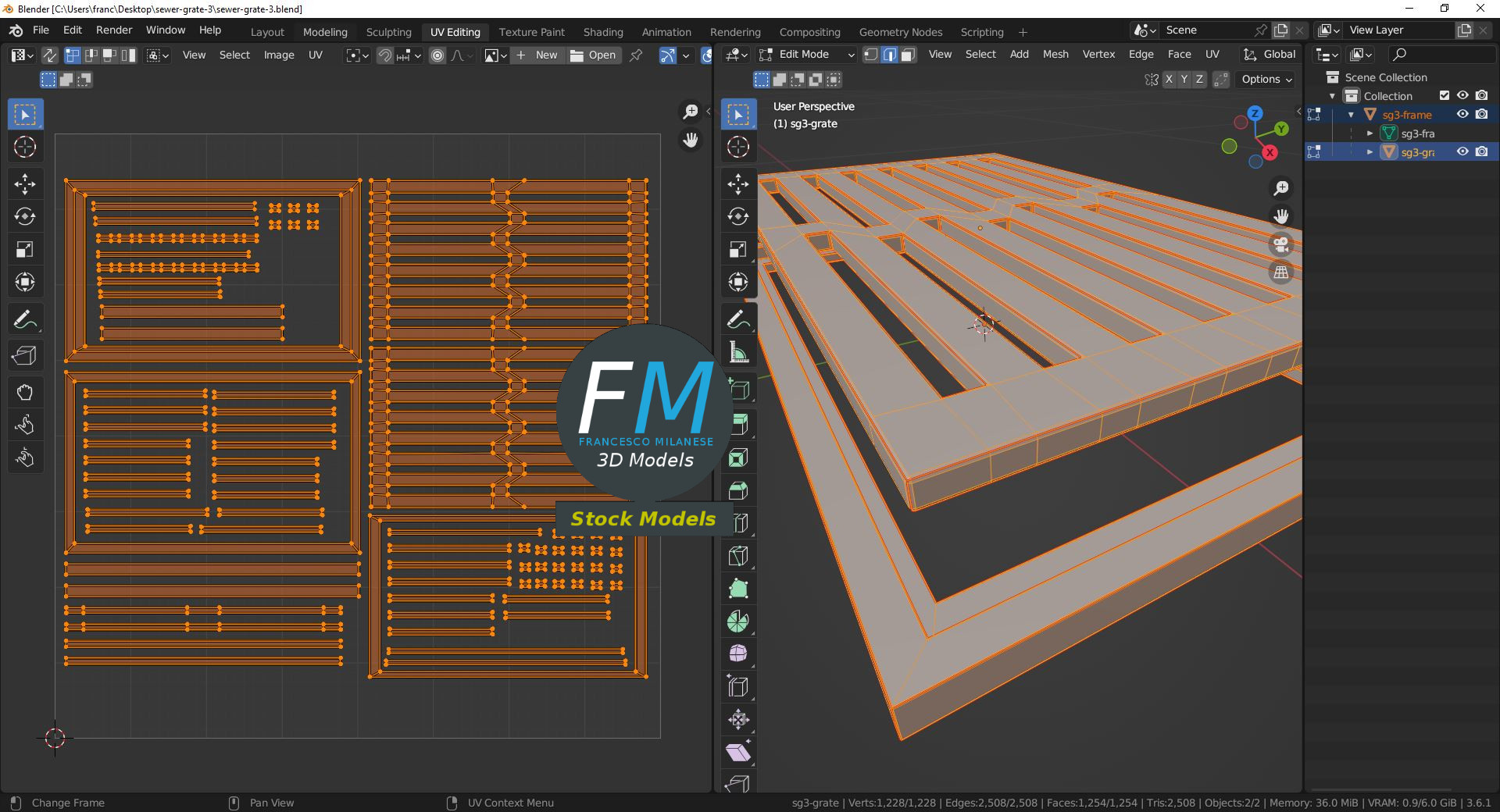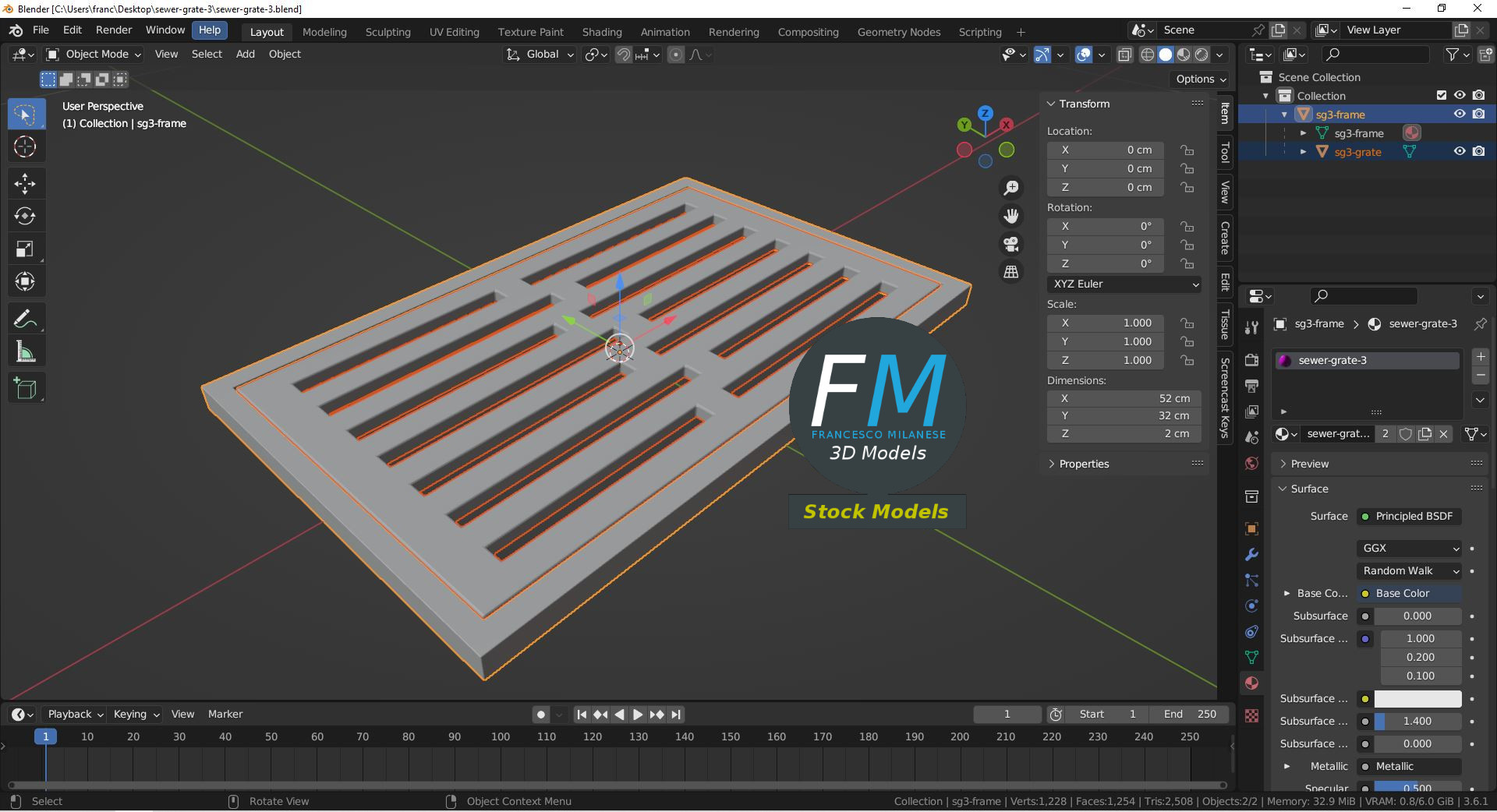 Sewer grate 3D Model, nr. 3 in my collection. 2 individual objects (frame, grate), sharing the same non overlapping UV Layout map, Material and PBR Textures set. Production-ready 3D Model, with PBR materials, textures, non overlapping UV Layout map provided in the package.