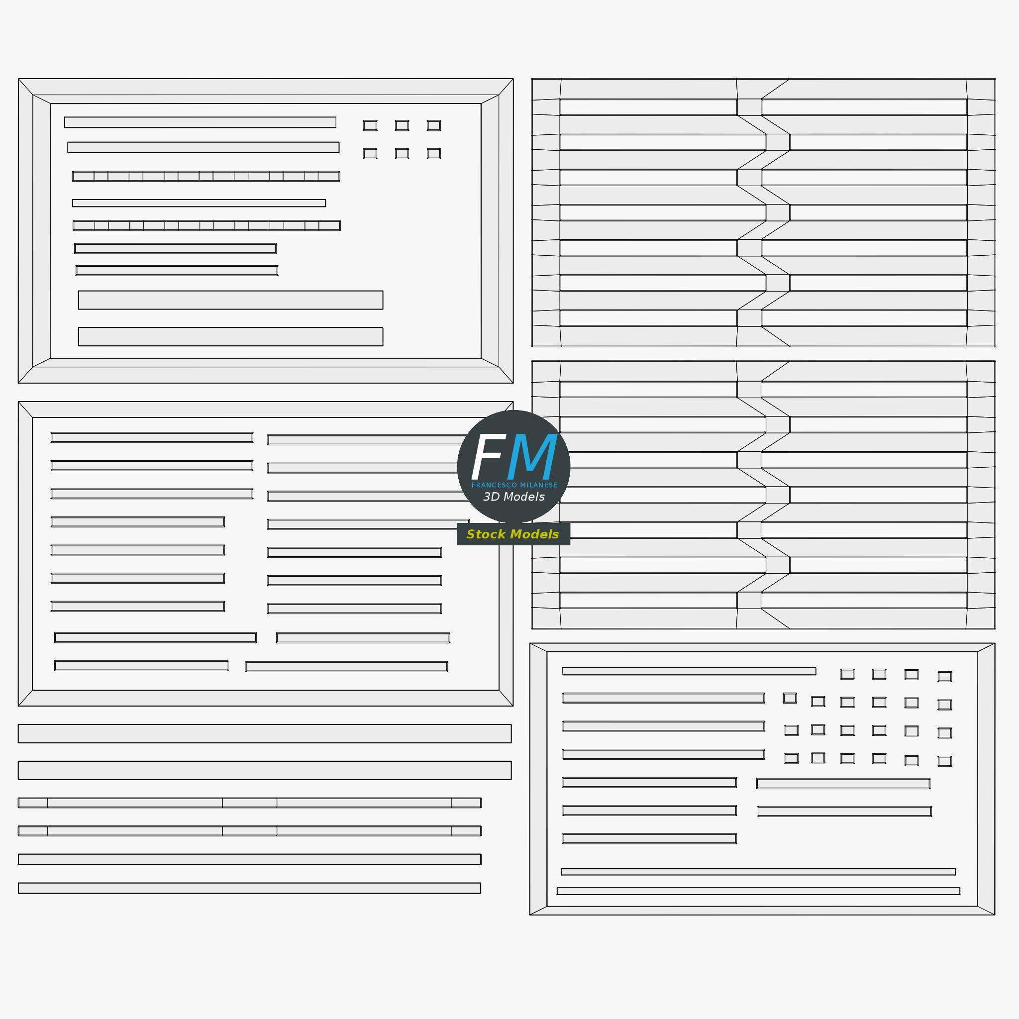 Easily customizable: UV unwrapped geometries; UV Layout maps provided in the package as png with alpha images.