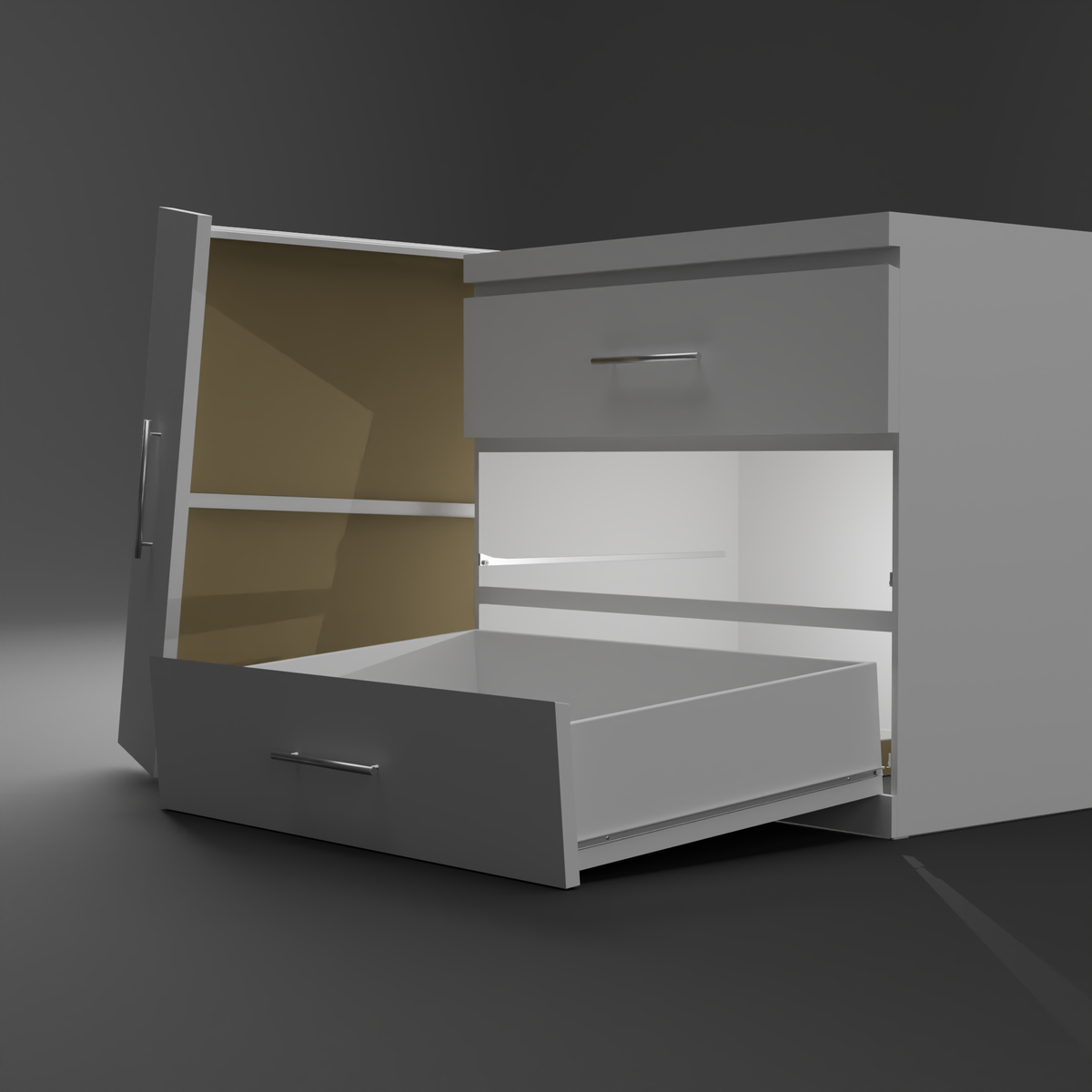 3D Model of rigged set of drawers (x3) created using Blender.