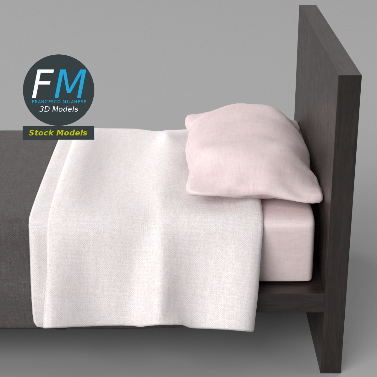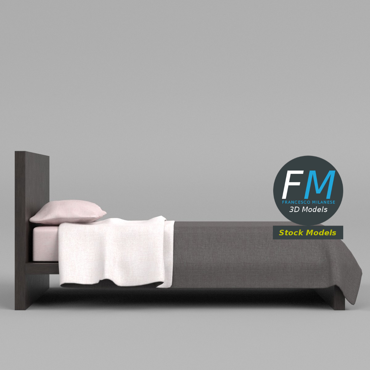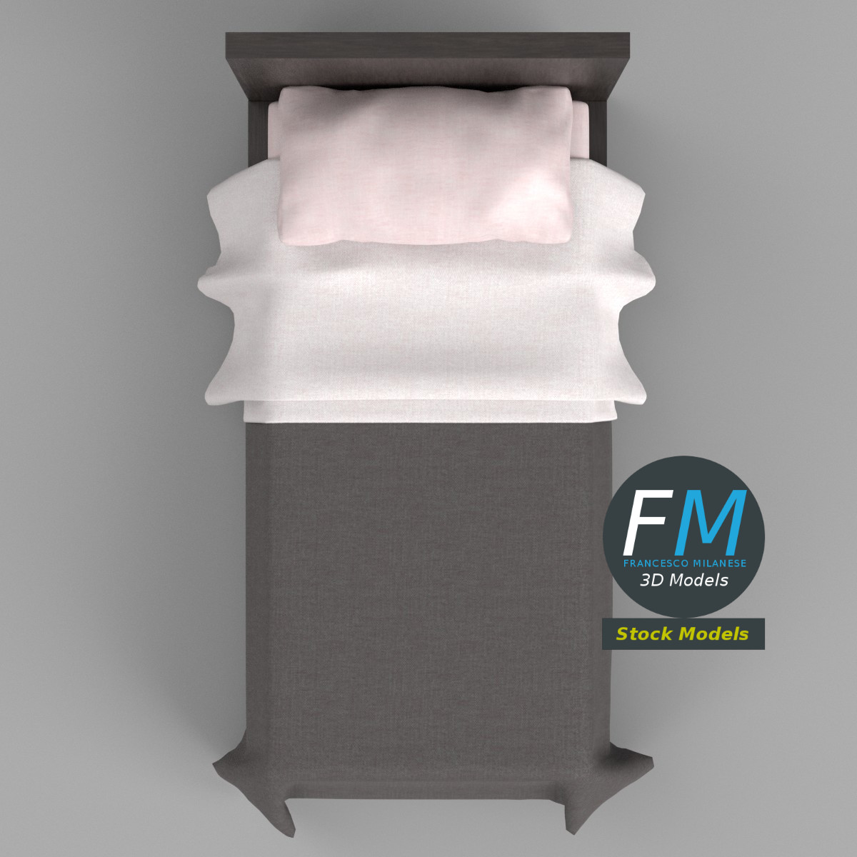 Single bed 3D Model. Production-ready 3D Model, with PBR materials, textures, non overlapping UV Layout map provided in the package.
