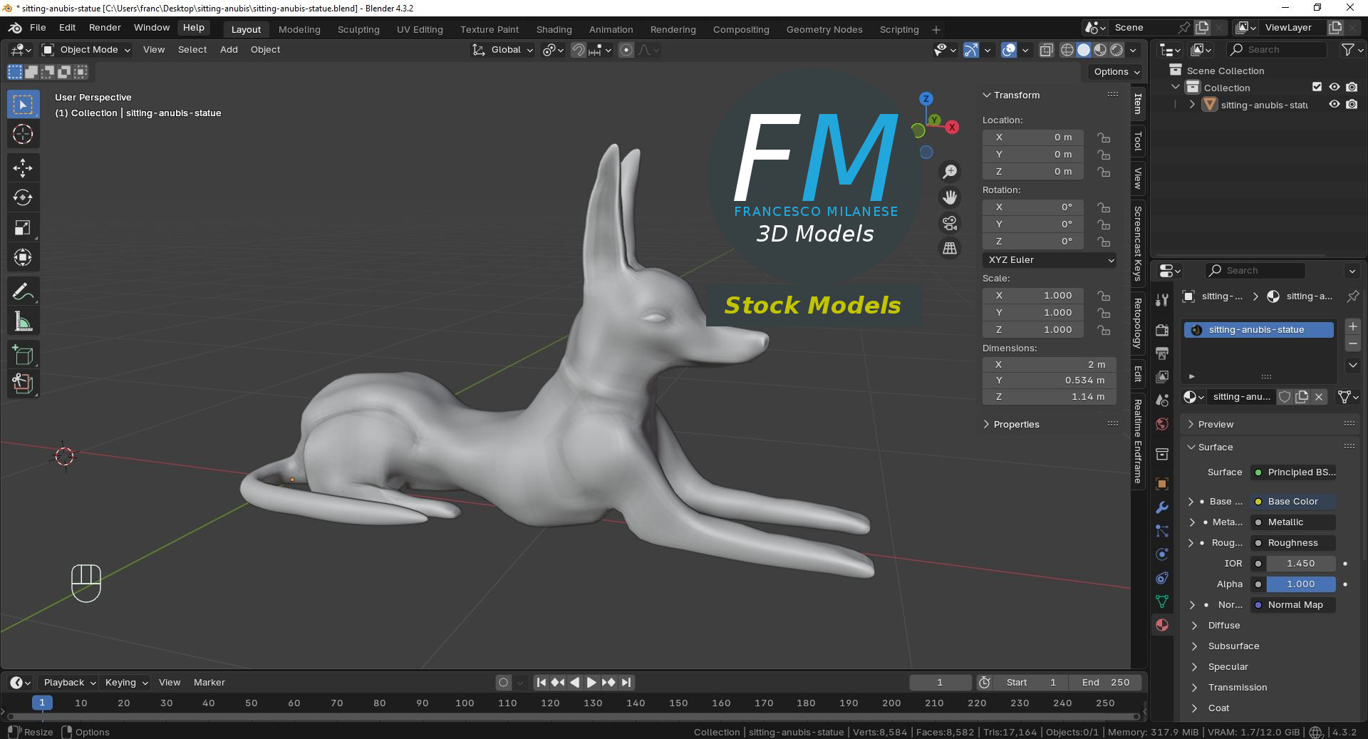 Sitting Anubis Statue 3D Model. Production-ready 3D Model, with PBR materials, textures, non overlapping UV Layout map provided in the package.