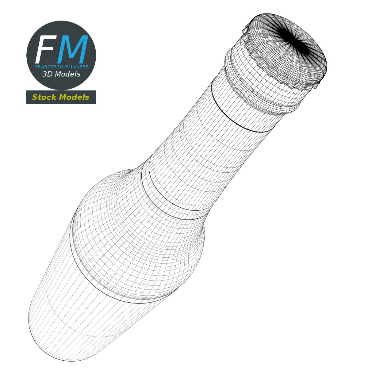 Small beer bottle 3D Model. 4 individual objects (bottle, crown cork, labels, liquid), each one with its own non overlapping UV Layout map, Material and PBR Textures set. Production-ready 3D Model, with PBR materials, textures, non overlapping UV Layout map provided in the package.