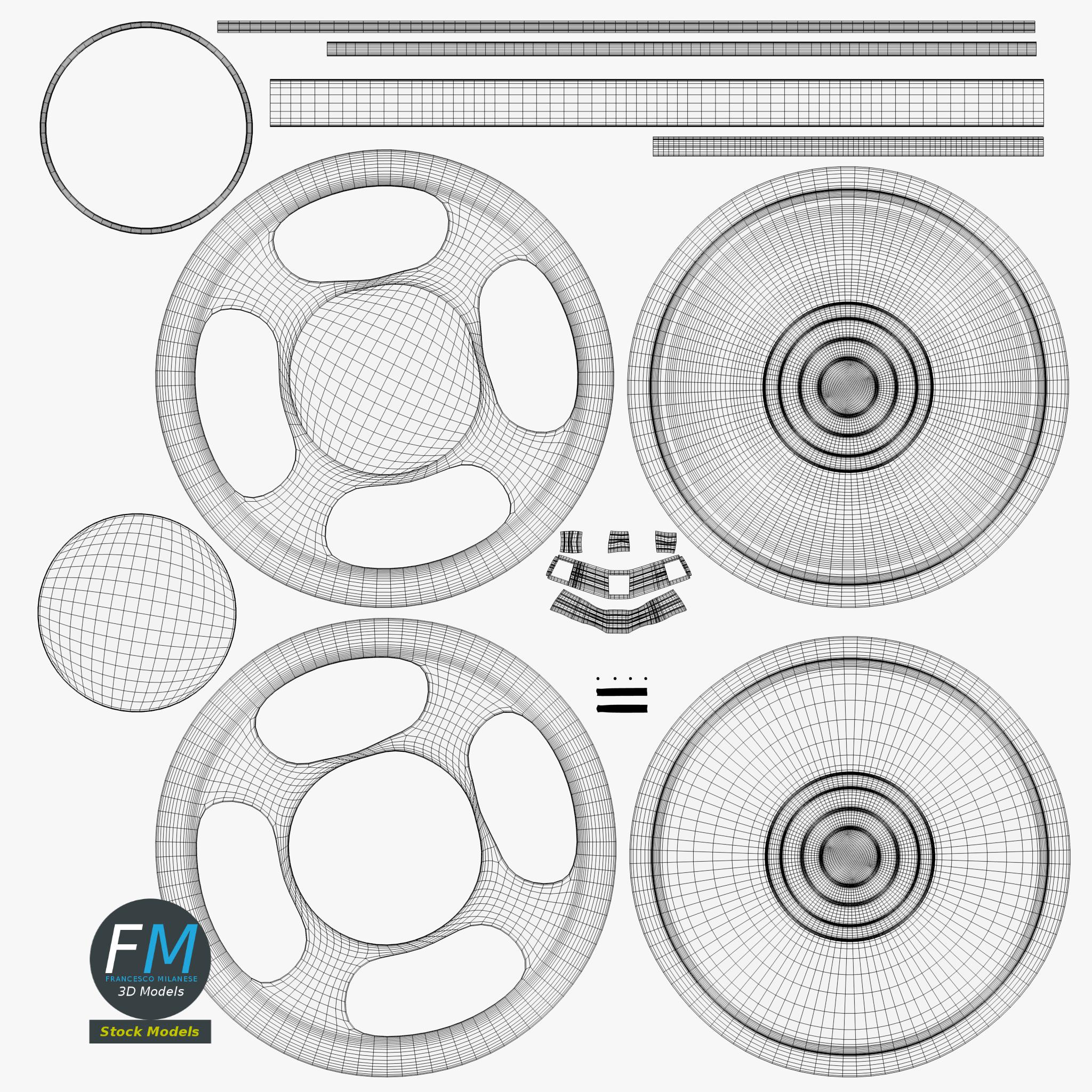 Easily customizable: UV unwrapped geometries, so you can create new Textures (or modify the existing ones) using the UV Layout maps provided in the package (as png with alpha).