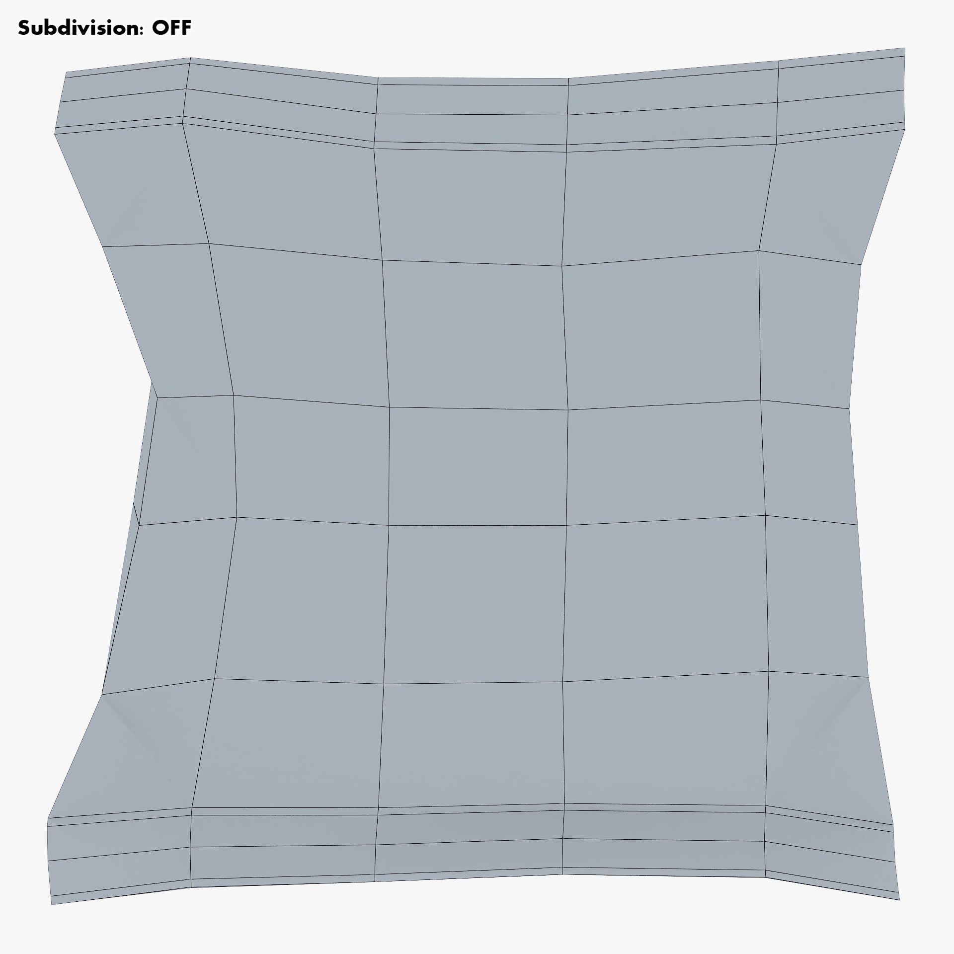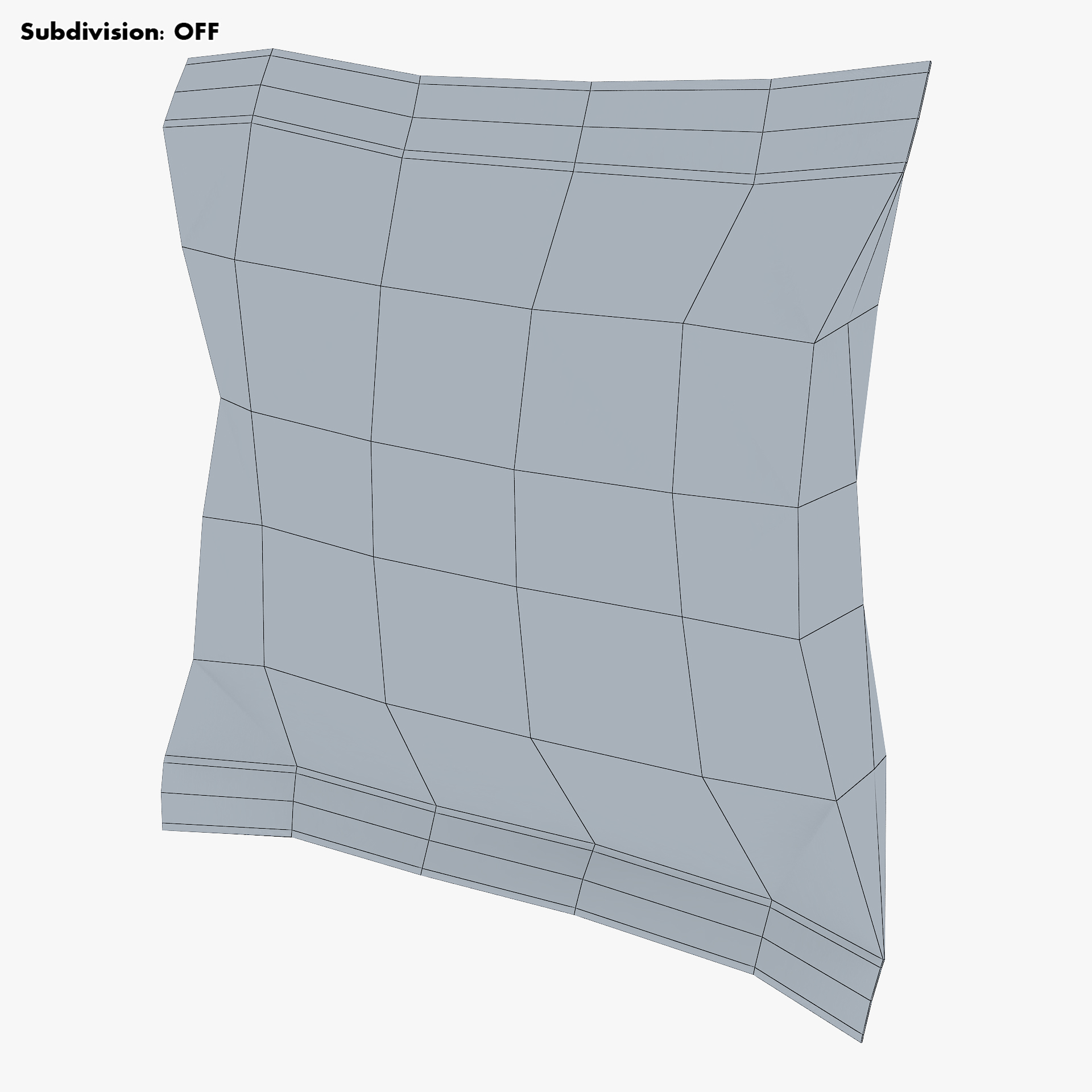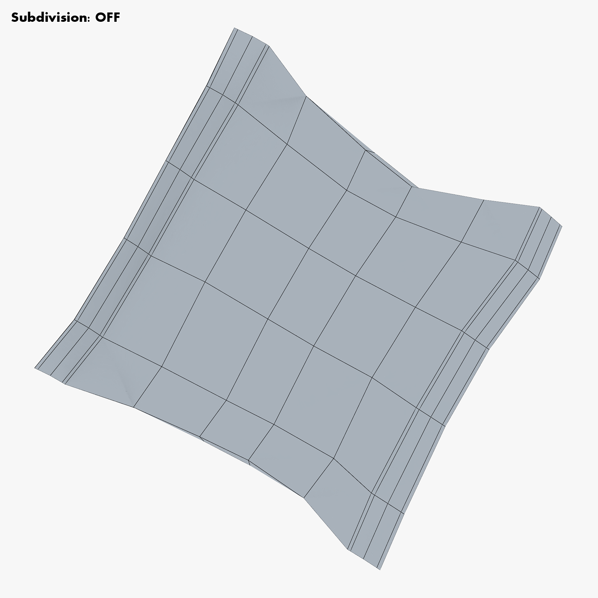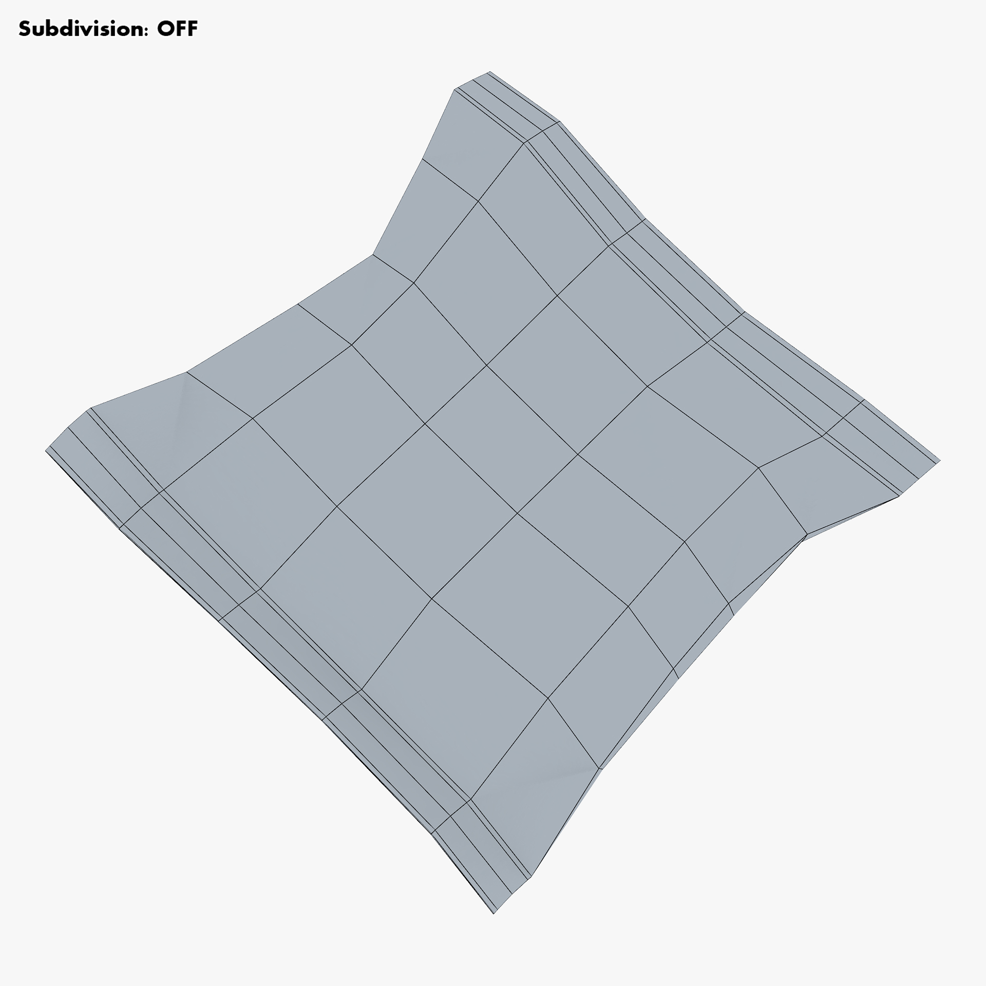 - Subdivision OFF: – Polygons: 202 – Triangles: 404 – Edges: 404 – Vertices: 204