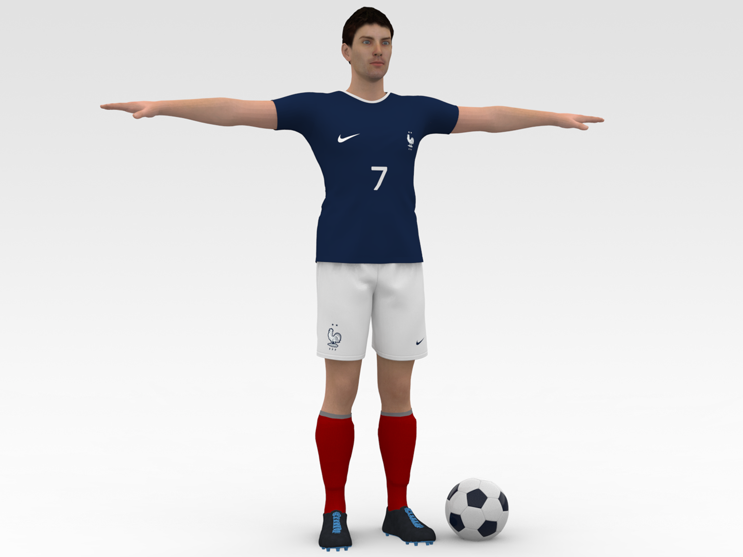 Description: Soccer Player 3D model is a high quality, photo real model that will enhance detail and realism to any of your game projects or commercials. The model has a fully textured, detailed design that allows for close-up renders.