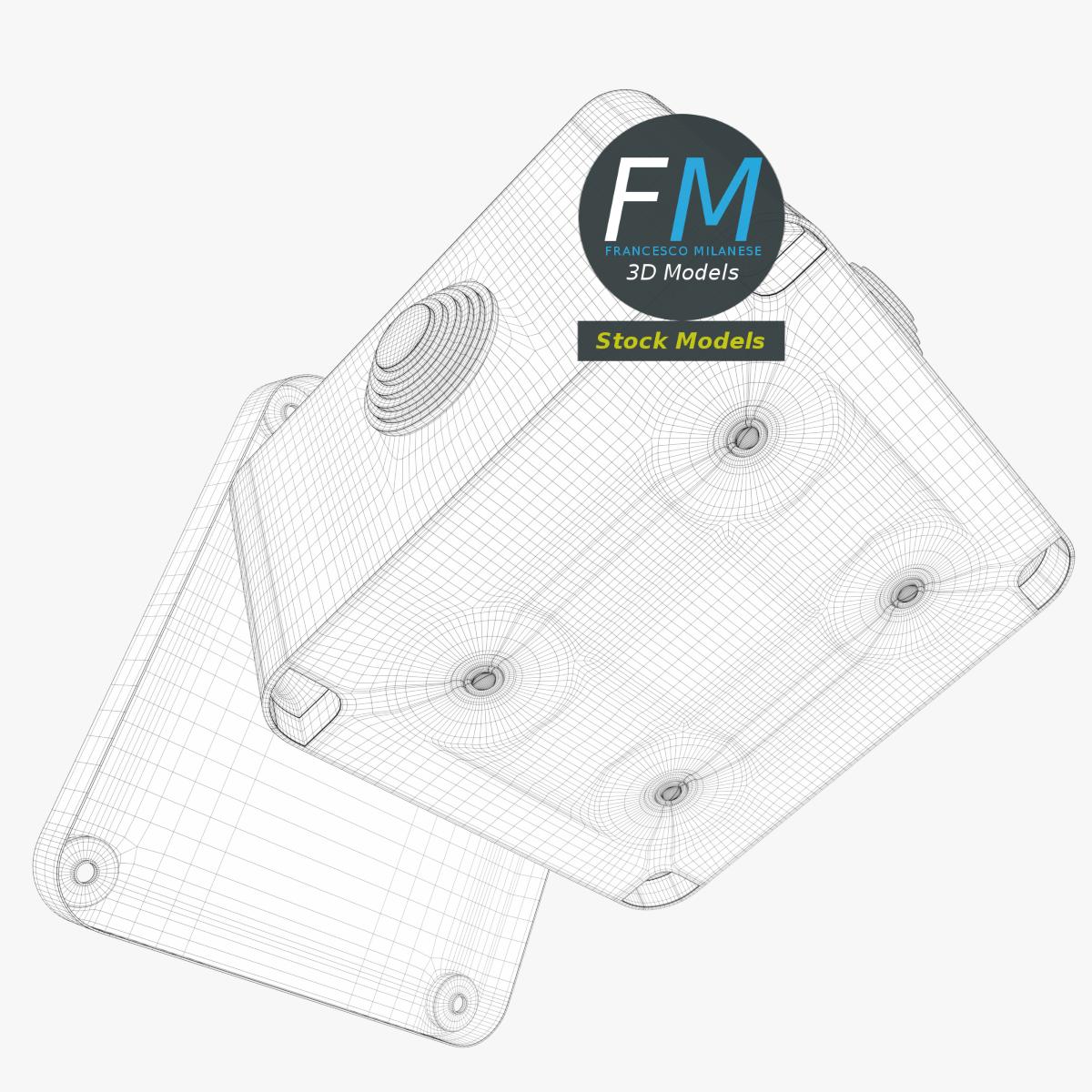 Square junction box 3D Model, nr. 1 in my collection. 2 individual objects (base, cover), sharing the same non overlapping UV Layout map, Material and PBR Textures set. Production-ready 3D Model, with PBR materials, textures, non overlapping UV Layout map provided in the package.