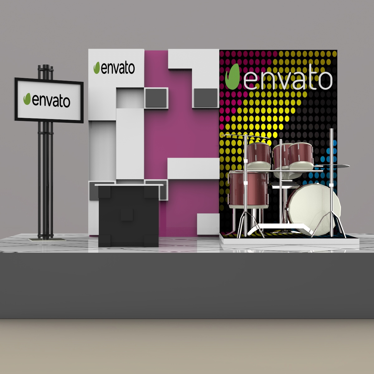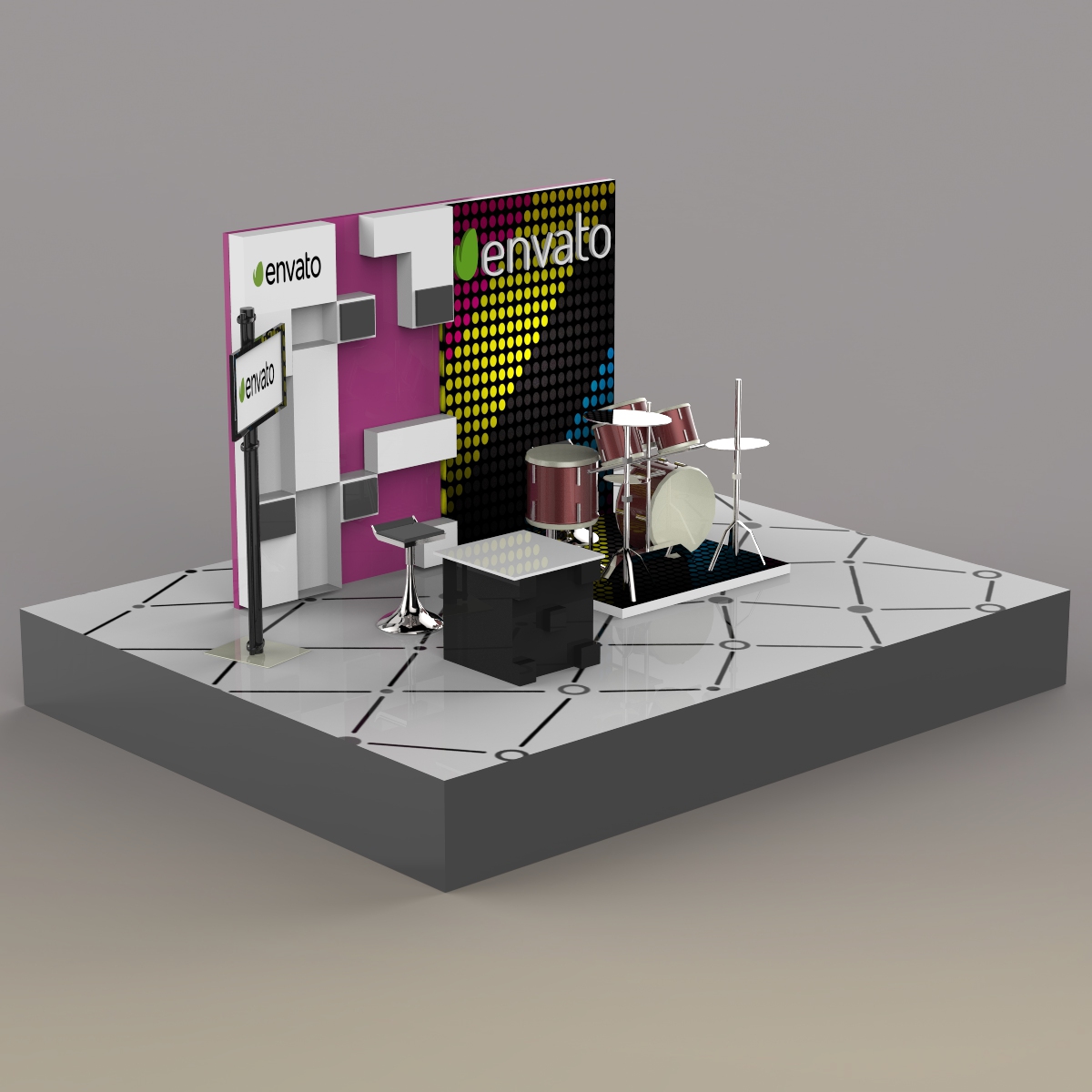 Here is 3d model of Stall Design was created from parts and named by objects and textures materials. Within a nice scene with good lighting it’s easy to get pretty realistic results with this.