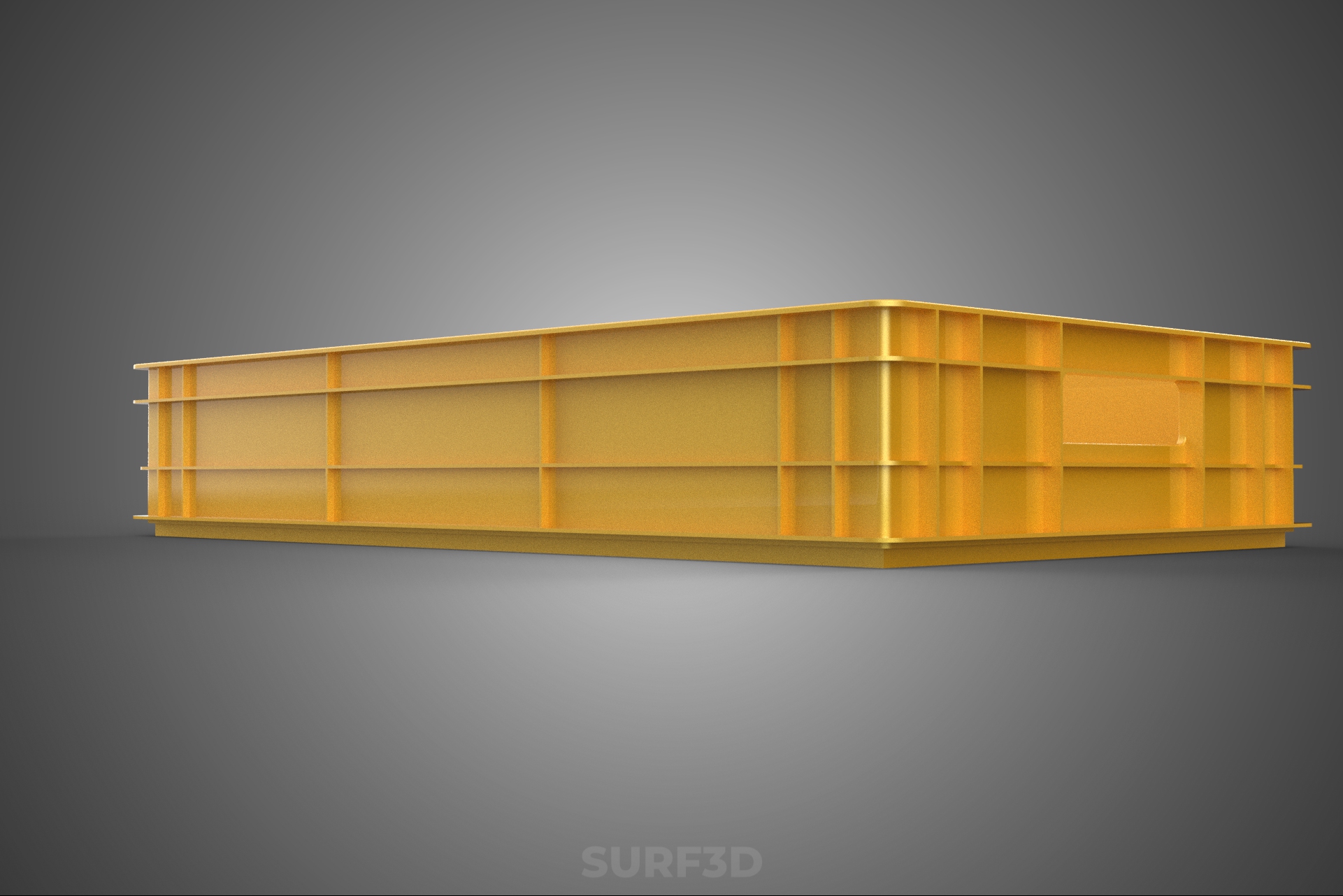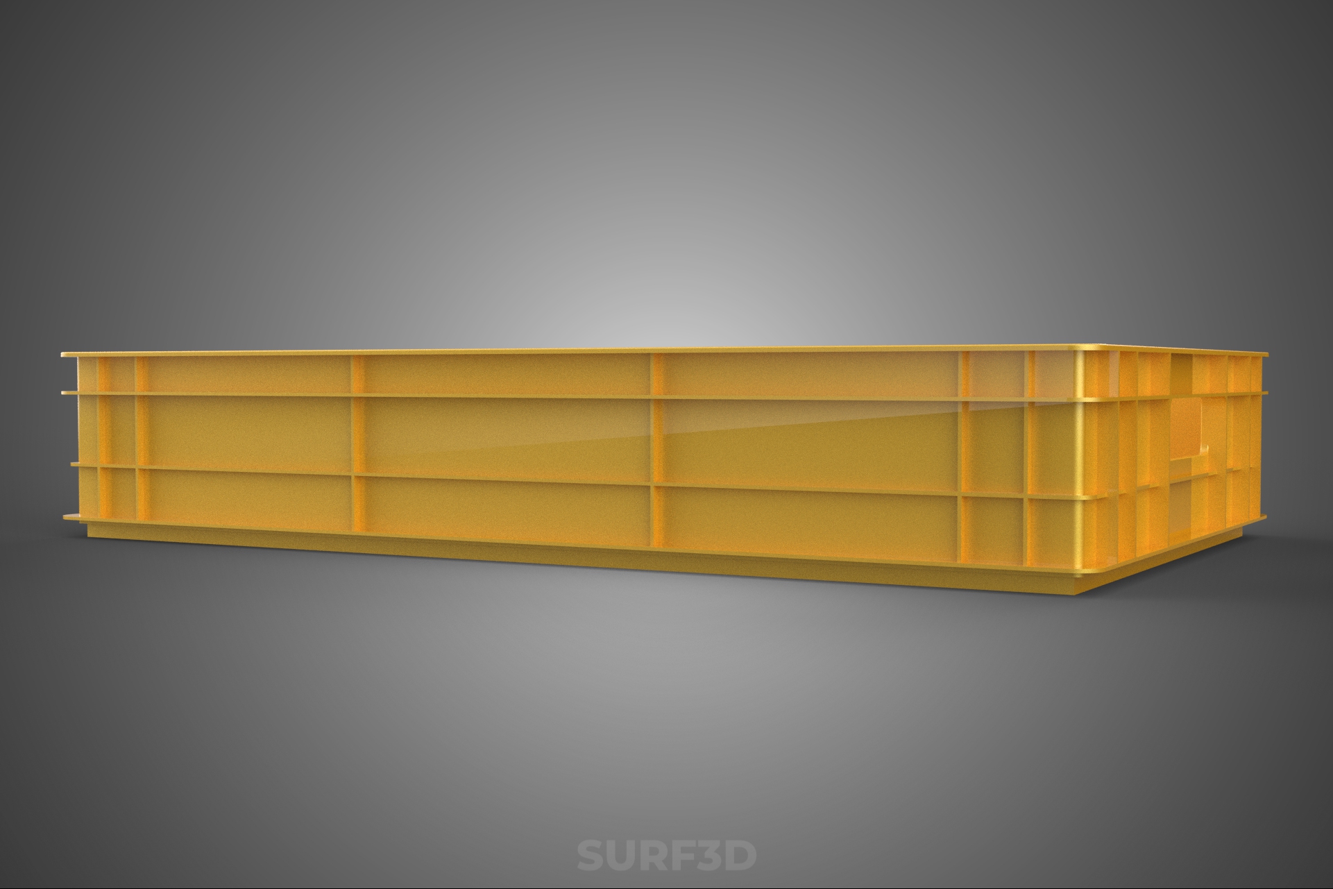 Coloration: The defining characteristic is the yellow pigmentation. This color is frequently employed in industrial settings for high visibility, aiding in inventory management, differentiation from other standardized colored containers (e.g., blue for raw materials, red for rejects), and signaling specific operational purposes or ownership. The coloring agent is typically UV-stabilized to minimize fading when exposed to sunlight.