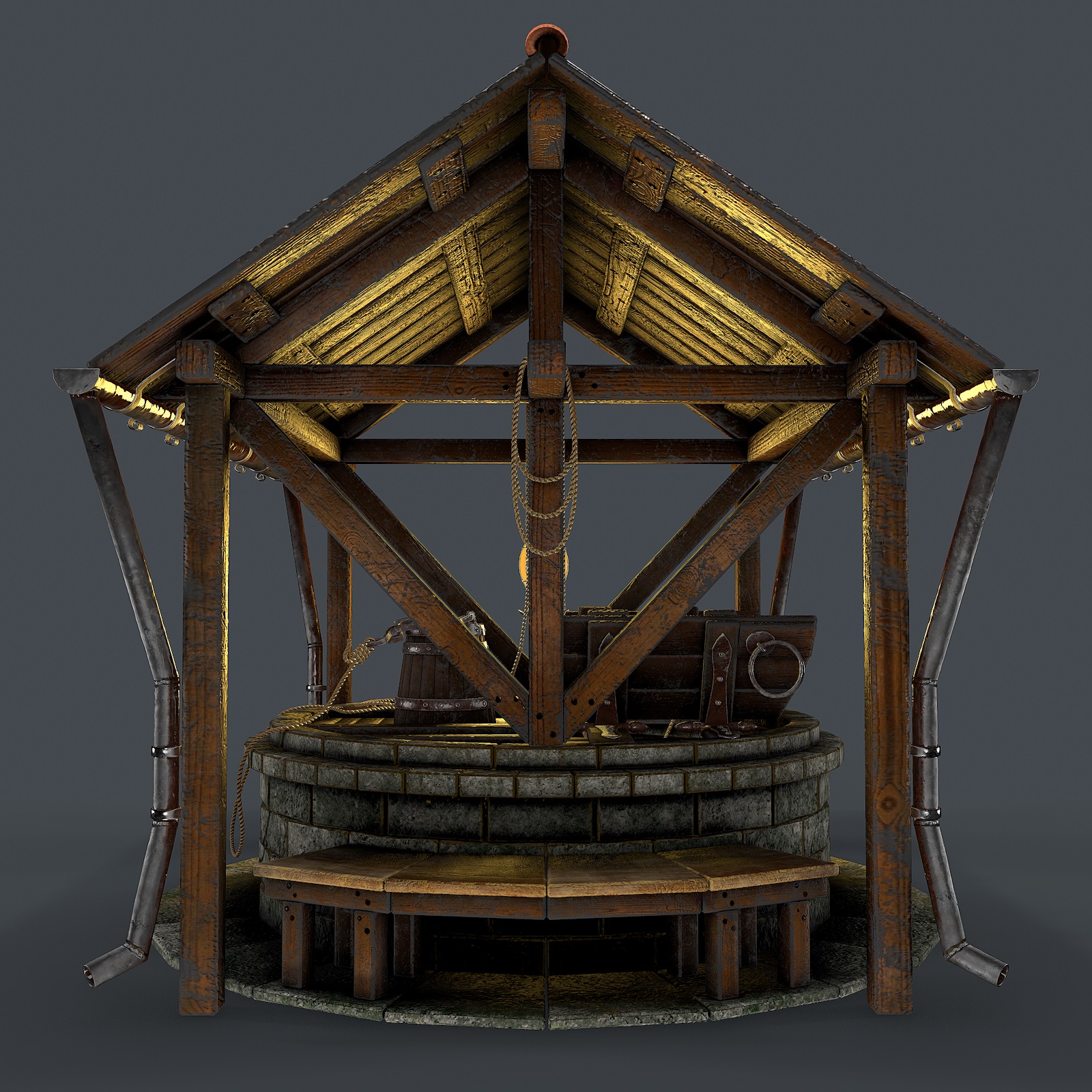 This is a high definition quality polygon of a Stone well 3d model with PBR and V-Ray textures. Extremely detailed and realistic. Suitable for movie prop, architectural visualizations, advertising renders and other.