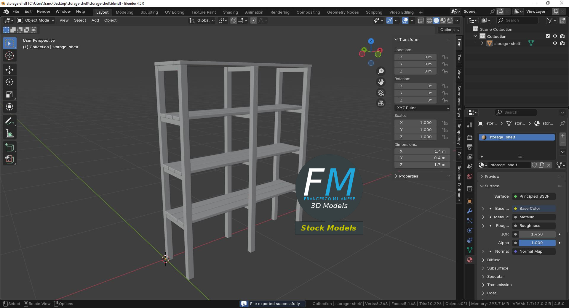 Uniform scale object (scale applied in Blender 4.5).