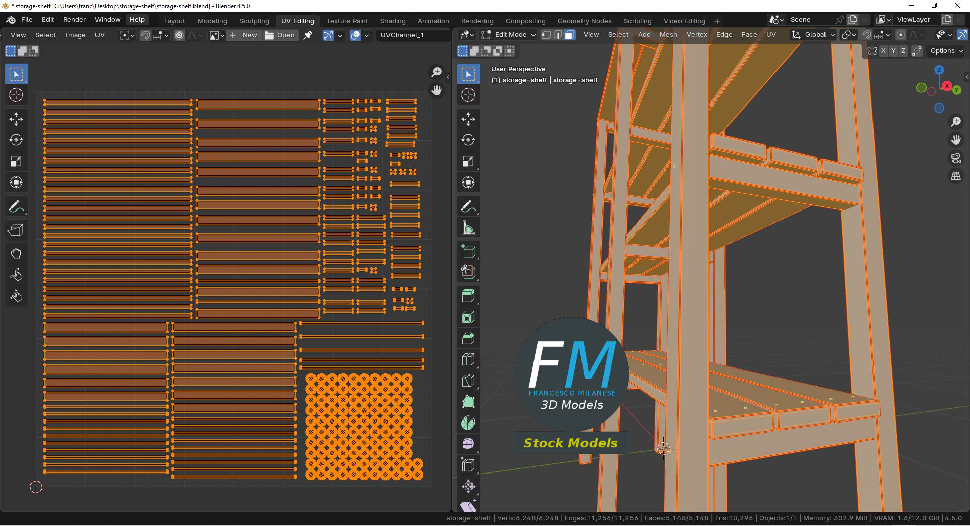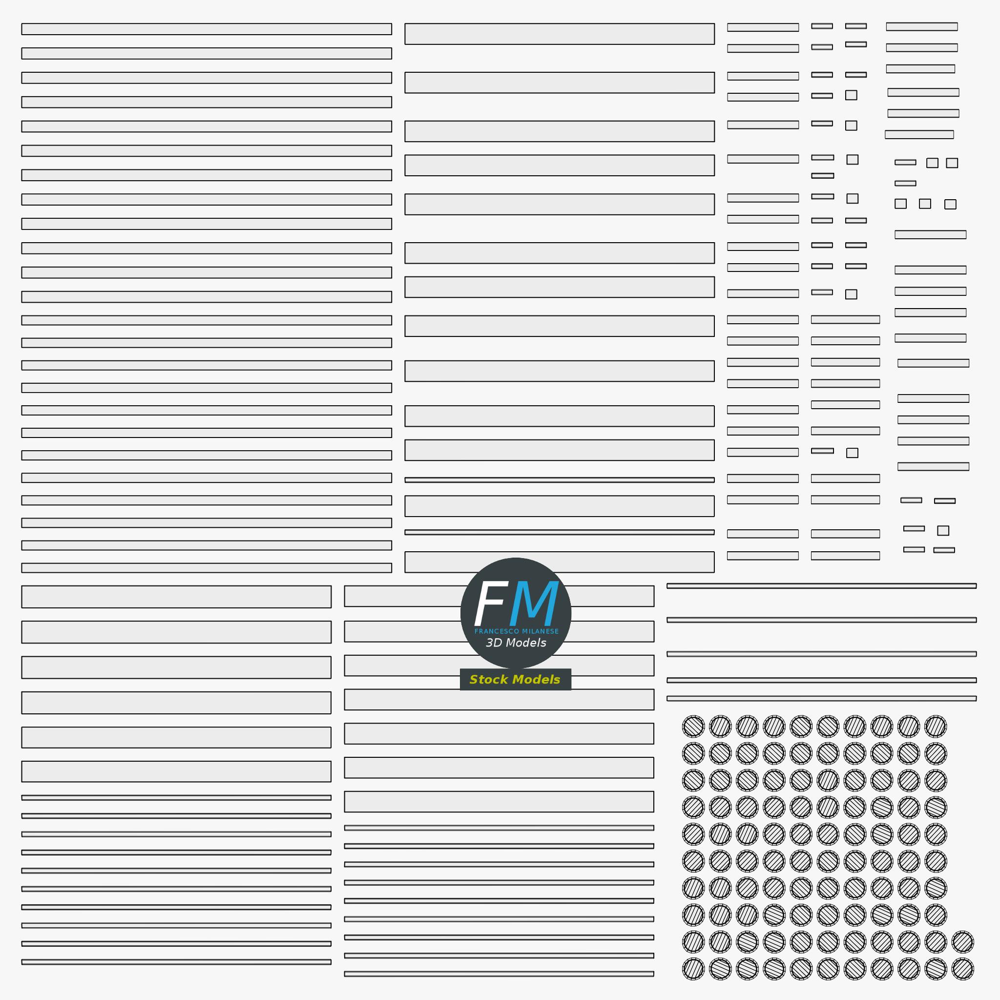 Easily customizable: UV unwrapped geometries; UV Layout maps provided in the package as png with alpha images.