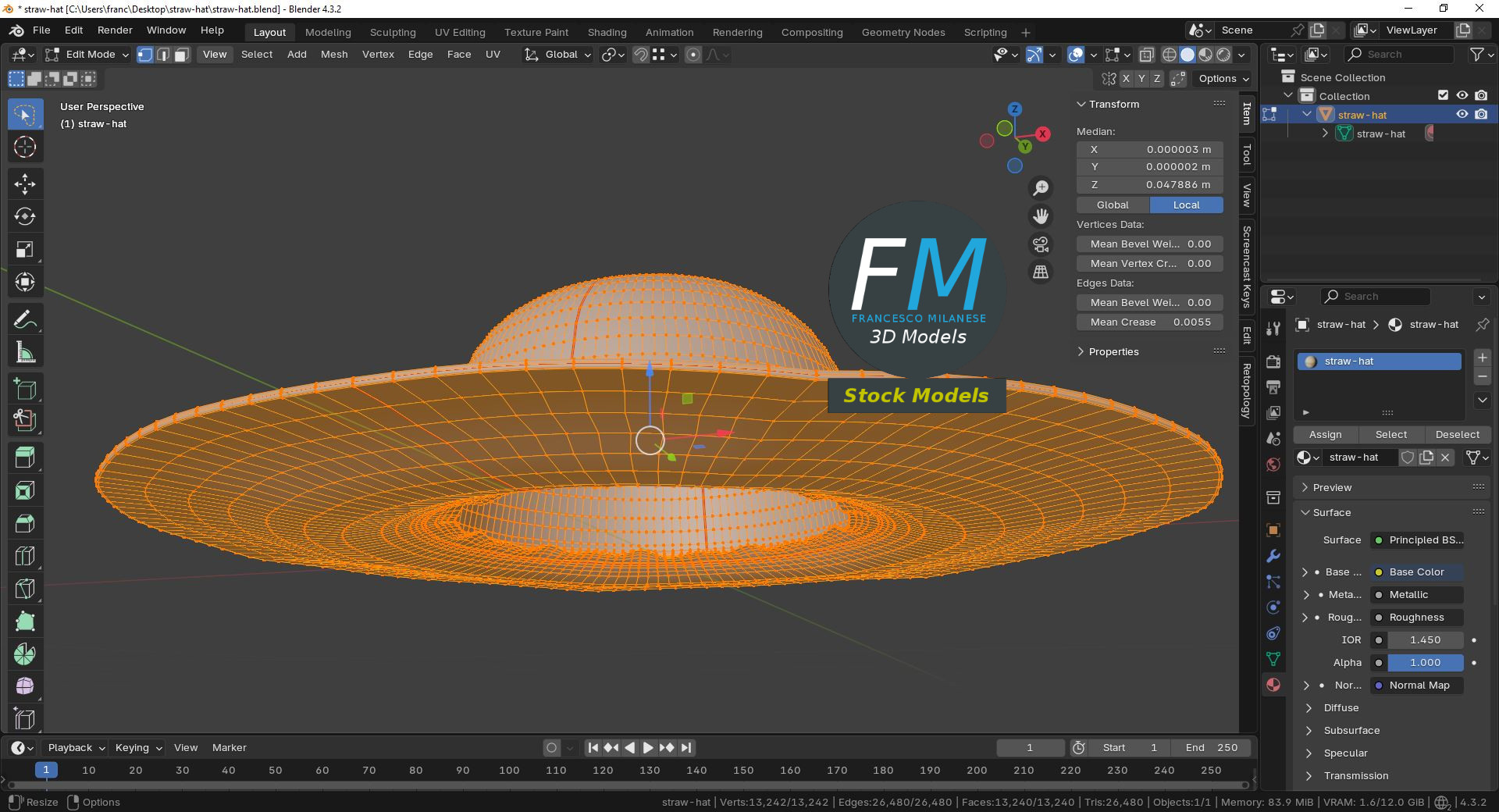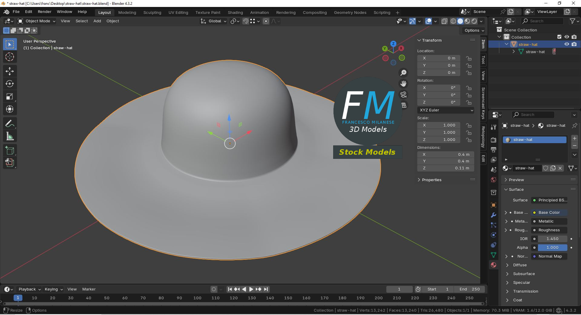 Sketchfab 3D preview: https://sketchfab.com/3d-models/straw-hat-a6815cf12d2c439fbb24125b58c5ee14