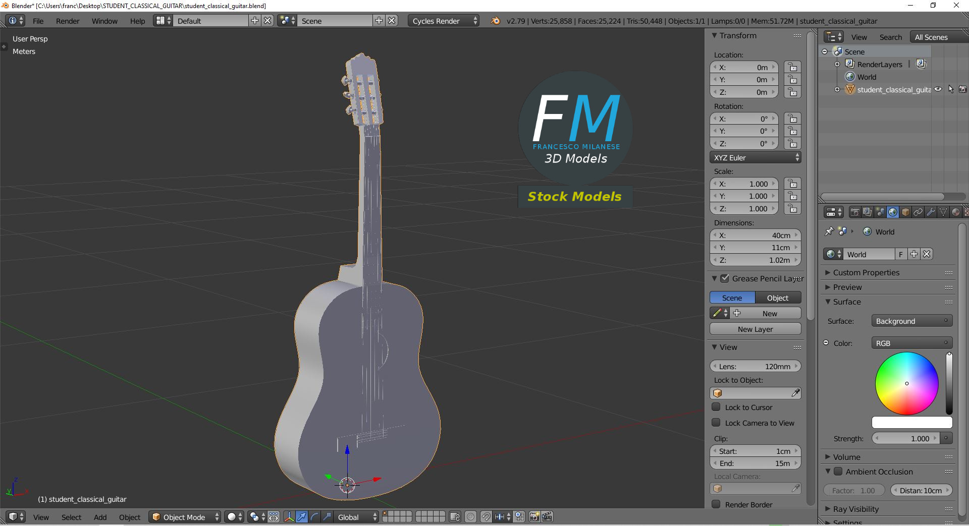 Sketchfab 3D preview: https://sketchfab.com/3d-models/student-classical-guitar-155c9d44c59141d8a595448414a543ce