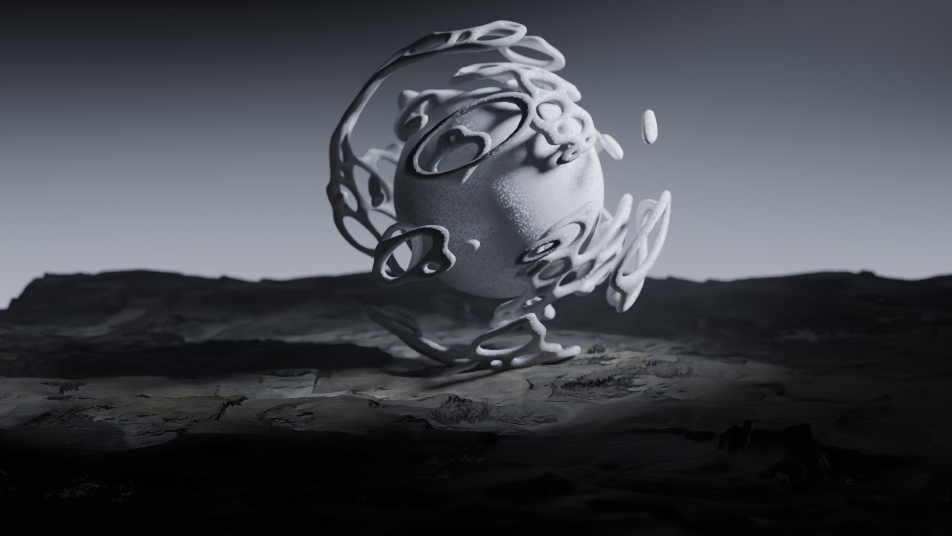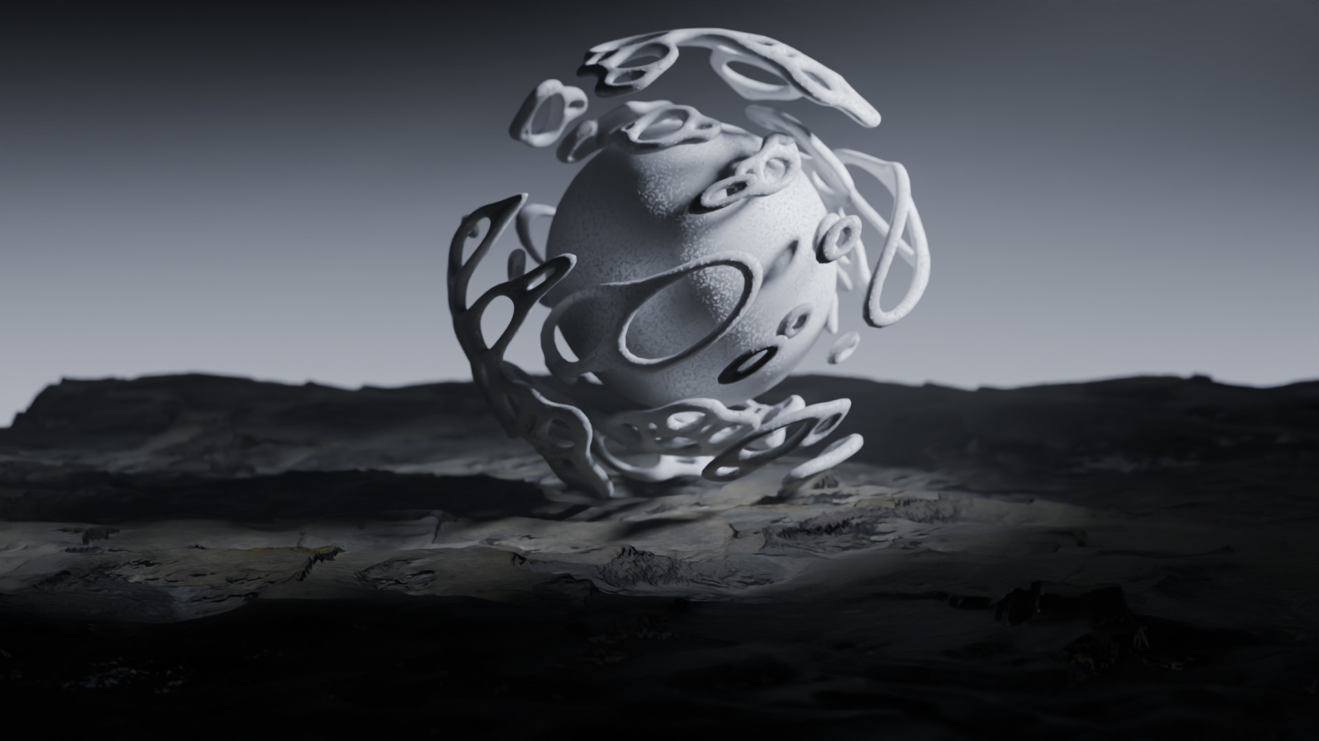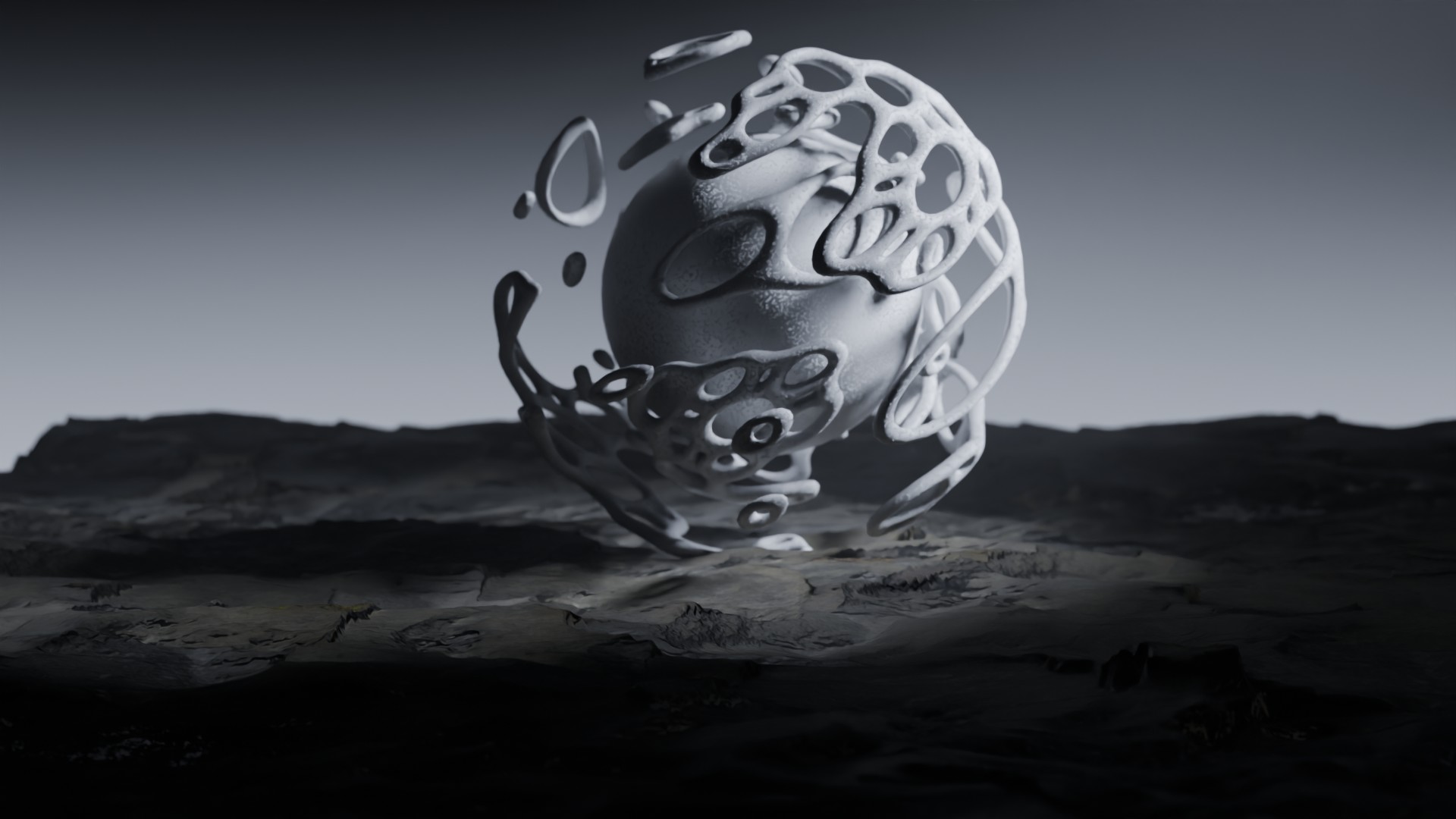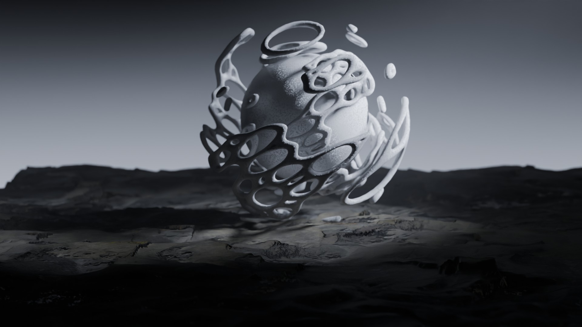 3D animation of alien landscape, 3d model created using a blender, content includes: