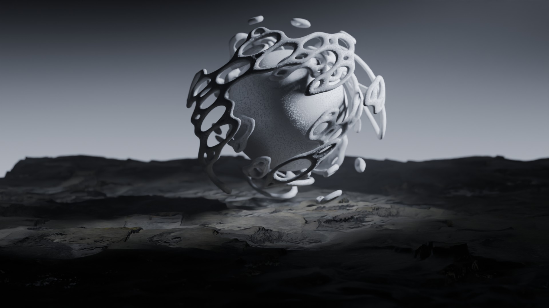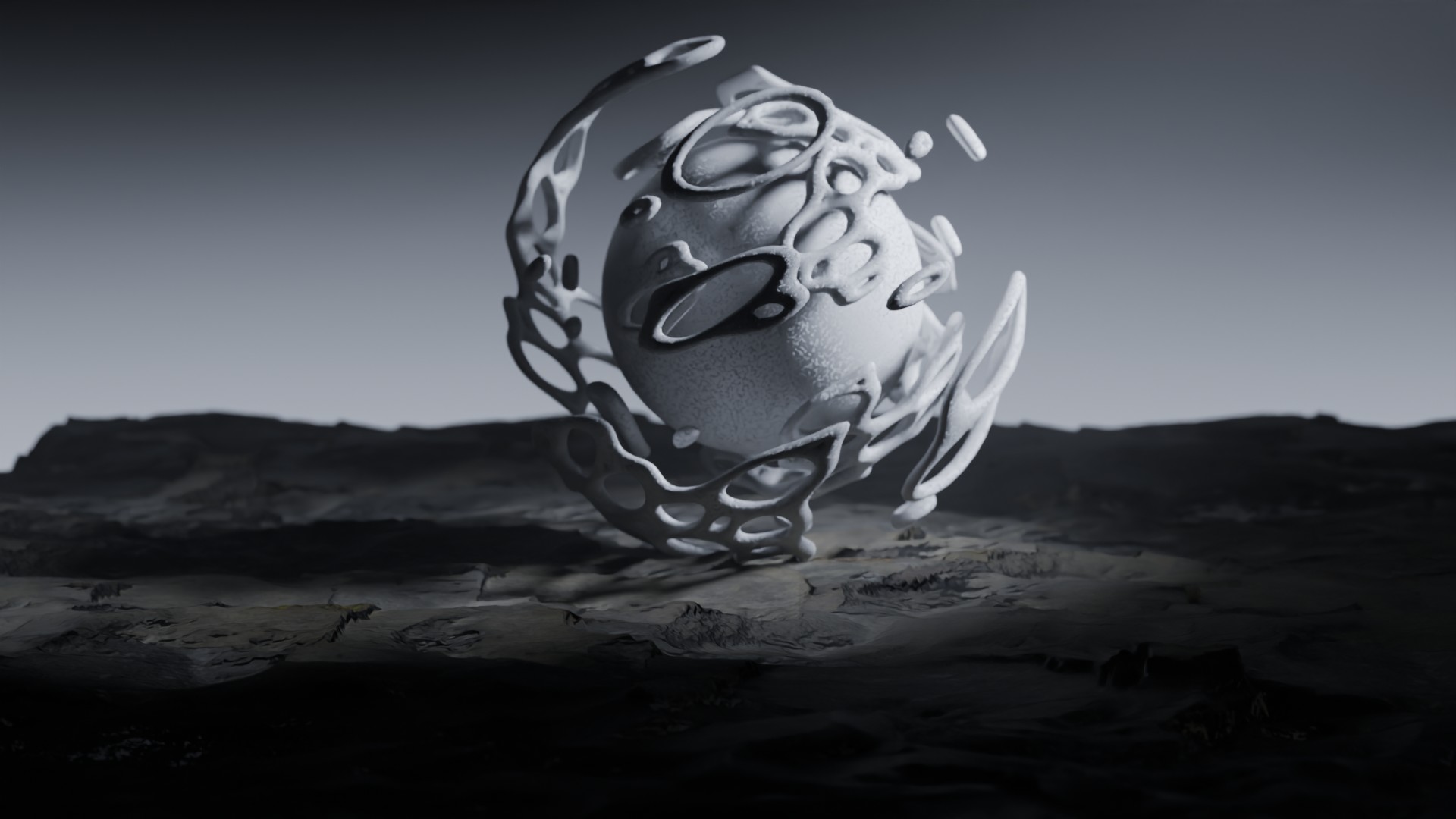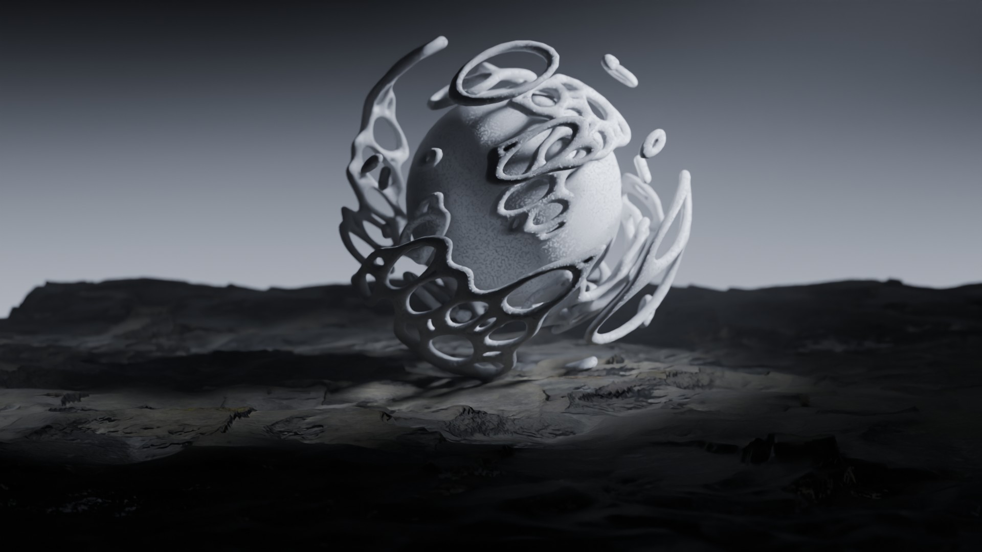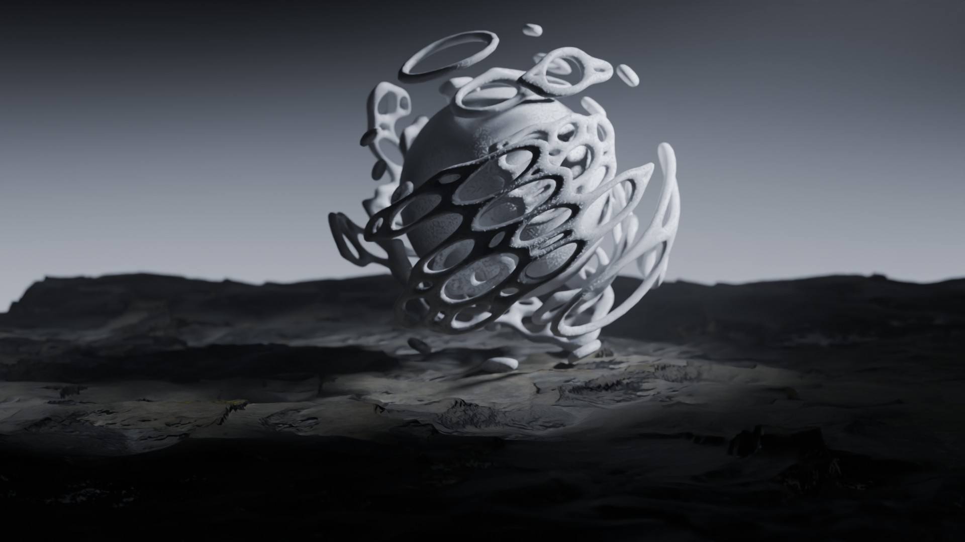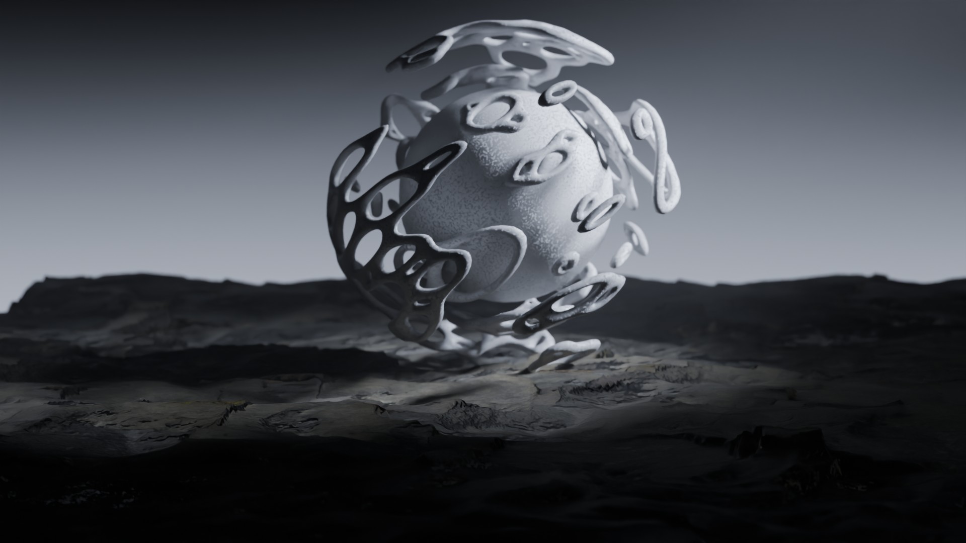 3D animation of alien landscape, 3d model created using a blender, content includes: