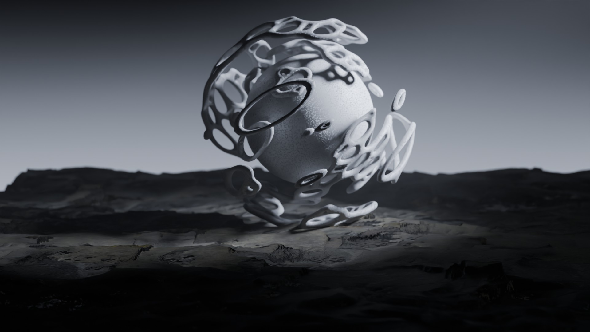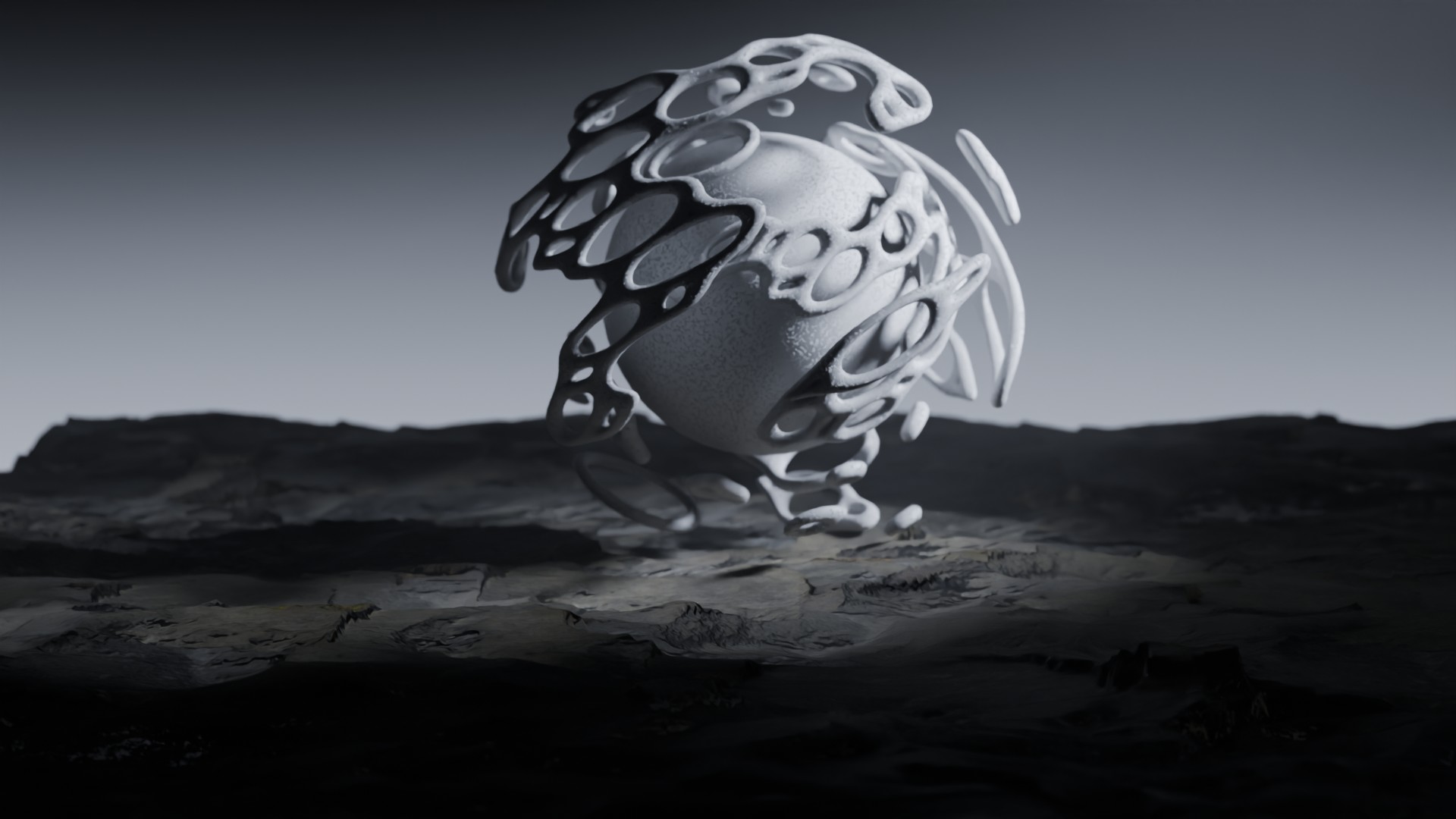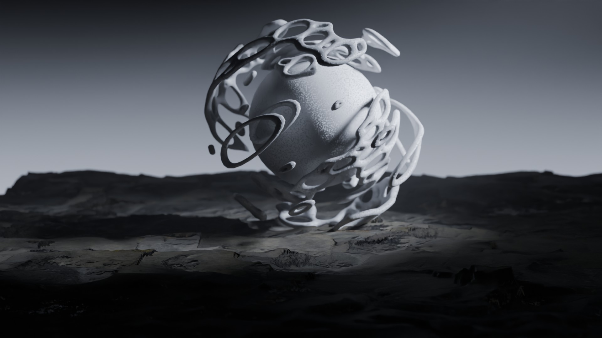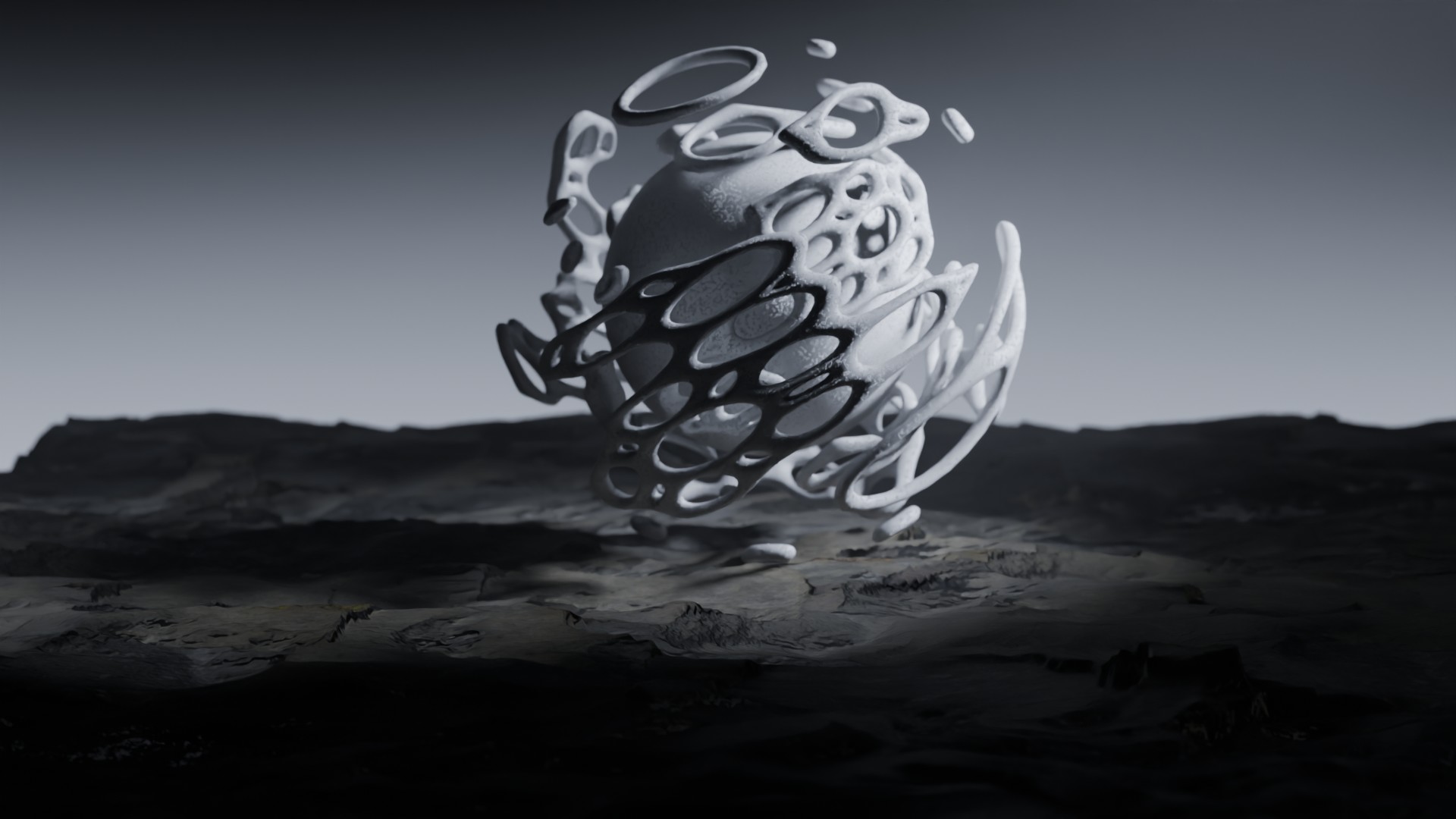3D animation of alien landscape, 3d model created using a blender, content includes: