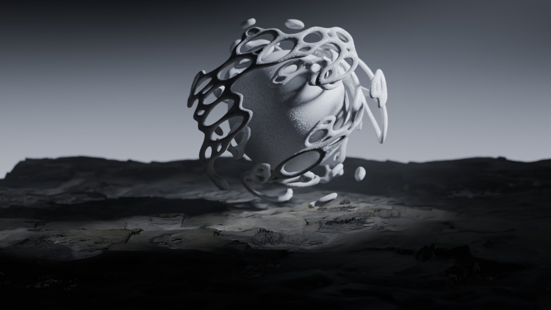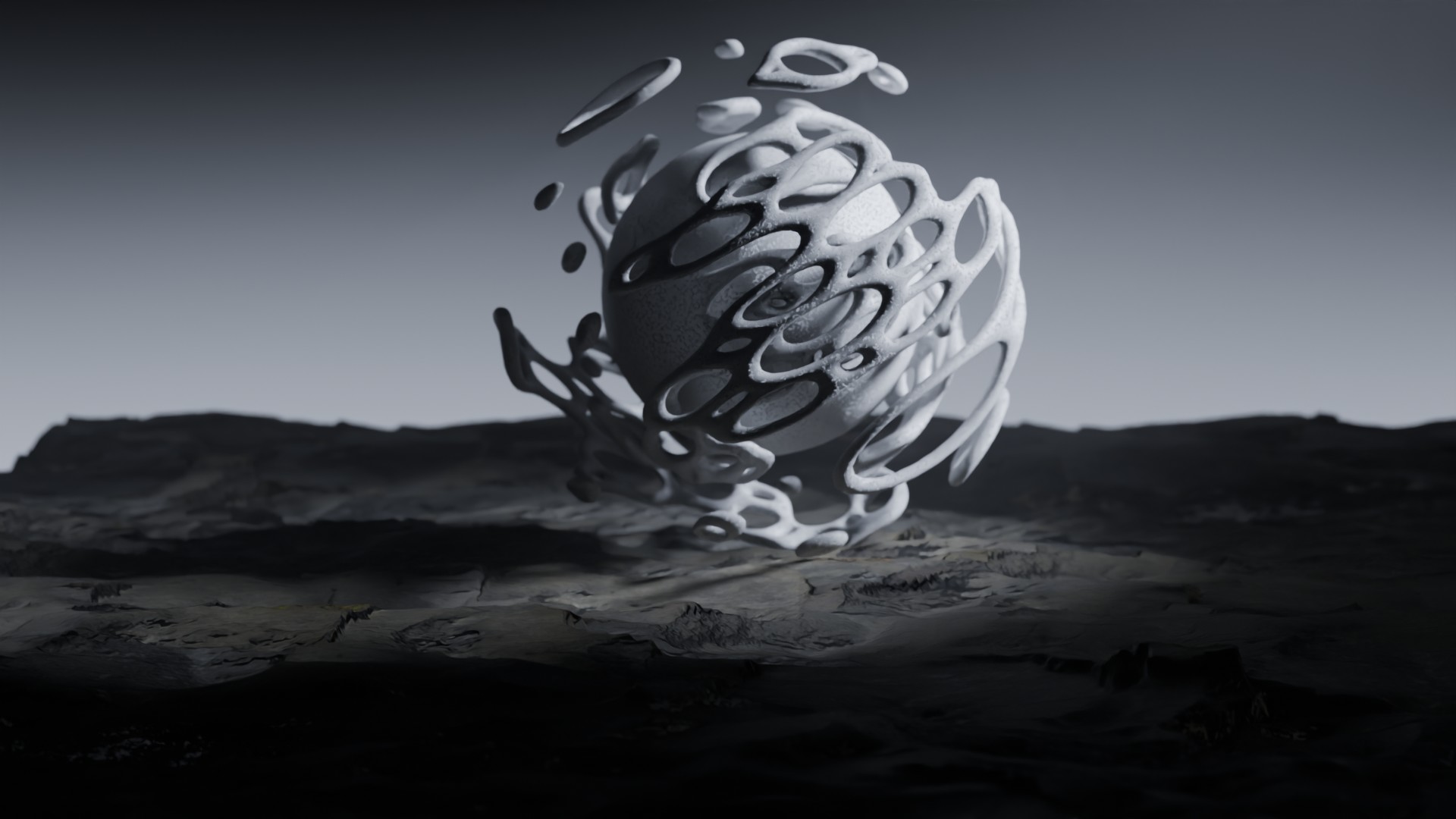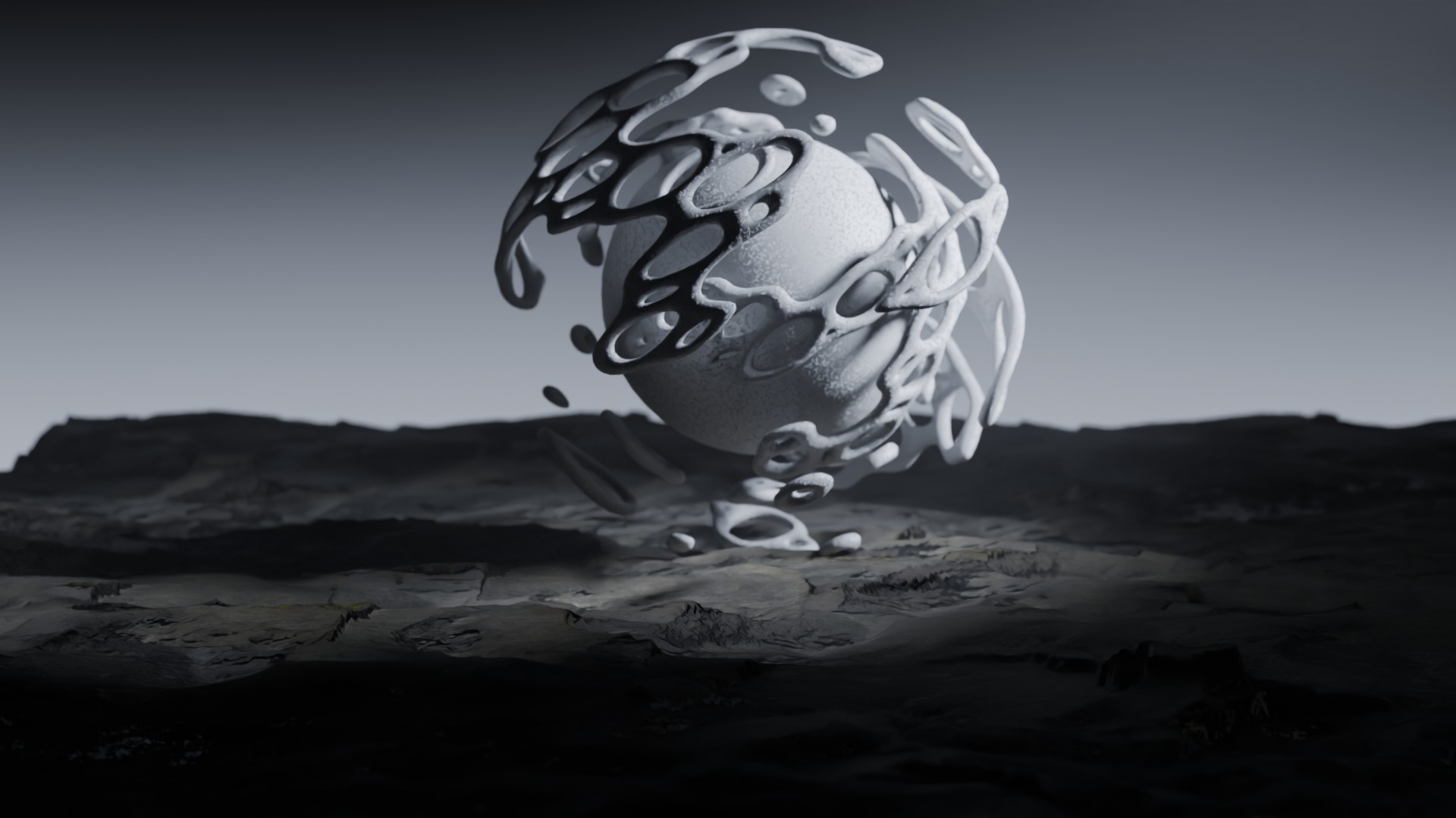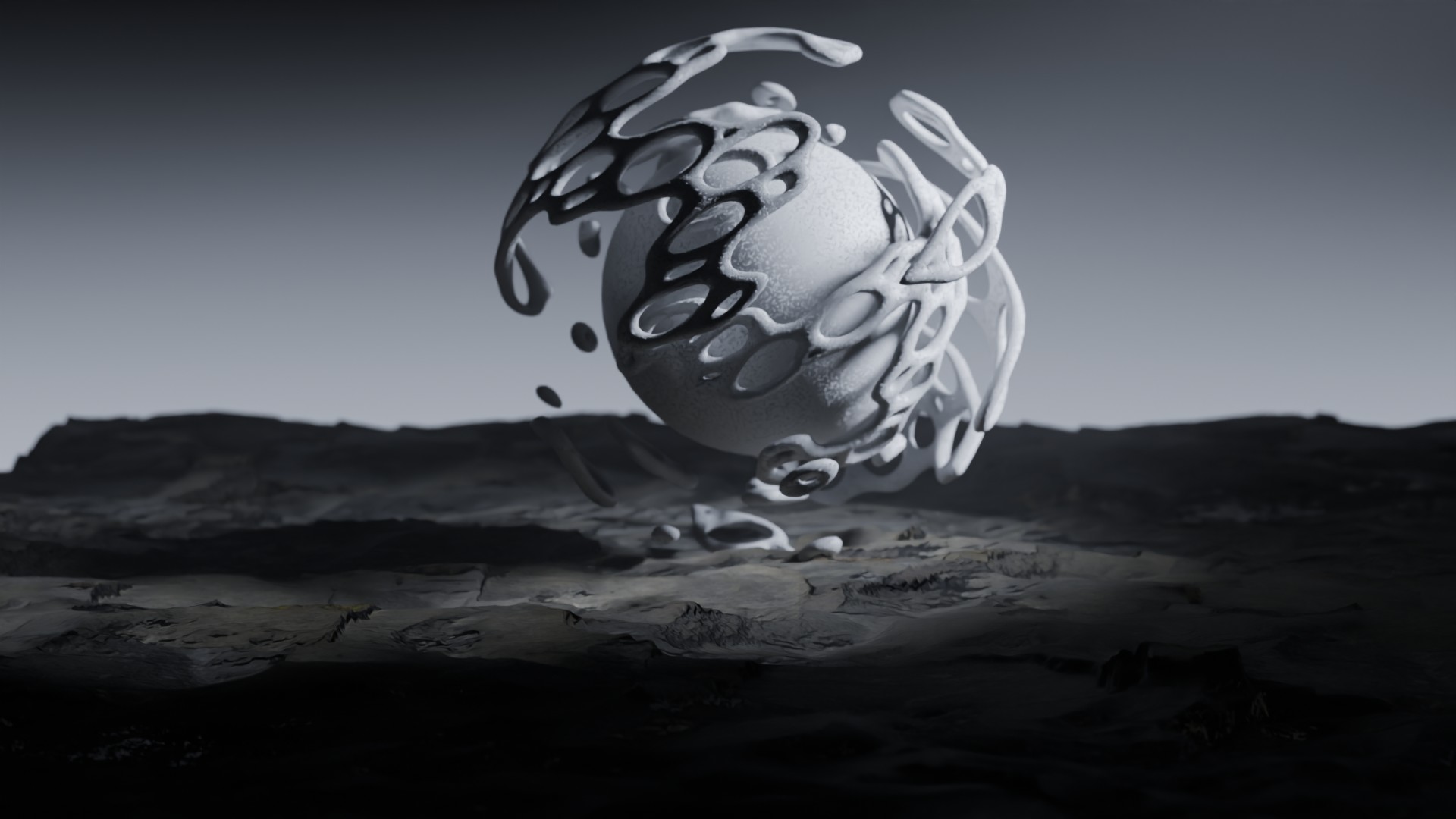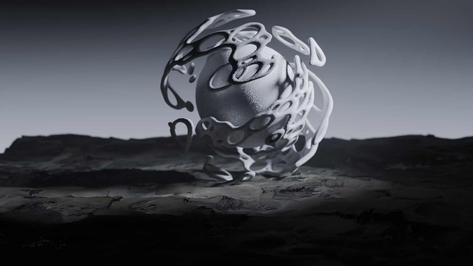 3D animation of alien landscape, 3d model created using a blender, content includes: