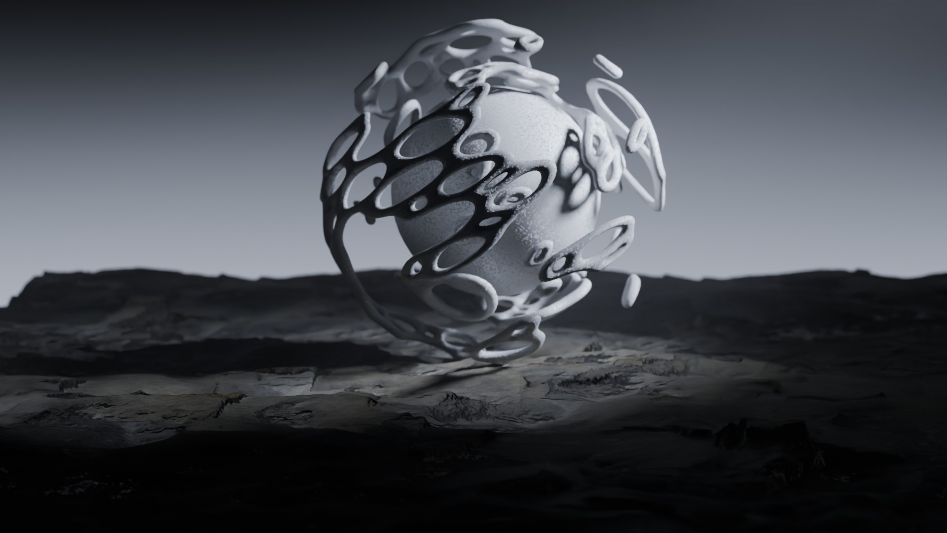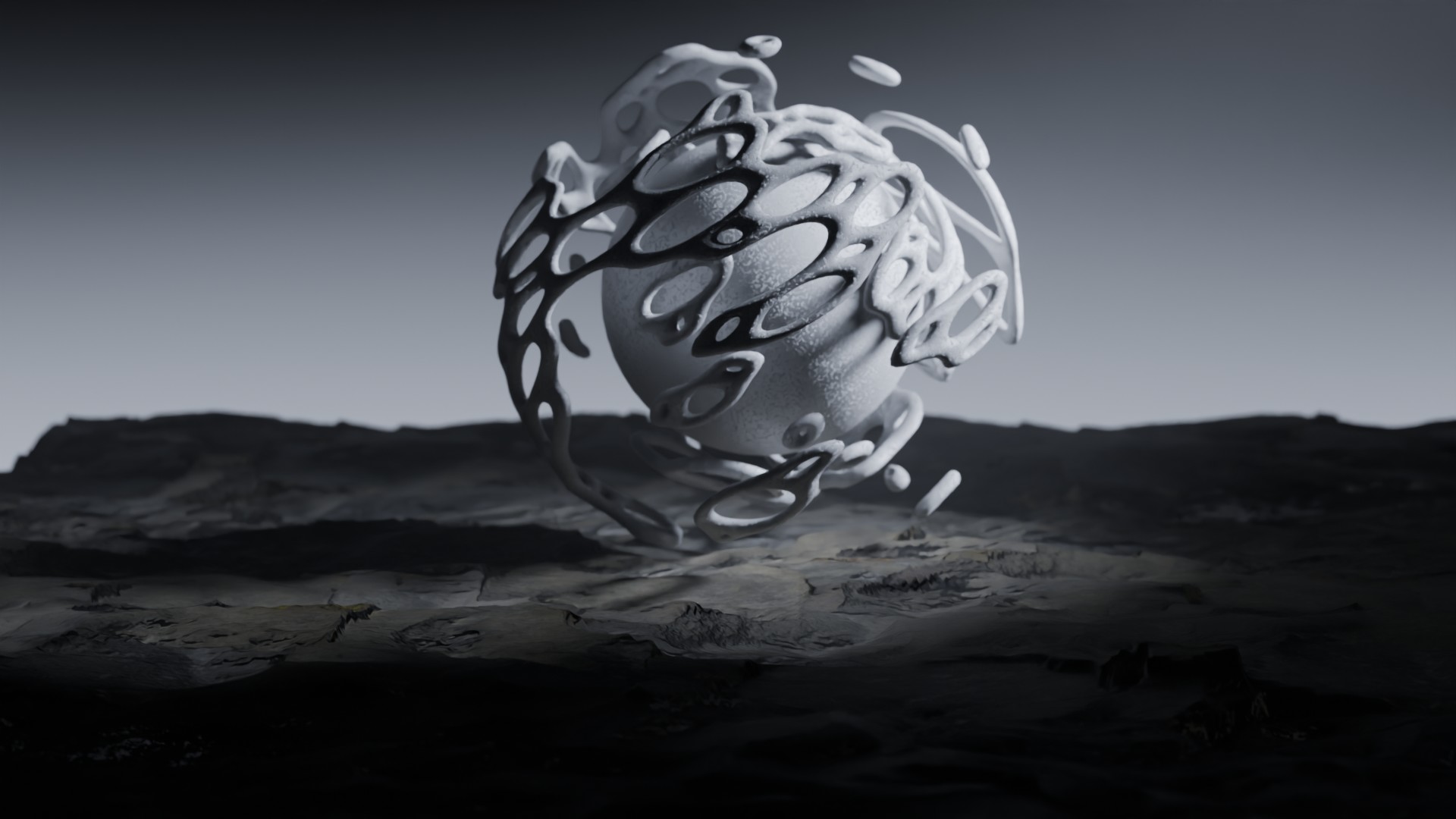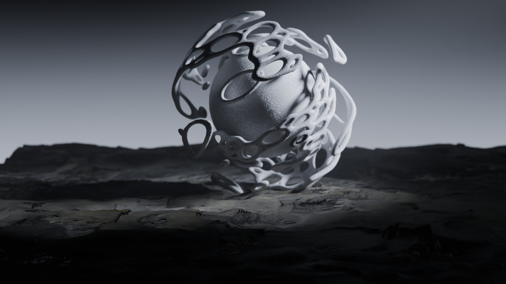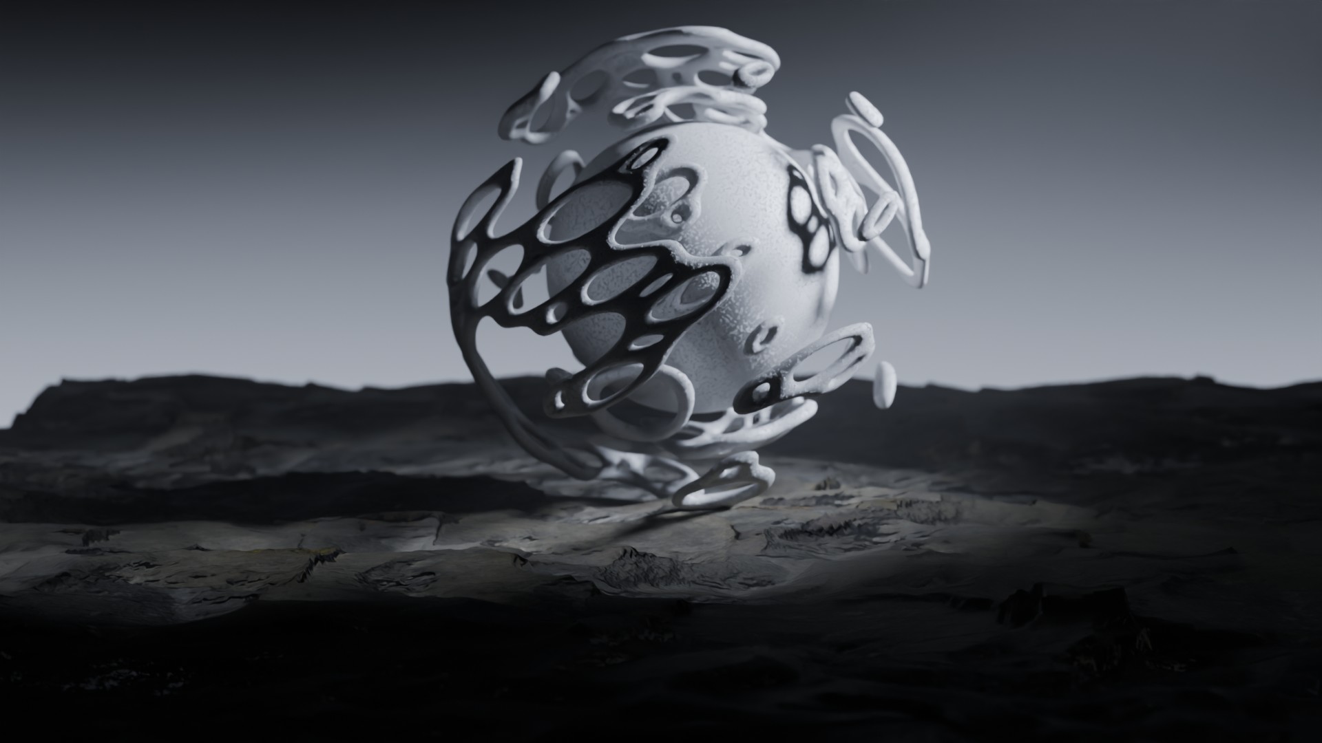 3D animation of alien landscape, 3d model created using a blender, content includes: