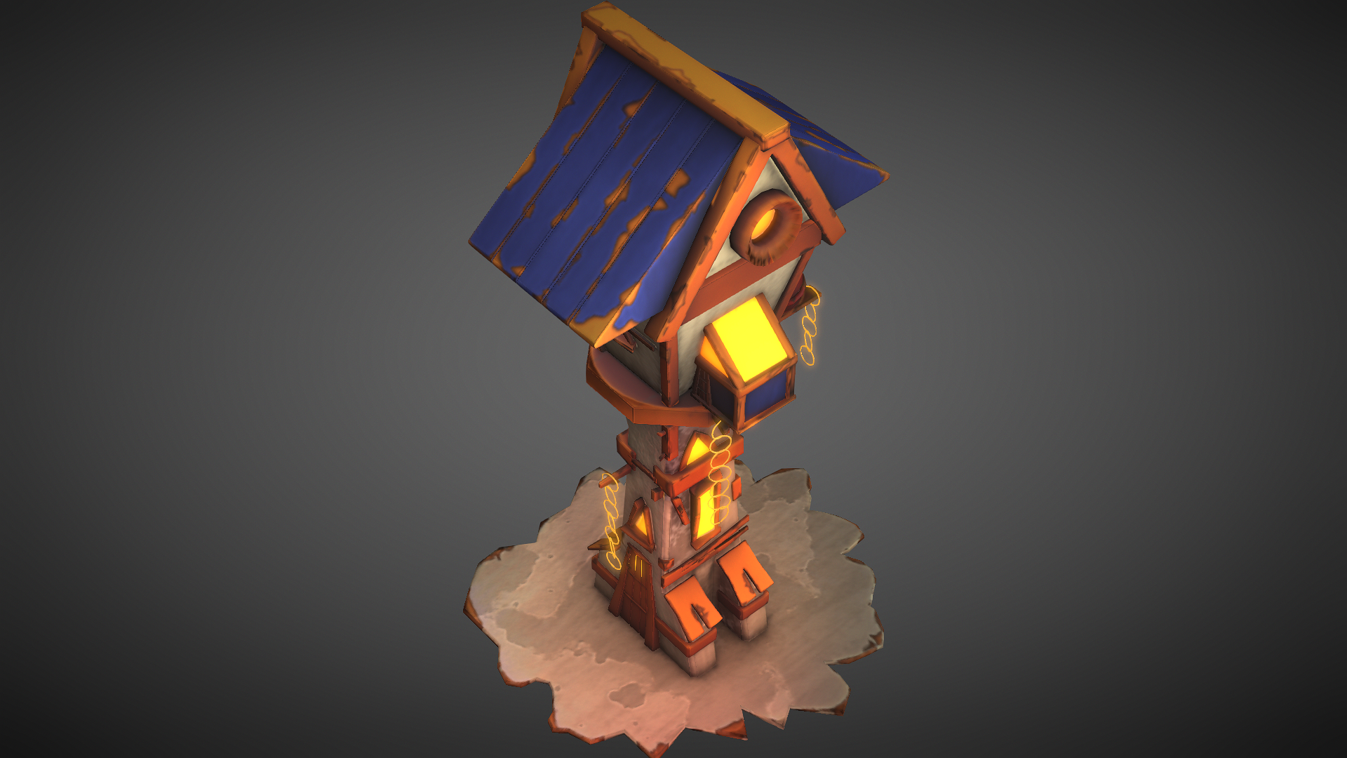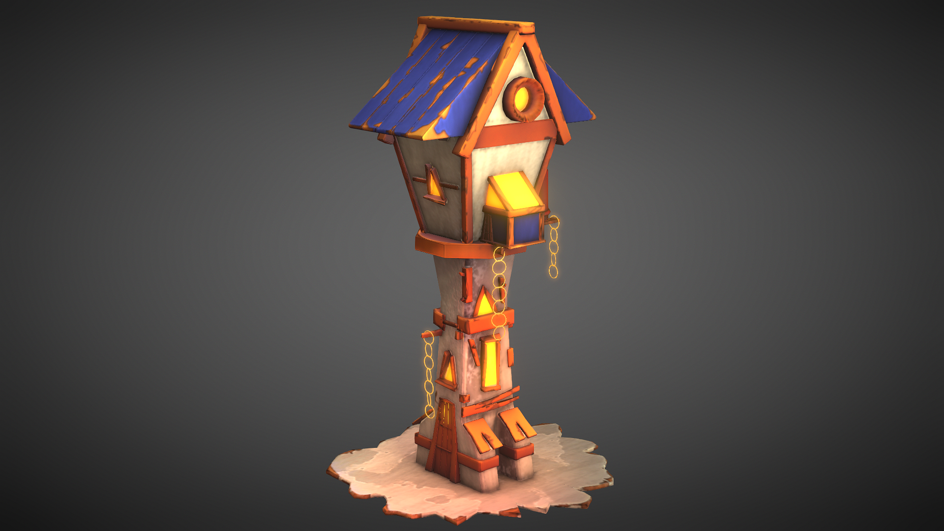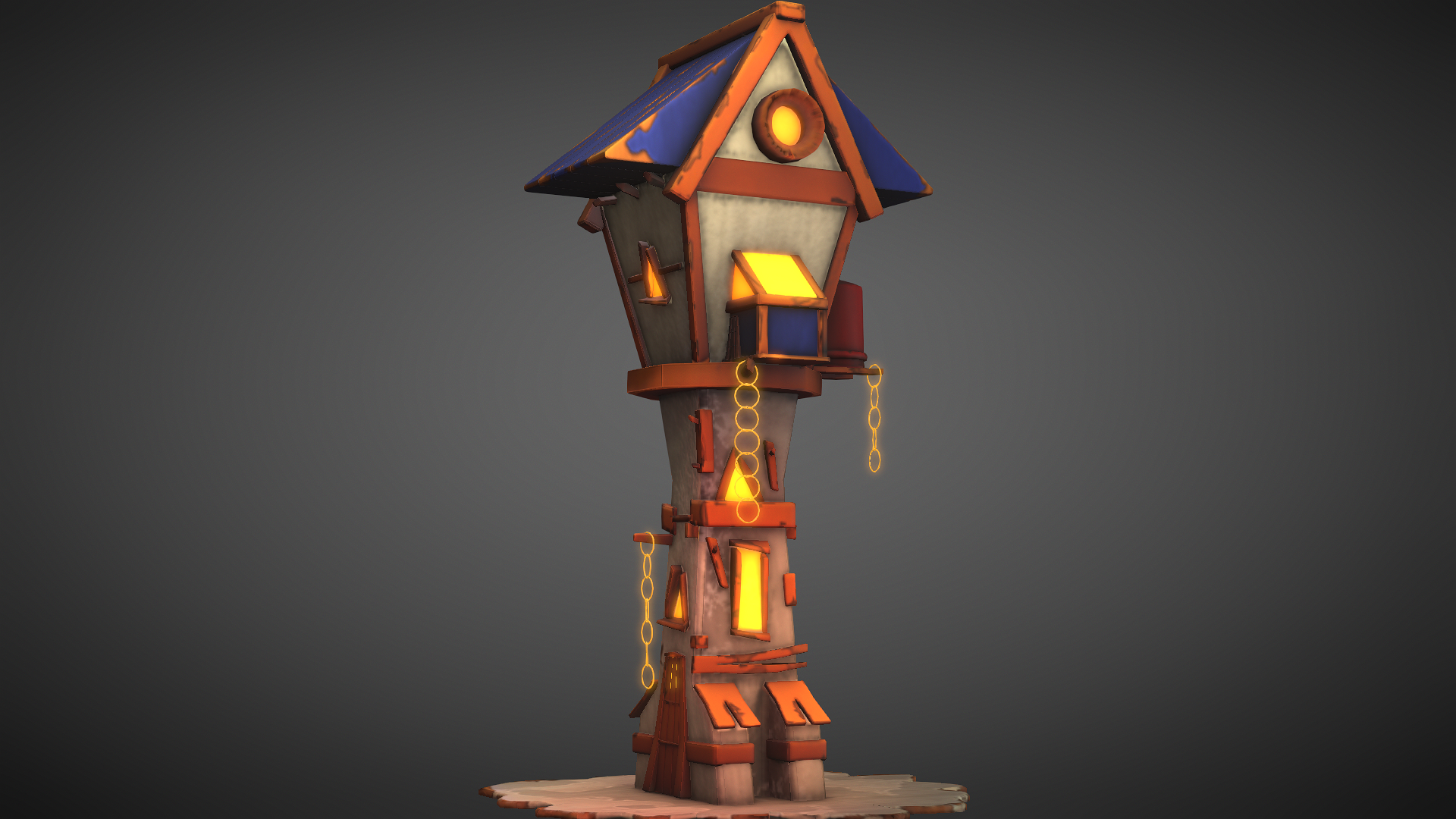 A stylized lighthouse is a model or representation of a lighthouse that has been created with a particular artistic or aesthetic style in mind. It is often designed to be more decorative or visually interesting than a realistic model. A stylized lighthouse can be made using a variety of materials, such as wood, plastic, or cardboard, and can be painted in any colors or patterns that the creator desires. Stylized lighthouse models can also be used as props in films, TV shows, or theatrical productions, where a realistic lighthouse may not be necessary.