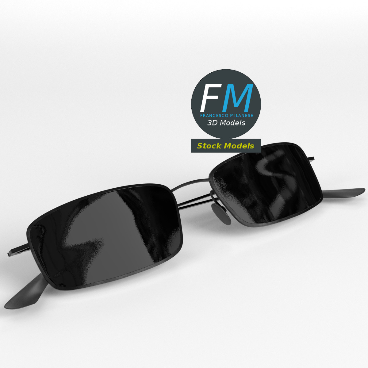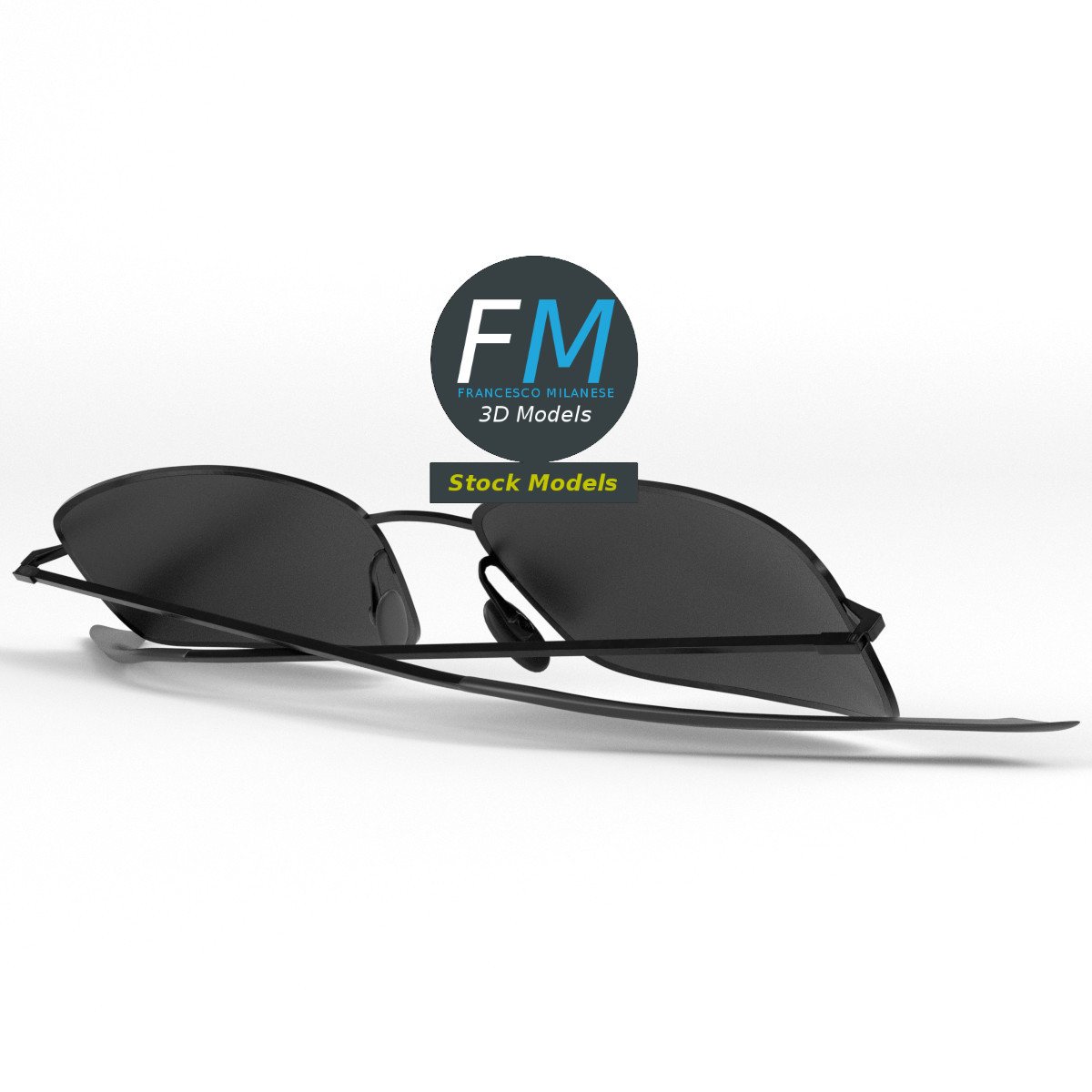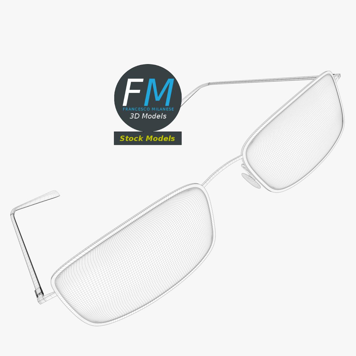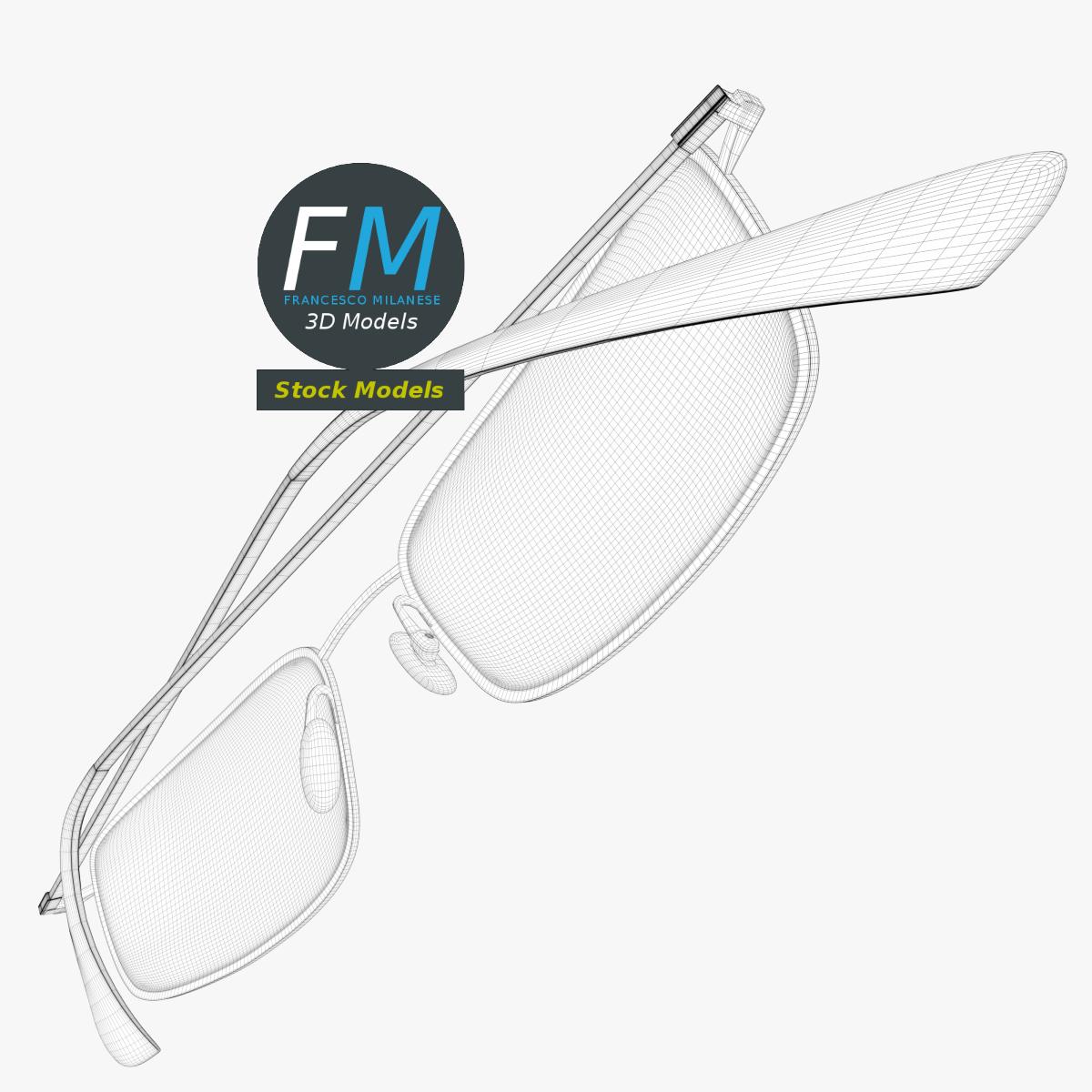 Full frame sunglasses 3D Model. 3 individual objects (frame with mirror-like lenses, right temple, left temple; so, you can easily rotate or even animate the temples), sharing the same non overlapping UV Layout map, Materials (no transparency!) and PBR Textures set. Production-ready 3D Model, with PBR materials, textures, non overlapping UV Layout map provided in the package.