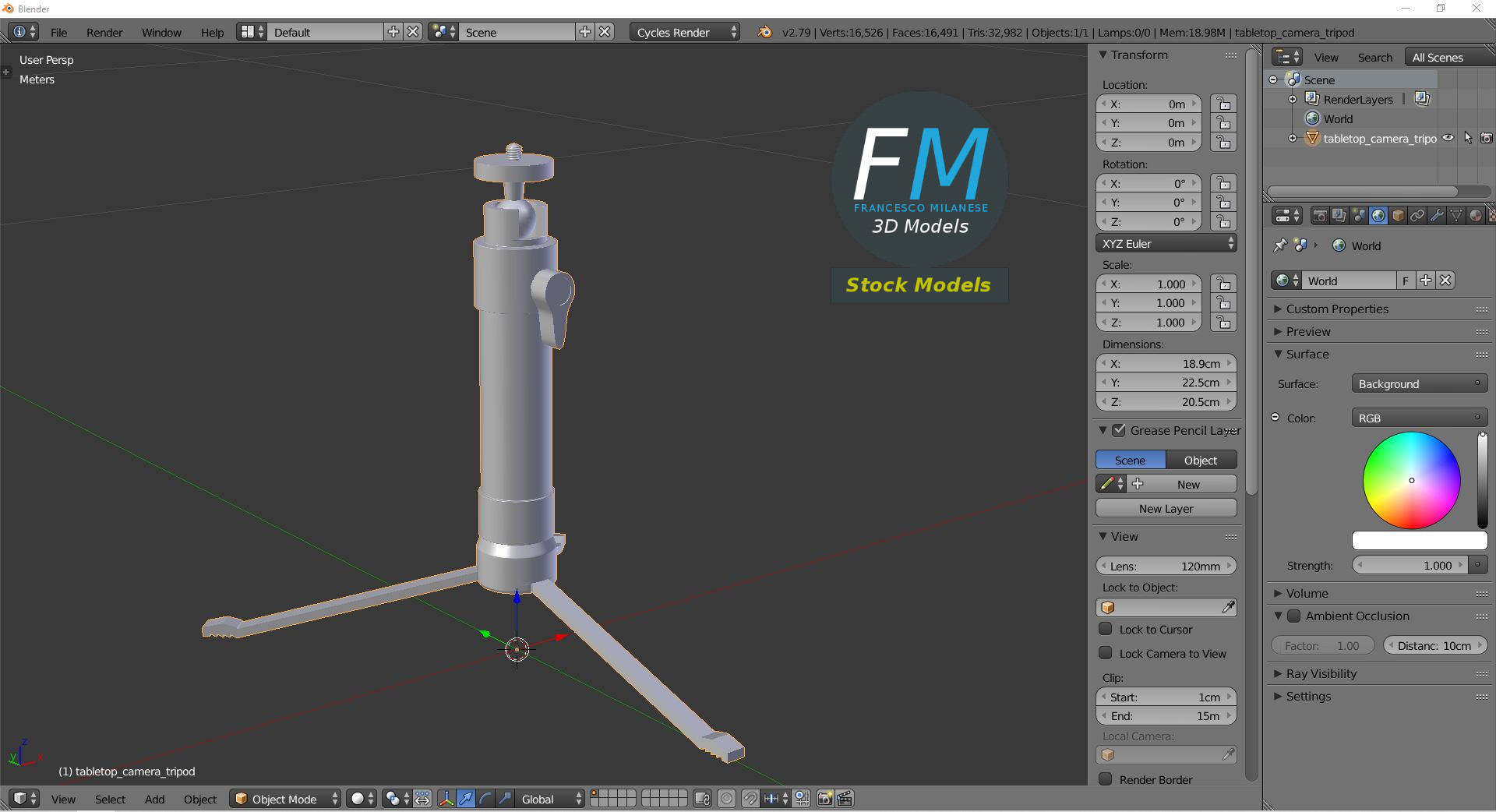 IMPORTANT - Main renderings made in Blender 3D 2.80 + Cycles (or Eevee) using an HDR Environment Texture Image which is NOT provided in the package!
