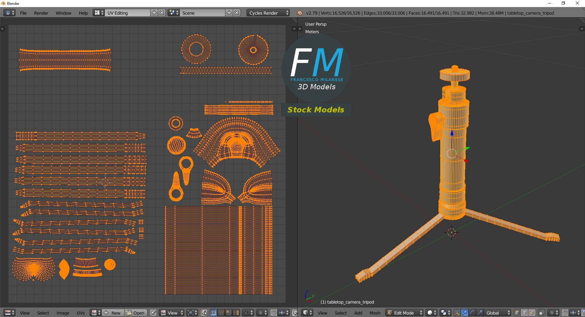 Polygonal, QUADS ONLY (no tris/ngons); 16526 vertices, 16491 quad faces (32982 tris).
