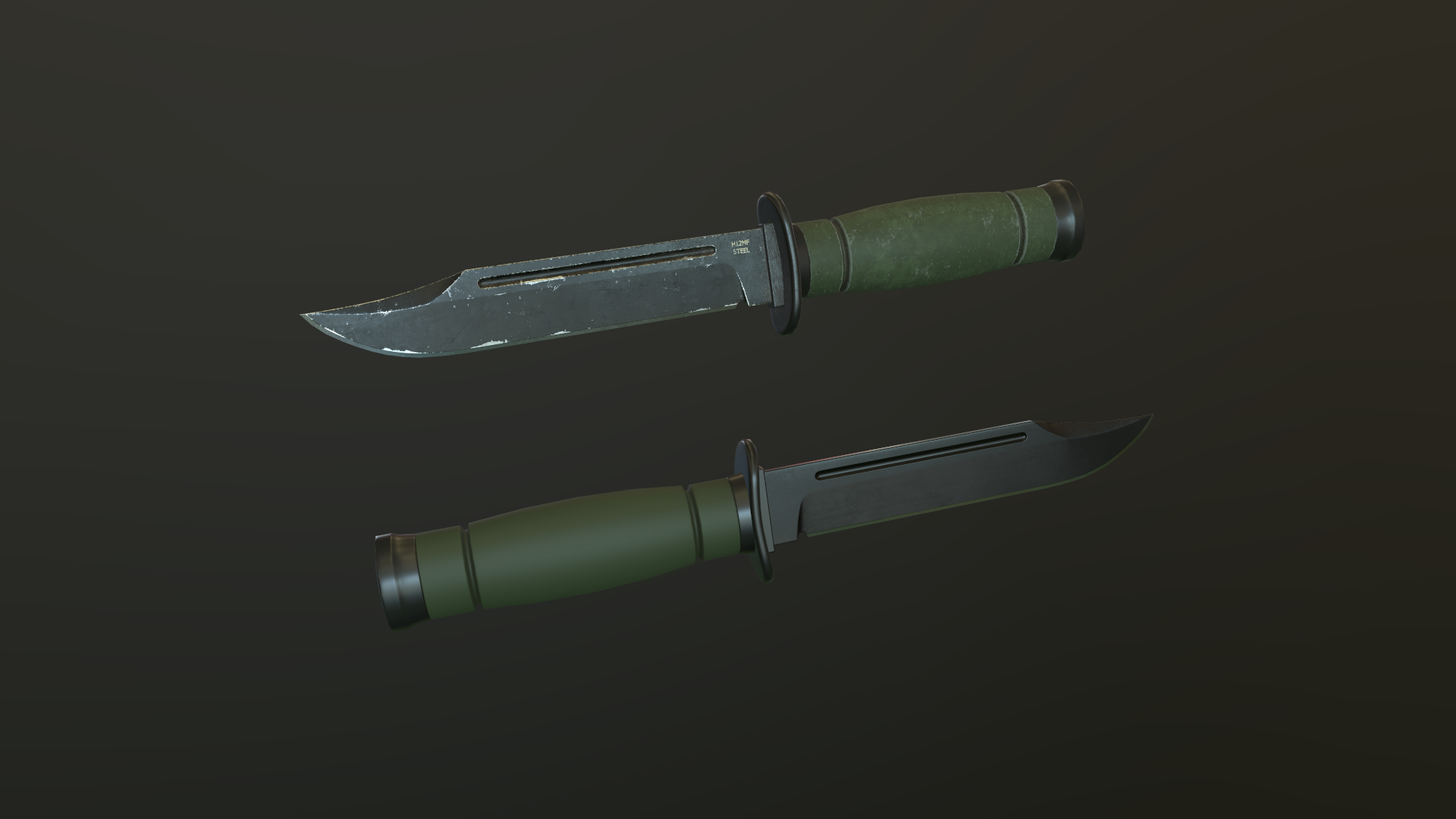 Game ready low-poly Tactical Combat Knife model with PBR textures for game engines/renderers. This product is intended for game/real time/background use. This model is not intended for subdivision. Geometry is triangulated. Model unwrapped manually. All materials and objects named appropriately. Scaled to approximate real world size. No special plugins needed. .obj, .fbx versions exported from Blender 2.82. 2048×2048 textures in png format: – PBR Metallic/Roughness textures: BaseColor, Metallic, Roughness, Normal(DirectX), Normal(OpenGL), AO. Also included clean variant of textures without damage.