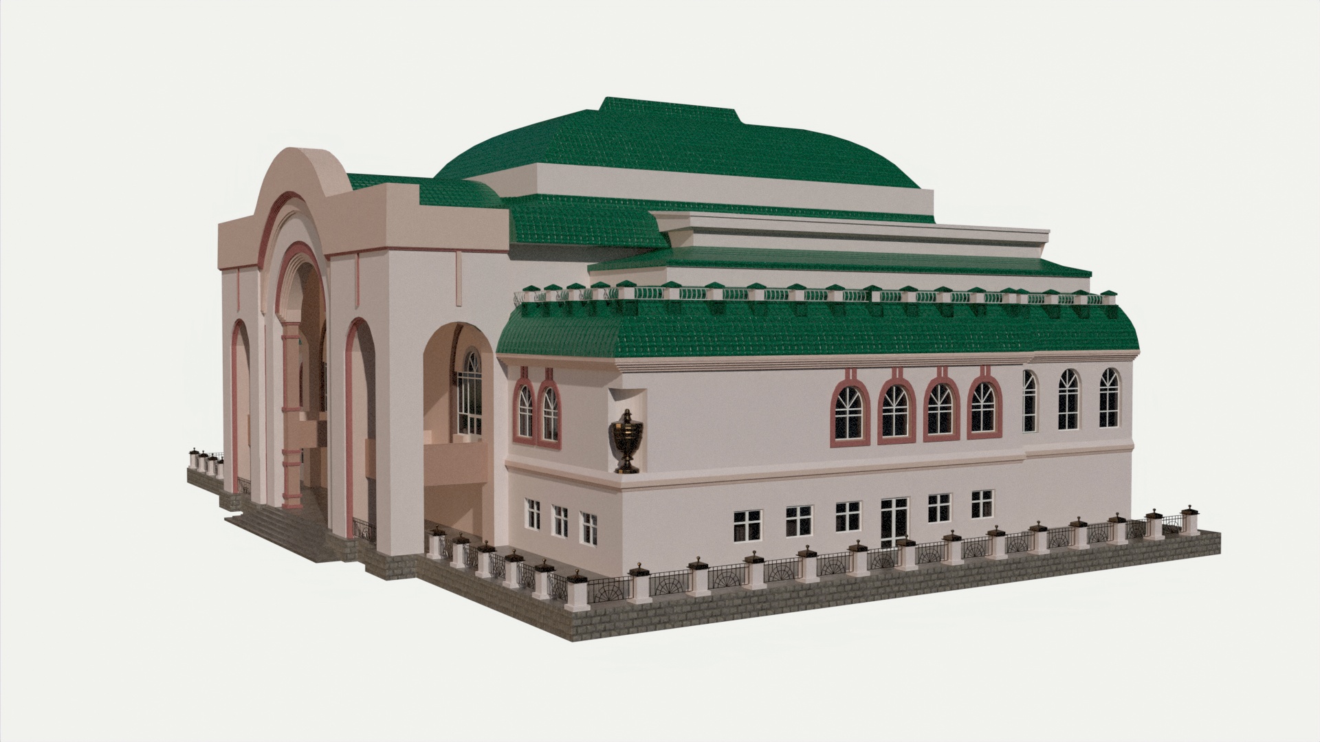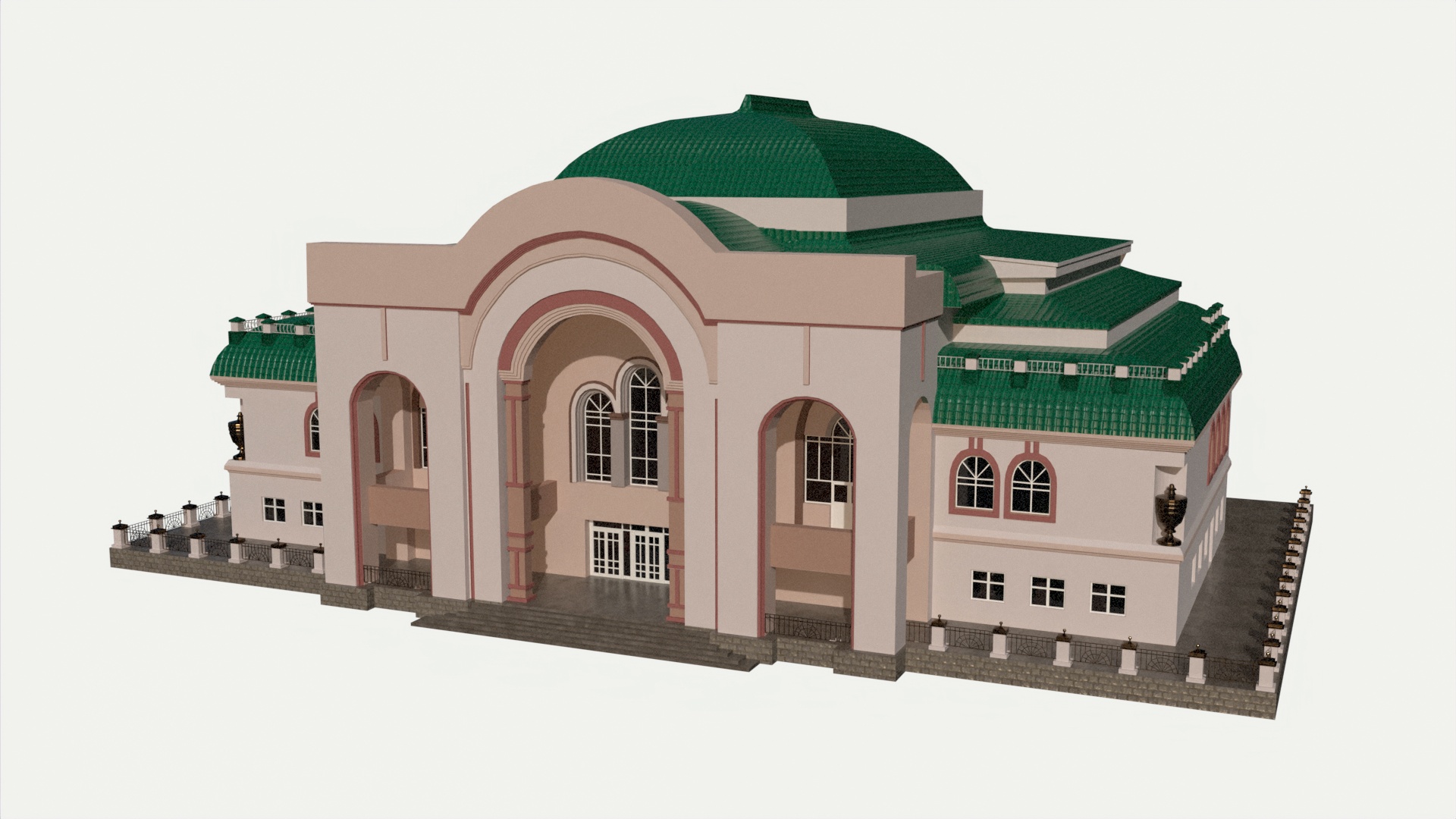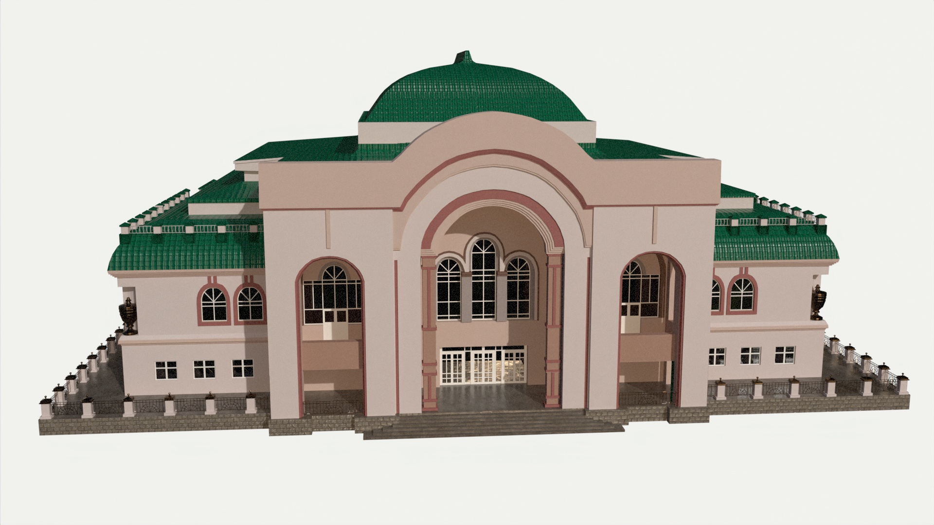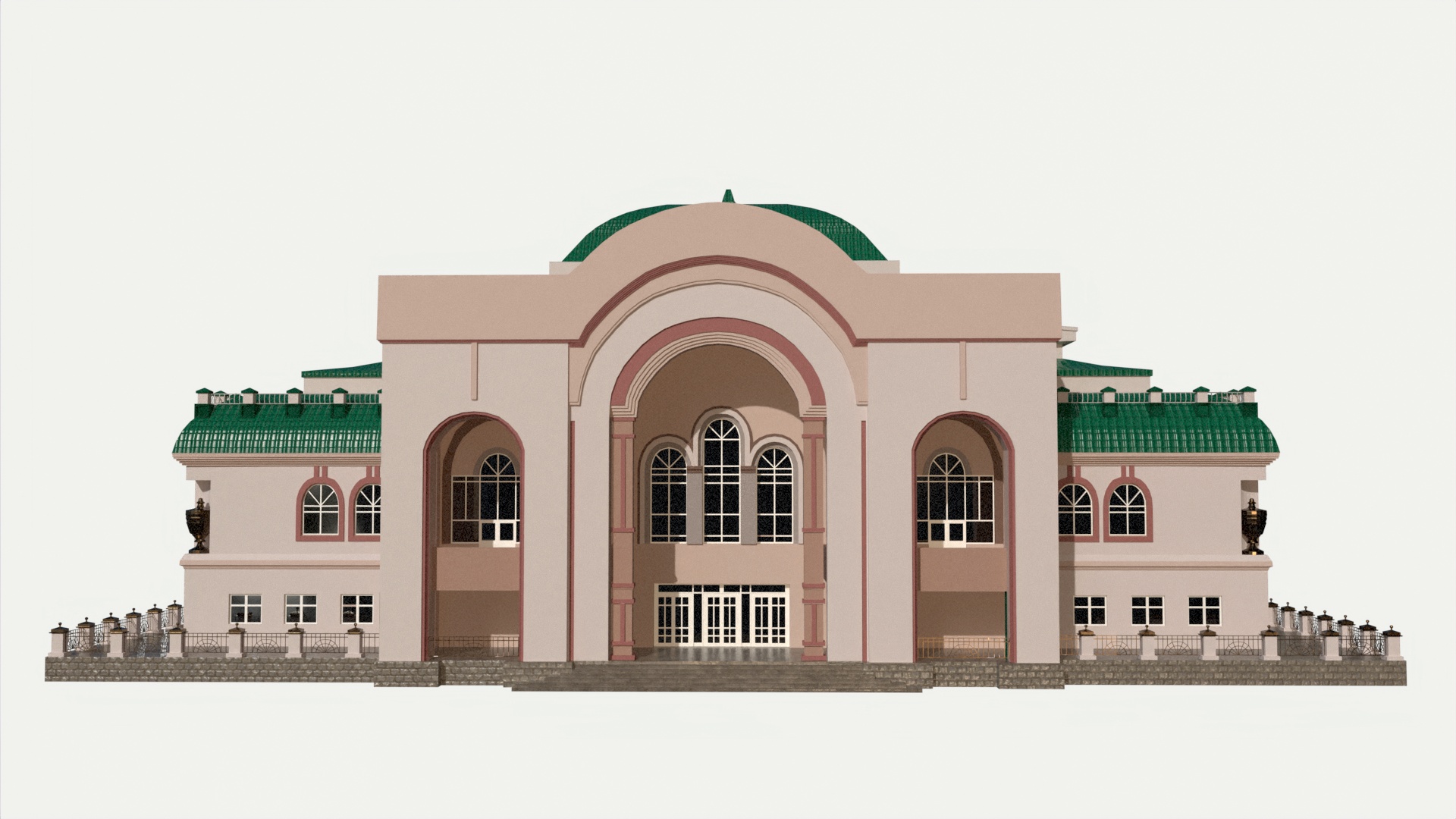 3D models of theater building. Reference – front part of the Ufa State Tatar Theater Nur.