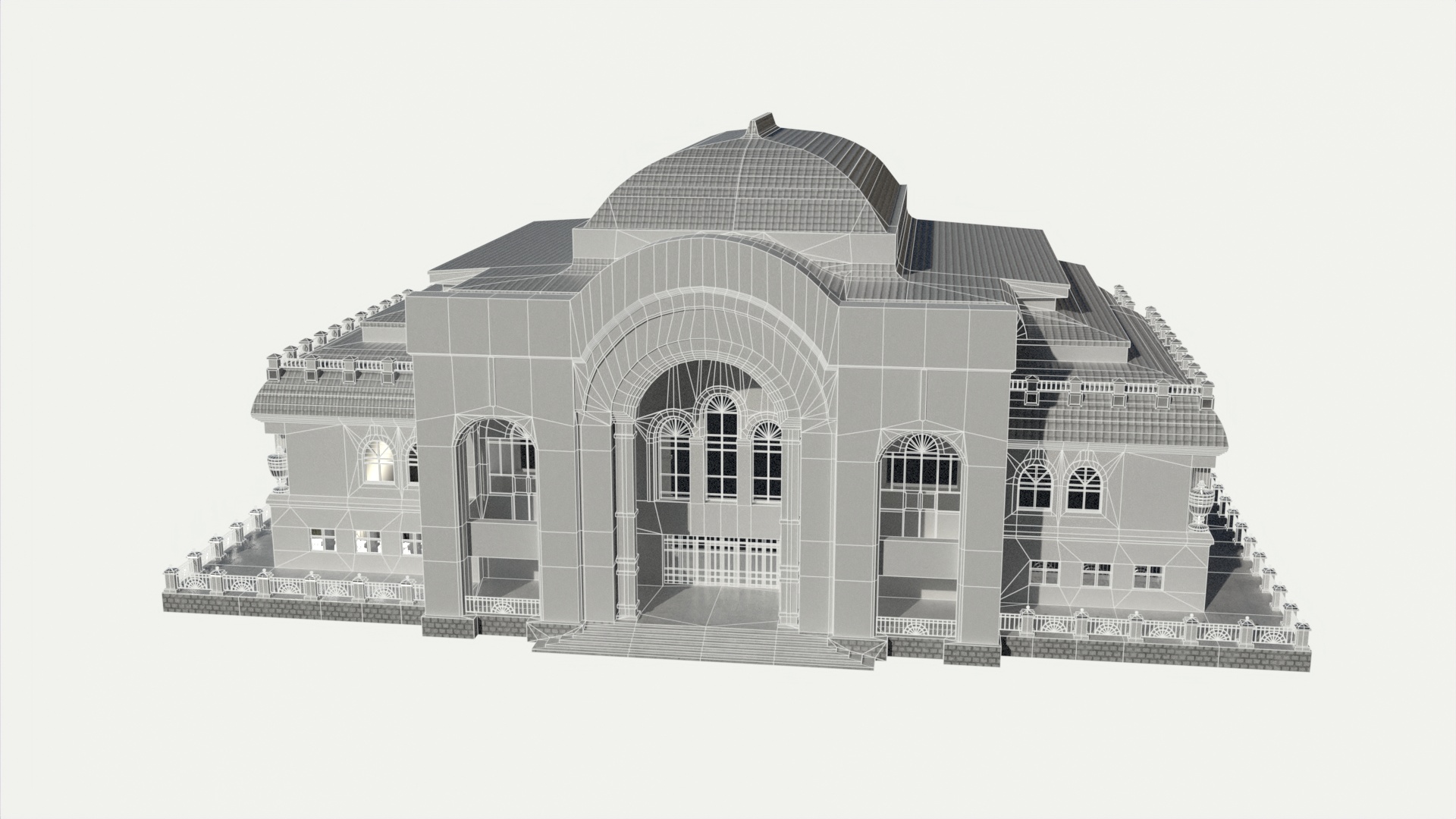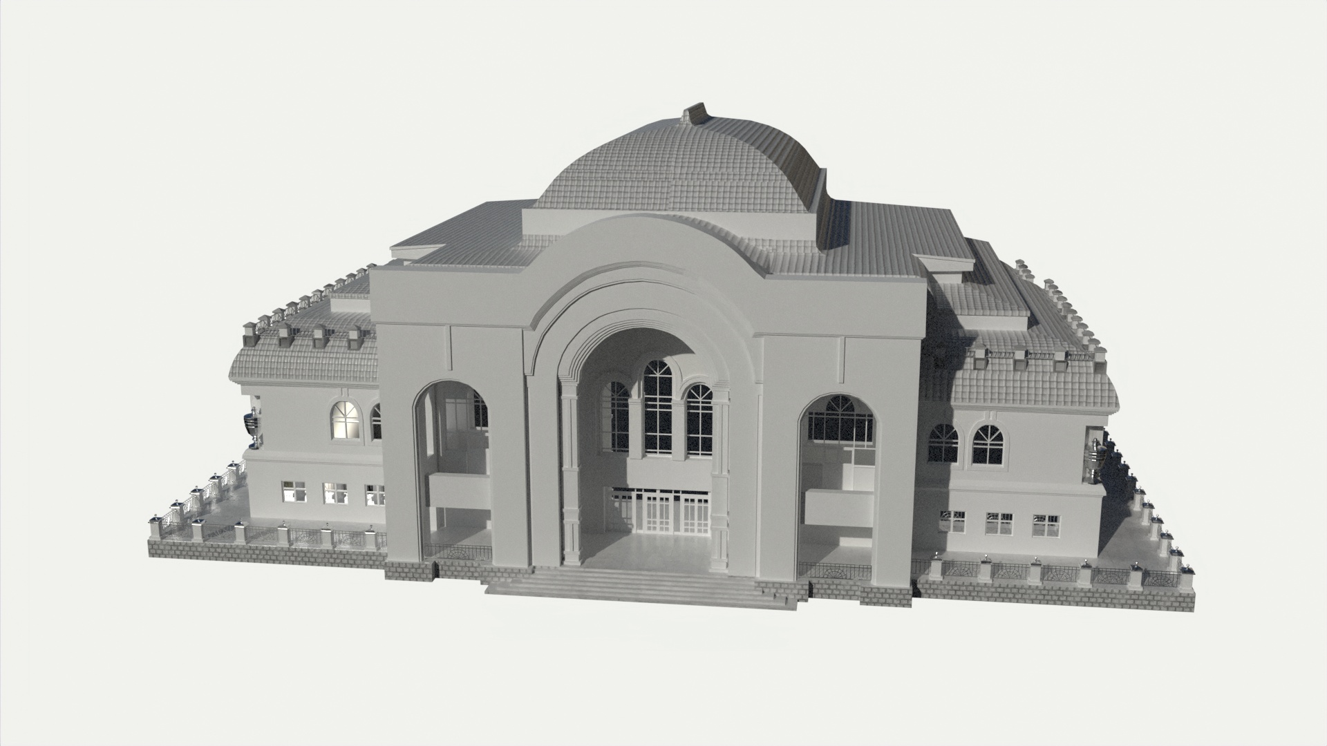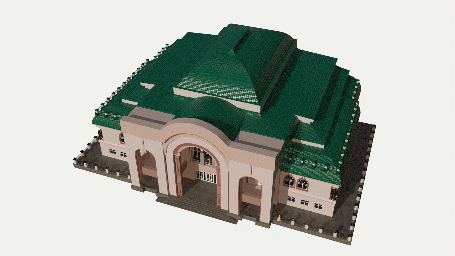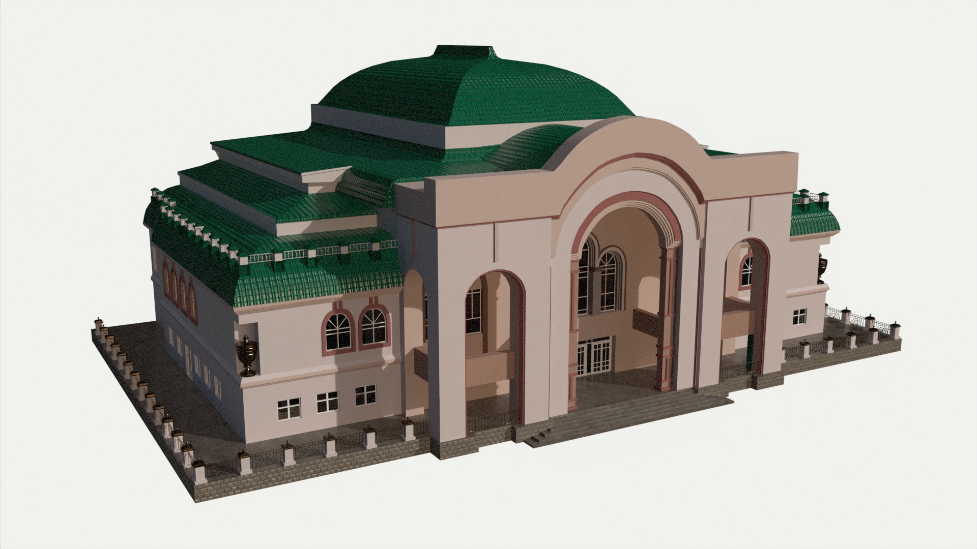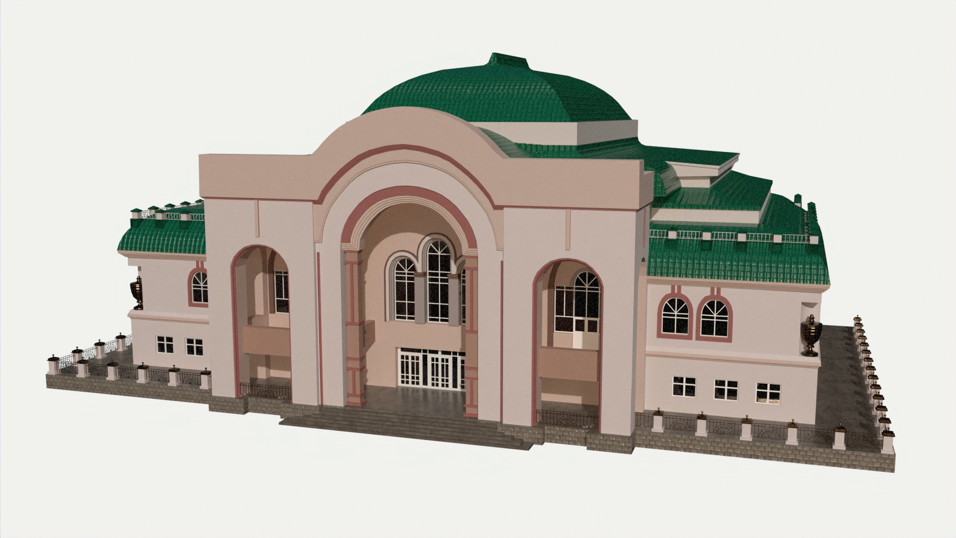 3D models of theater building. Reference – front part of the Ufa State Tatar Theater Nur.