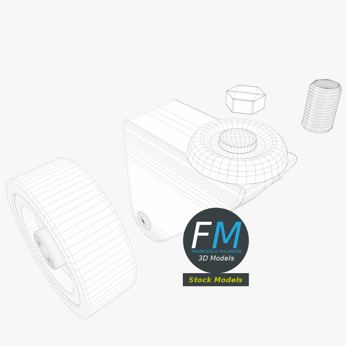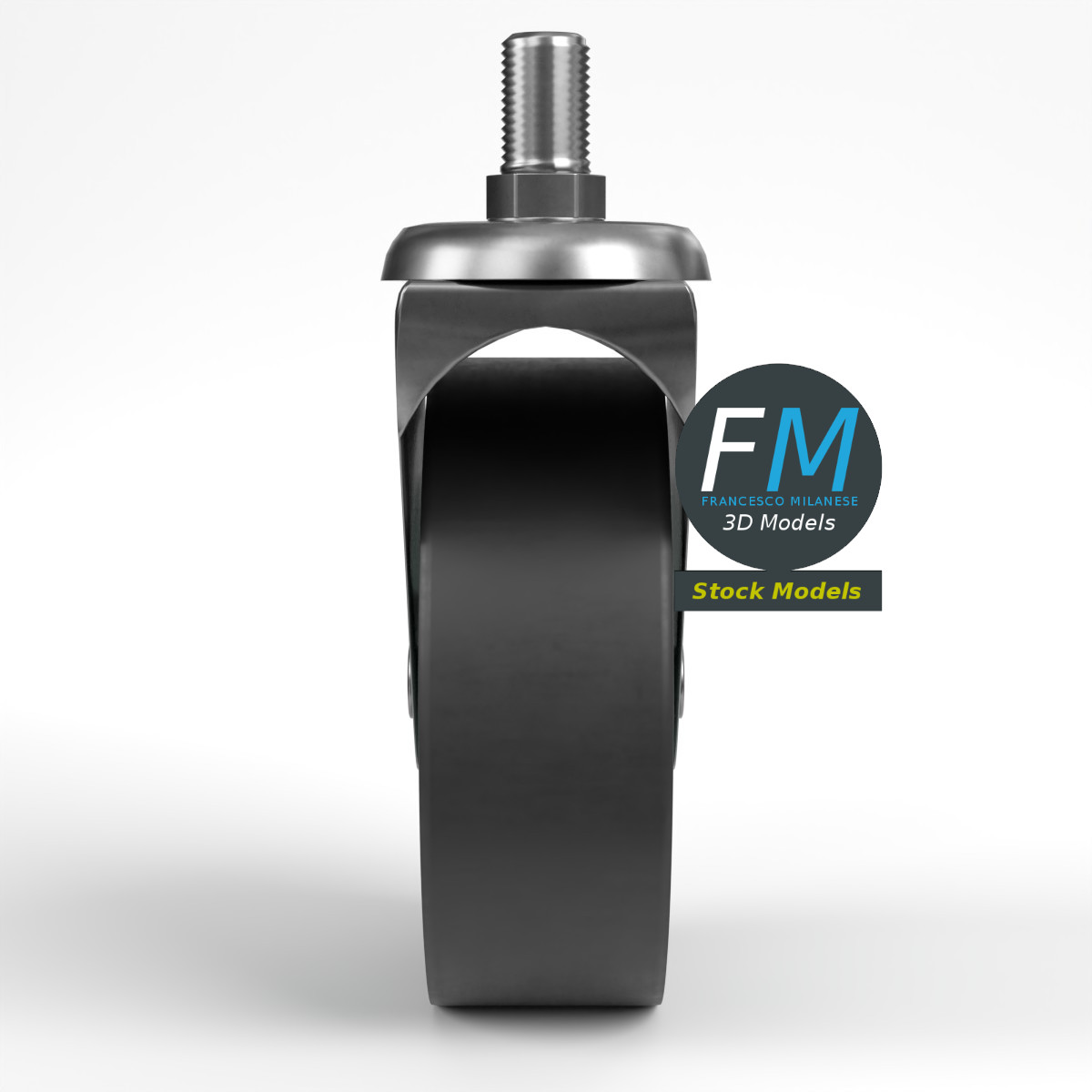 A medium duty, threaded stem (screw mount), industrial furniture caster (castor) wheel 3D Model. 4 individual objects (wheel, frame, thread, bolt), sharing the same non overlapping UV Layout map, Material and PBR Textures set. Production-ready 3D Model, with PBR materials, textures, non overlapping UV Layout map provided in the package.