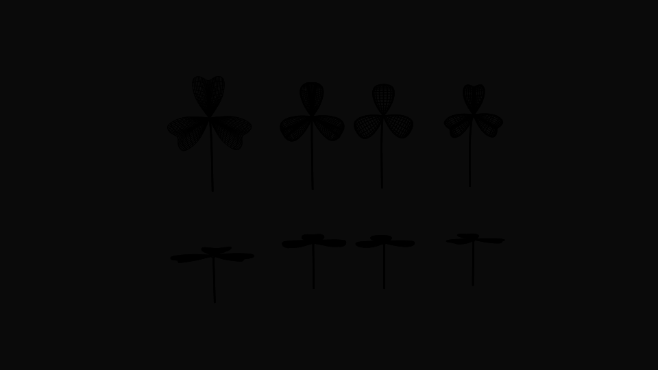 Features: -4 Types of Clover and each type got stand and lie version so they are 8 models -5 different formats: blender(deafult scene), dae, obj, fbx, 3ds -Texture Included -to make low poly simply just reduce subsurf in blender file then export as the format you prefer