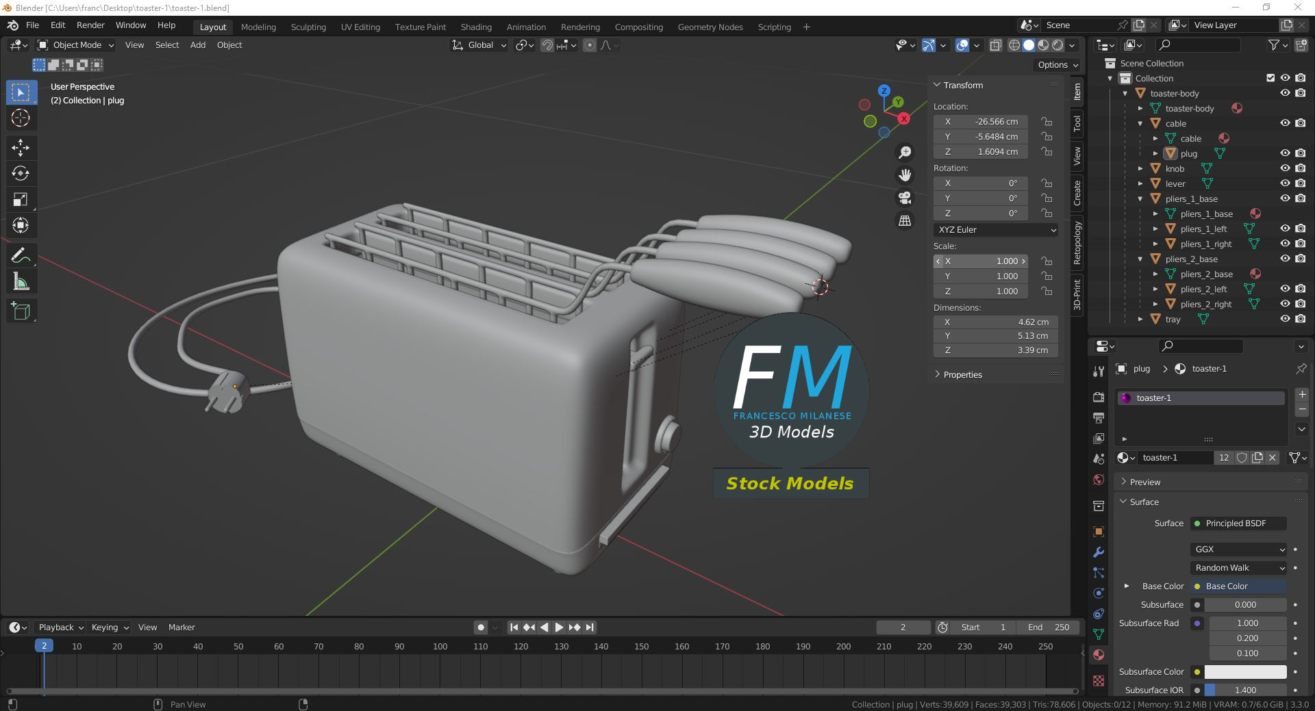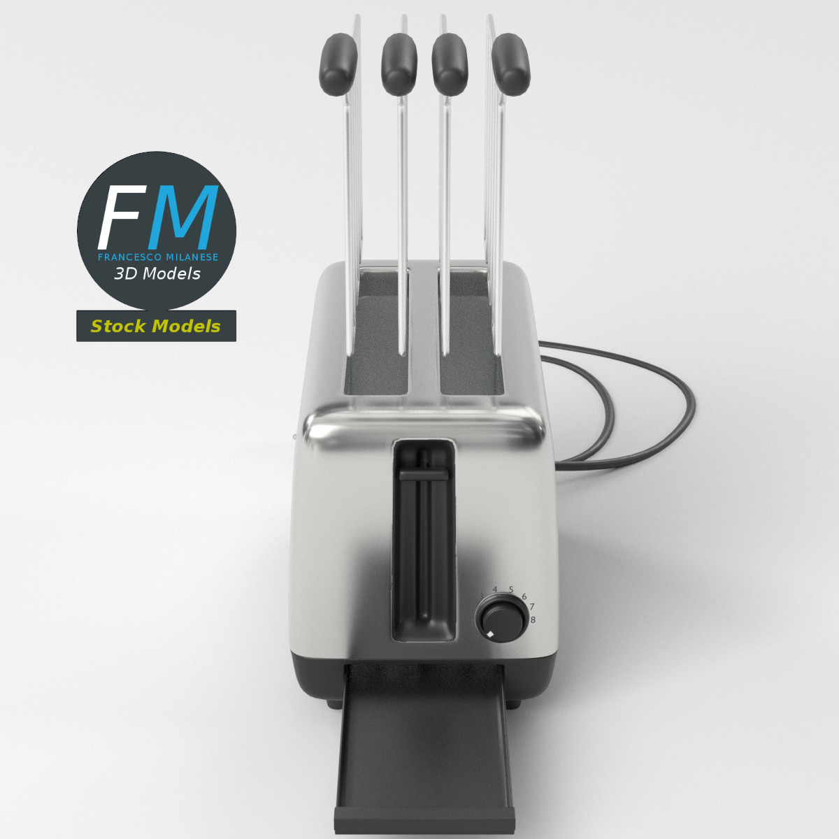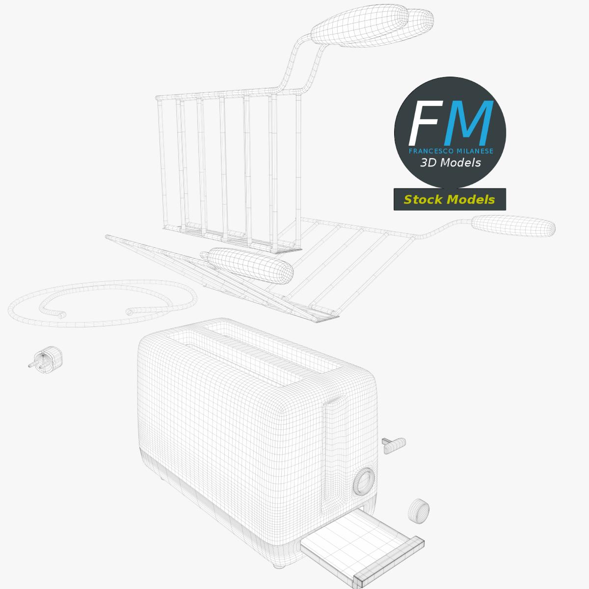Toaster 3D Model, nr. 1 in my collection. 12 individual objects sharing the same non overlapping UV Layout map, Material and PBR Textures set. Production-ready 3D Model, with PBR materials, textures, non overlapping UV Layout map provided in the package.