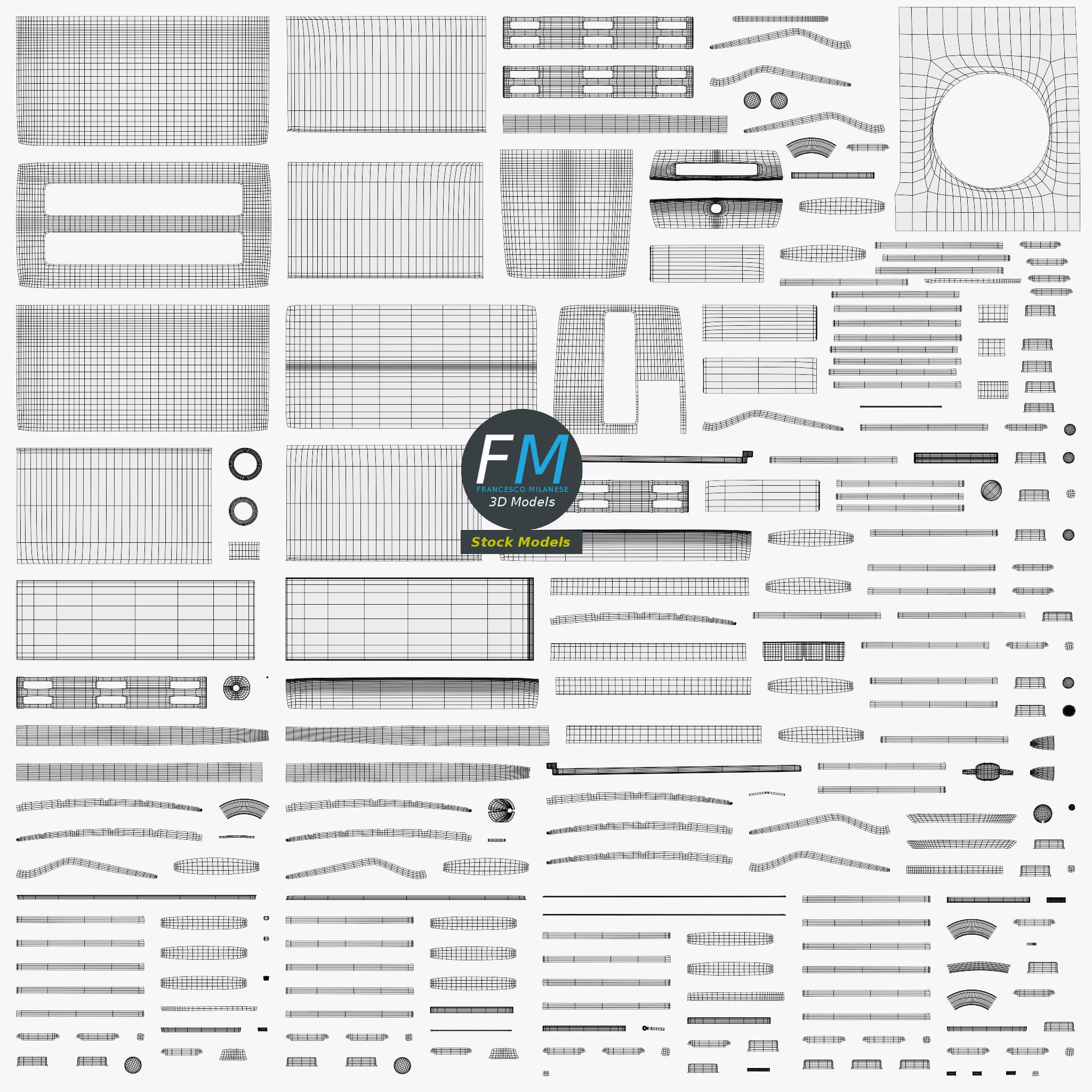 12 Objects (meshes), 1 PBR Material, UV unwrapped (non overlapping UV Layout map provided in the package); UV-mapped Textures.