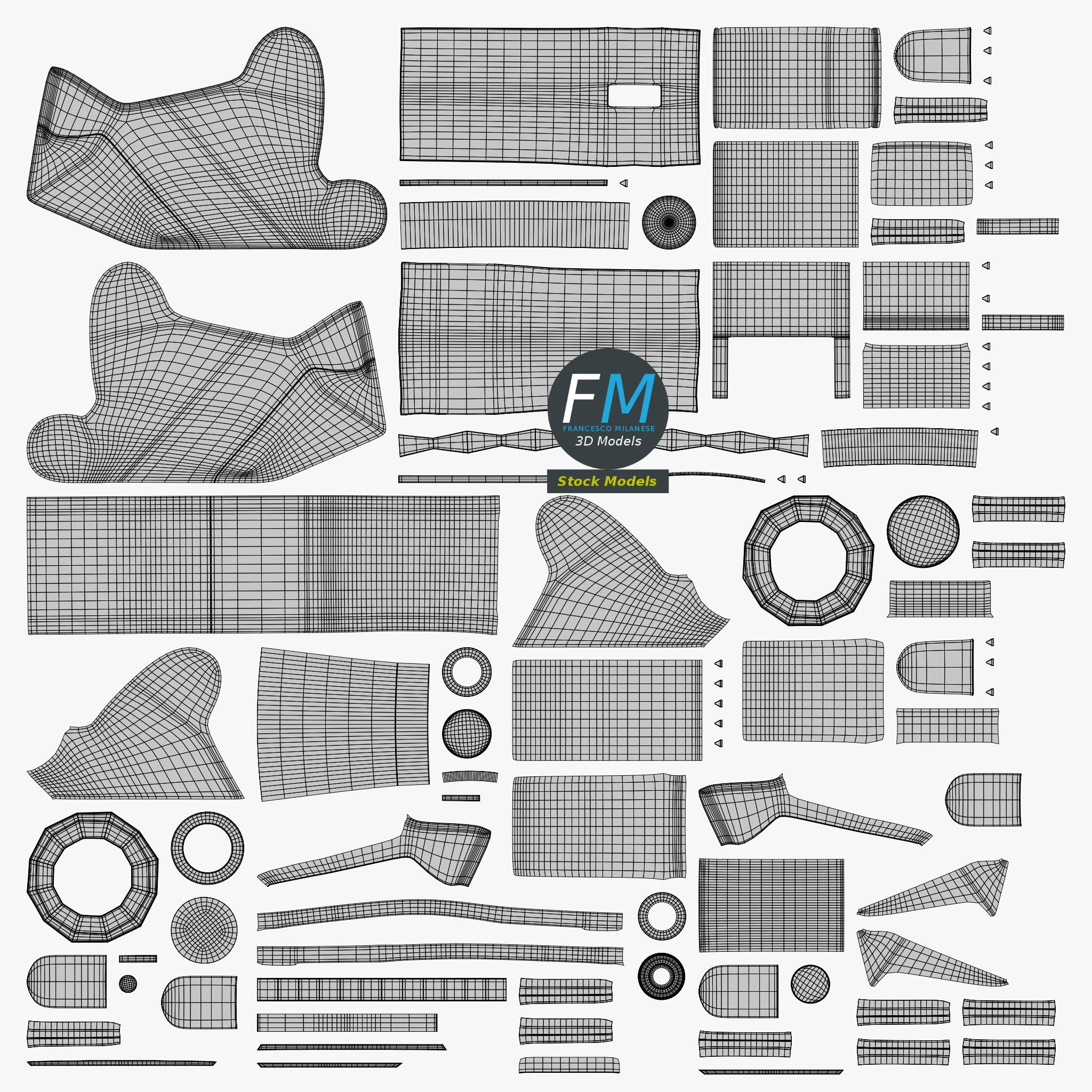 Easily customizable: UV unwrapped geometries, so you can create new Textures (or modify the existing ones) using the UV Layout maps provided in the package (as png with alpha).
