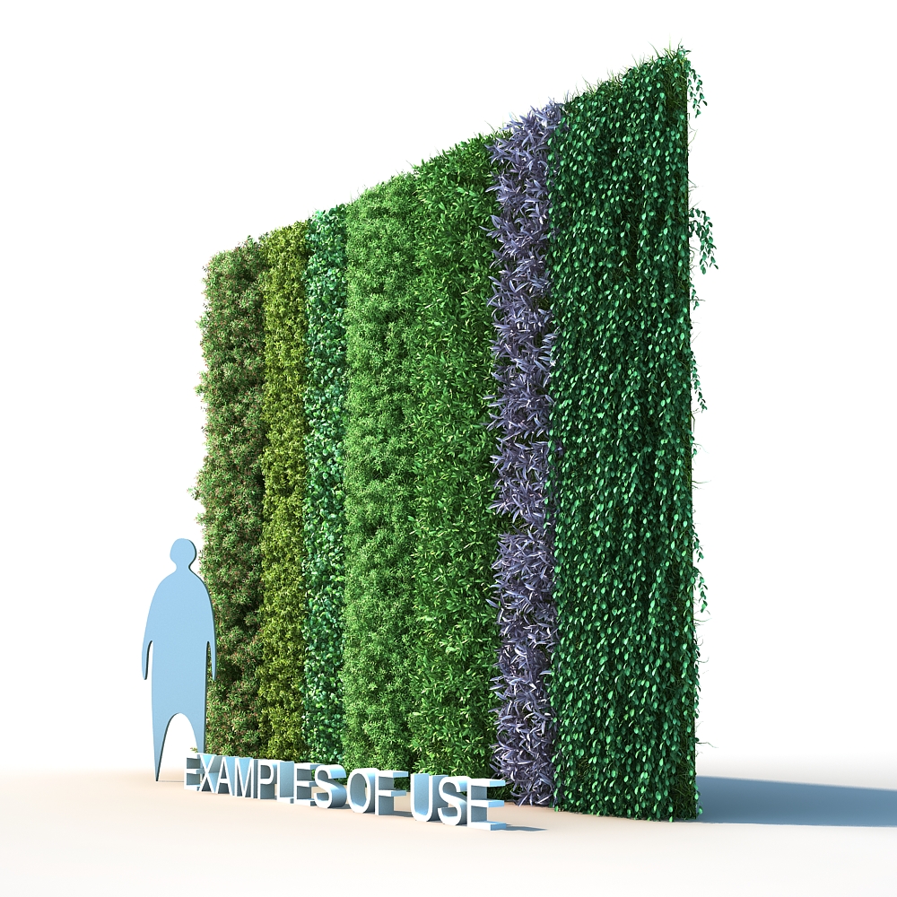 format 3D max file 2016 minimum - v-ray material - standard material - .obj and .fbx format - v-ray version 3.6.04 - 49 texture of plant - 7 Different species plants -14 Different panels (Epipremnum aureum)-opacity leaves mesh (vernonia elliptica) (syzygium campanulatum )-red (syzygium campanulatum )-green (ovalifolium aureum )-opacity leaves mesh ( purple-heart ) ( Dischidia ) -panels size 0.80×4.00 meter -panels size 0.50×4.00 meter