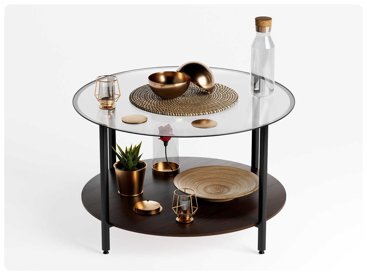 Realistic 3D model collection of the IKEA VITTSJO glass coffee table, along with many decorative objects. Place this table in the middle of your living room scene, or use the decorative objects to bring any space to life. Arnold and physical materials included for Cinema 4D.
