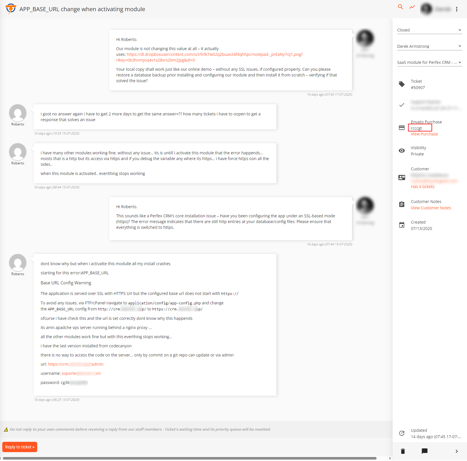 As for your remark about us replying with "we did everything right, the issue is you", this is NOT true. What we actually told you is that your issue stems from an incorrectly configured CRM or incompatible hosting environment. This is not an attack, it’s a diagnostic reality. Our module works out of the box when Perfex is correctly installed, as proven by hundreds of customers and our public demo.